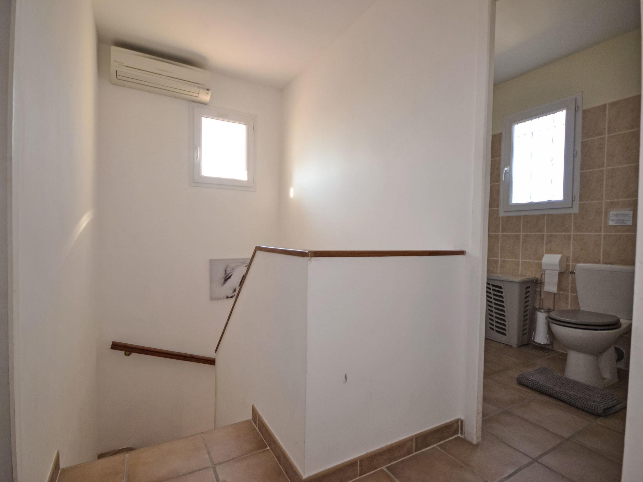 4-room house 100 m2 on 2 levels. Bright, comfortable furnishings: living/dining room with digital TV. Exit to the garden, to the terrace. Open kitchen (4 hot plates, oven, dishwasher, microwave, freezer, electric coffee machine). Shower/WC. Upper floor: 2 rooms, each room with 1 french bed (140 cm). 1 room with 2 beds (90 cm). Shower/WC. Terrace 12 m2. Terrace furniture. Facilities: washing machine. Internet (WiFi, free). Please note: suitable for families. Non-smoking house. 1 small pet/ dog allowed. Smoke alarm.