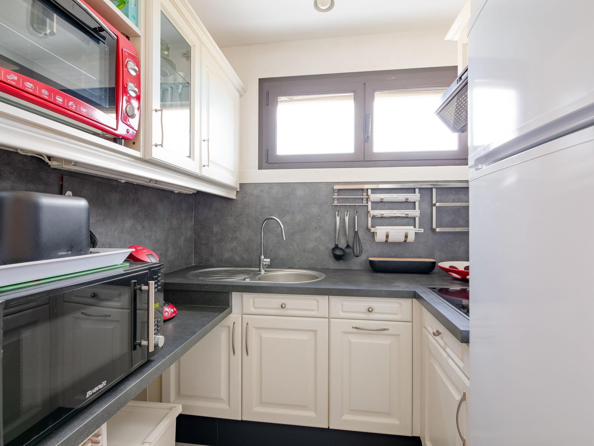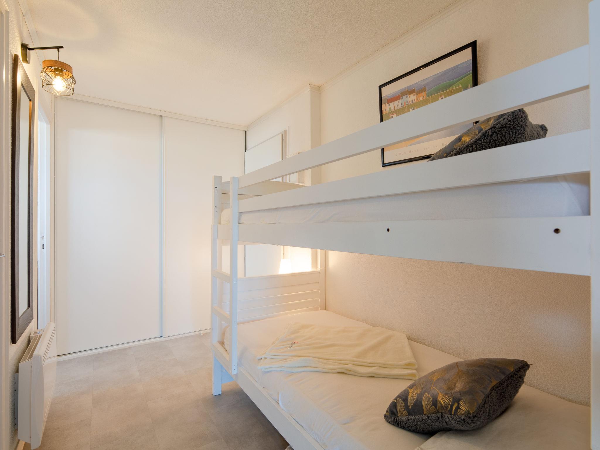 1-room studio 37 m2 on 2nd floor. Object suitable for 2 adults + 2 children. Living/dining room with 1 double wall-trunk bed (160 cm, length 200 cm), flat screen, electric heating and air conditioning. Exit to the balcony. Alcove with 1 x 2 bunk beds (90 cm, length 190 cm). Small kitchen (oven, 4 ceramic glass hob hotplates, toaster, kettle, microwave, freezer, electric coffee machine, Capsules for coffee machine (Senseo) extra). Bath/shower, sep. WC. Terrace 6 m2, south facing position. Terrace furniture. Facilities: washing machine, iron, hair dryer. Internet (WiFi). Parking space n Libre service (1 car). Please note: non-smokers only. TV only FR. Smoke alarm. Instead of an enclosed bedroom, some sleeping areas are located in an open-plan area (gallery, alcove, etc.). Offer by a private individual according to Art. 155, IV of CGI.