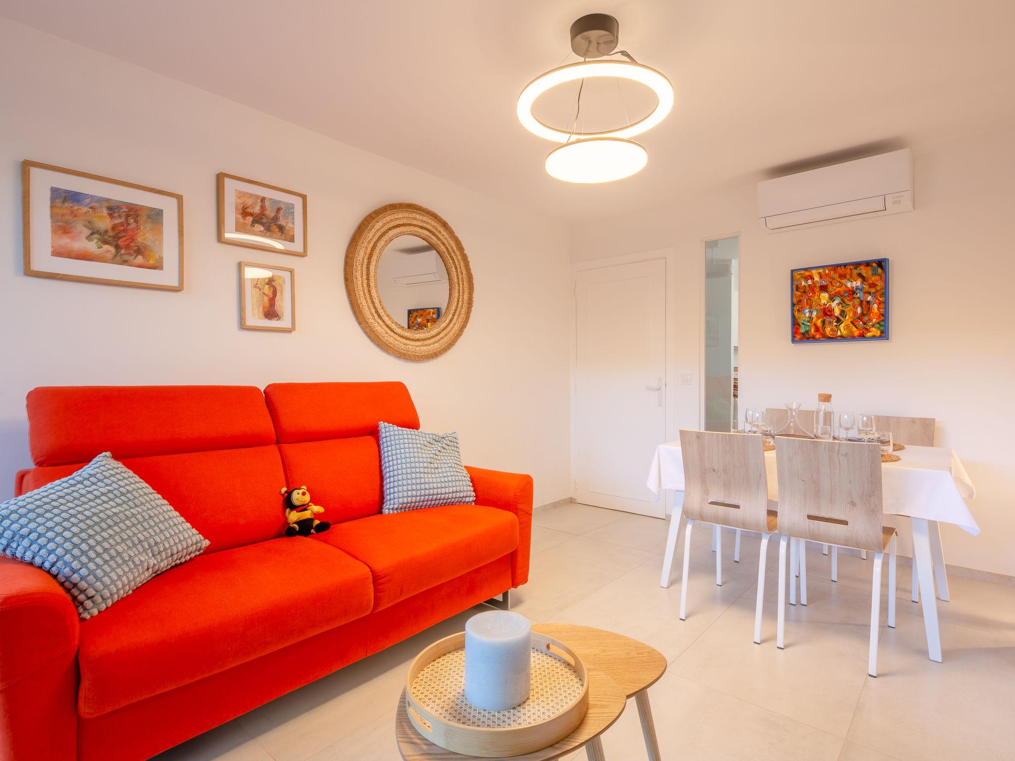 3-room apartment 47 m2, on the ground floor. Renovated in 2024: living/dining room with 1 double sofabed (140 cm, length 190 cm), TV (flat screen), air conditioning. Exit to the terrace, to the patio, west facing position. 1 room with 1 french bed (1 x 160 cm, length 200 cm), electric heating and air conditioning. 1 room with 1 bed (140 cm, length 200 cm). Open kitchen (oven, dishwasher, 3 induction hot plates, toaster, kettle, microwave, freezer, electric coffee machine, Capsules for coffee machine (Senseo) extra). Bathroom. Electric heating. Wooden floors. Terrace 15 m2, west facing position, small patio 15 m2. Terrace furniture. View of the garden. Facilities: washing machine, iron. Internet (WiFi, free). Parking space n Libre service. Please note: non-smokers only. TV only FR. Smoke alarm. Offer by a private individual according to Art. 155, IV of CGI.