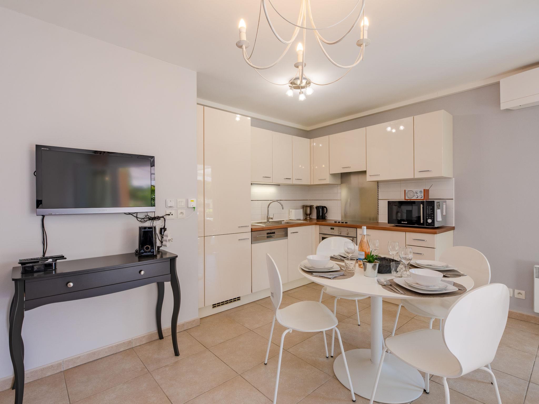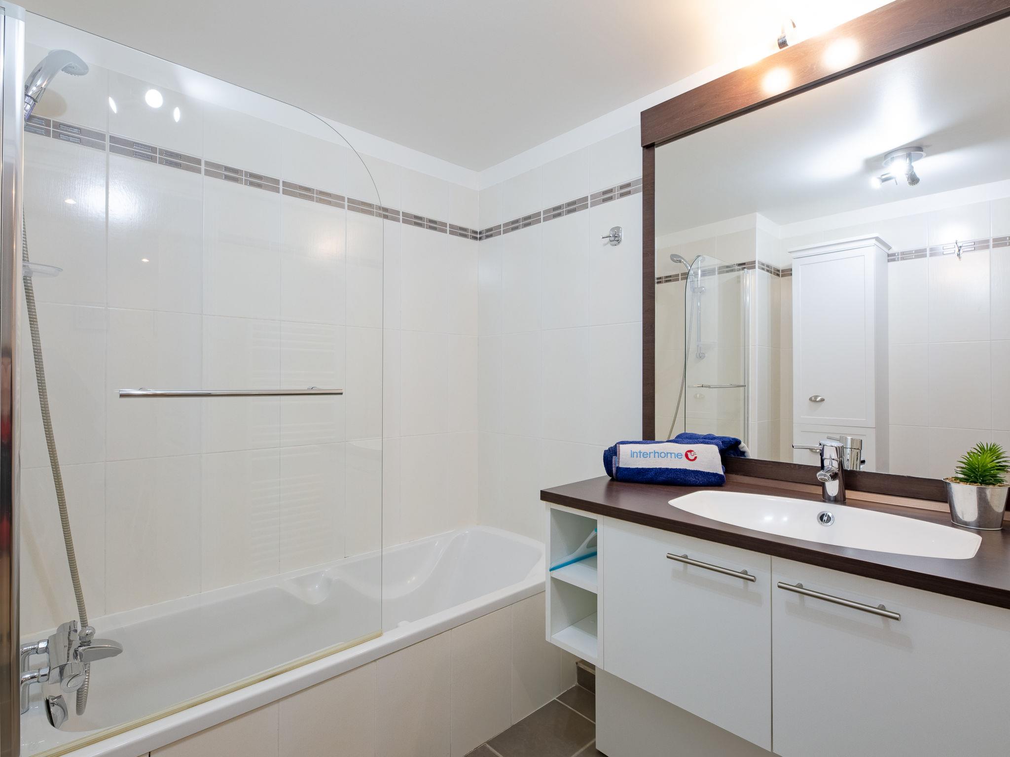 St raphael: Modern apartment block "Les Rivages de L'Esterel", 2 storeys, built in 2011. In the district of Boulouris, in the residential district, from the sea, 25 m from the beach, road to cross, south-west facing position. For shared use: swimming pool kidney-shaped fenced (10 x 4 m, seasonal availability: 15.May. - 30.Sep. pool opening hours: 08:00-19:00). In the house: lift. Shop 1 km, grocery 1 km, restaurant 1 km, bar 1.2 km, bakery 1 km, bus stop 80 m, railway station 3 km, sandy beach "plage de Péguière" 25 m. Sports harbour 1.6 km, sailing school 1.6 km. Nearby attractions: Aqualand 7 km, Karting 7 km. Hiking paths: L'Estérel 7 km. Please note: the keys‘ handover takes place by the agency Interhome in Port Fréjus. Railway line closeby. Neighbourhood highly sensitive to noise. Quietness and good behaviour expected.