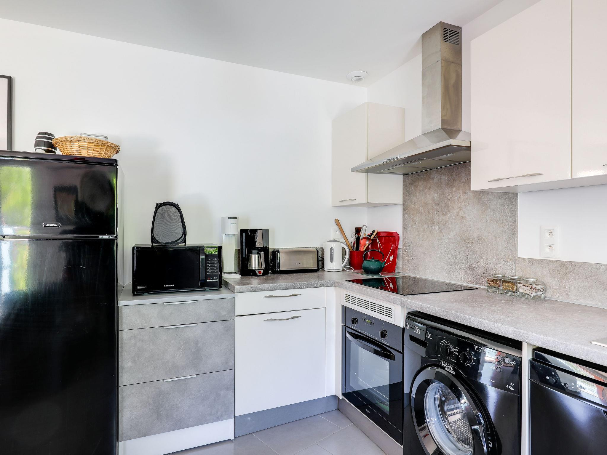 2-room semi-detached house 47 m2. Fully renovated: living/dining room with 1 double sofabed (1 x 140 cm, length 190 cm), TV, electric heating and air conditioning. Exit to the terrace. 1 room with 1 french bed (1 x 140 cm, length 190 cm), air conditioning. Exit to the terrace. Open kitchen (oven, dishwasher, 3 ceramic glass hob hotplates, toaster, kettle, microwave, freezer, electric coffee machine). Shower/WC. 2 terraces 30 m2. Terrace furniture. Facilities: washing machine, iron, hair dryer. Internet (WiFi, extra). Parking space n 38. Please note: non-smokers only. TV only FR. Smoke alarm.