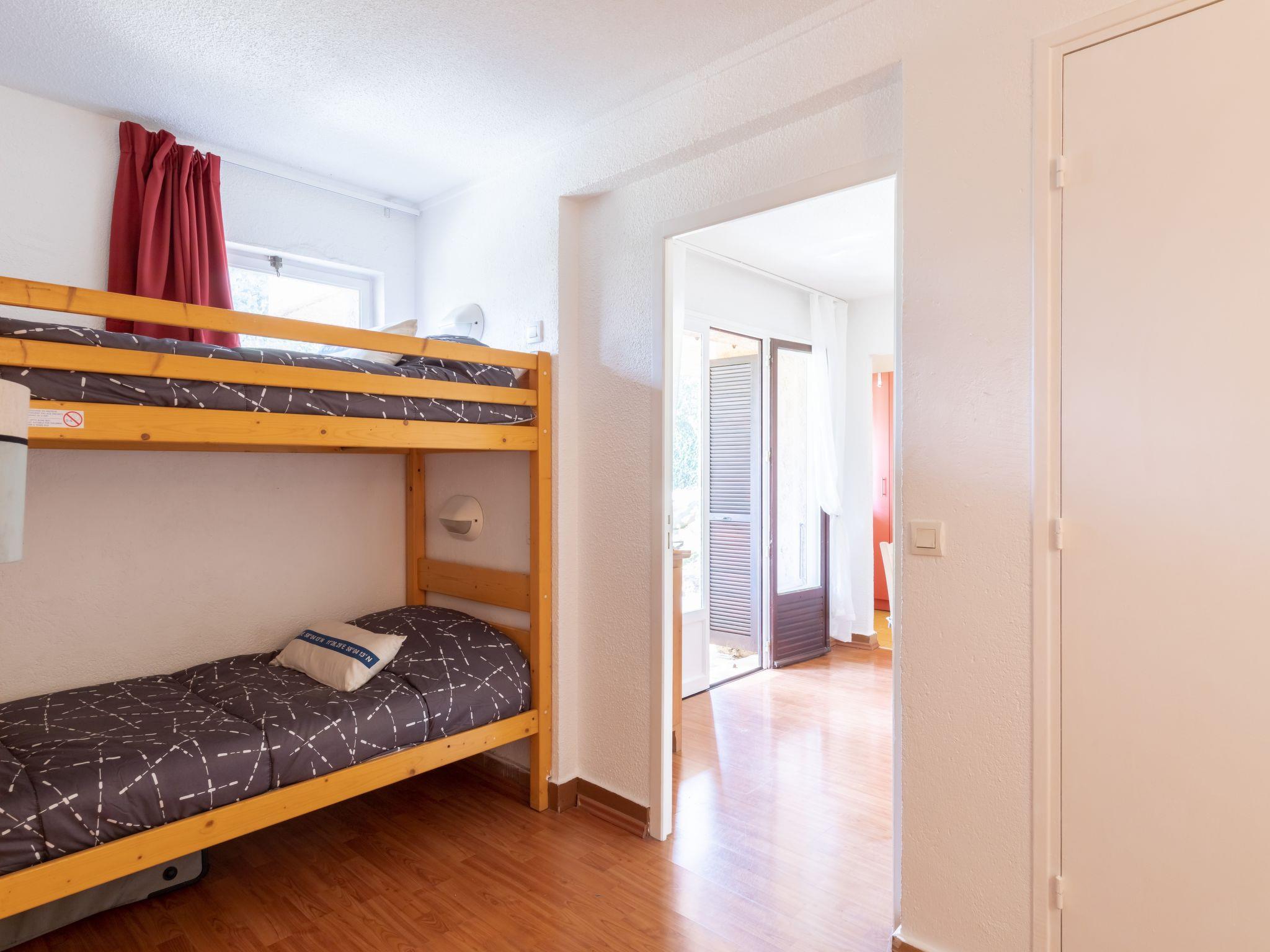 2-room apartment 28 m2, on the ground floor. Walk-through room with 1 x 2 bunk beds (90 cm, length 190 cm). Living/dining room with 1 double sofabed (1 x 140 cm, length 190 cm), TV, flat screen and air conditioning. Exit to the terrace. Kitchenette (dishwasher, 4 induction hot plates, toaster, kettle, microwave, electric coffee machine). Shower/WC. Electric heating. Terrace. Terrace furniture. Facilities: iron, hair dryer. Internet (WiFi, extra). Parking at the house. Please note: non-smokers only. TV only FR. Smoke alarm.