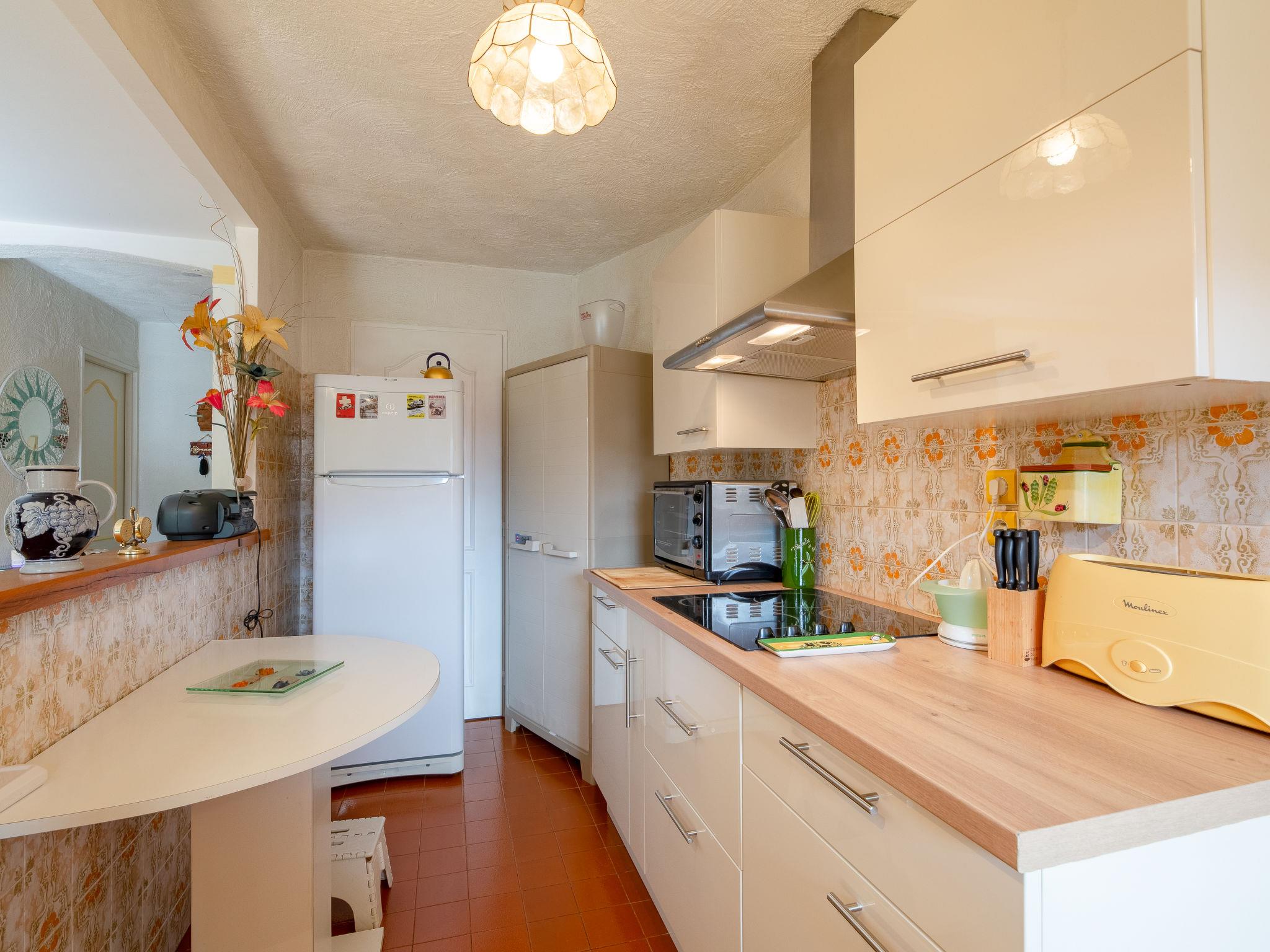 "Les Pins", 2-room apartment 50 m2. Comfortable furnishings: living/sleeping room with 1 fold-away bed (140 cm, length 190 cm), dining table and TV. Exit to the balcony. 1 room with 1 bed (80 cm, length 190 cm), 1 french bed (140 cm, length 190 cm). Open kitchen (mini-oven, dishwasher, 4 ceramic glass hob hotplates, toaster, kettle, microwave, freezer, electric coffee machine). Shower, sep. WC. Electric heating. Balcony 7 m2, west facing position. Balcony furniture, electric barbecue. Facilities: washing machine, dryer, children's high chair. Internet (WiFi, free). Parking (1 car). Please note: smoke alarm.