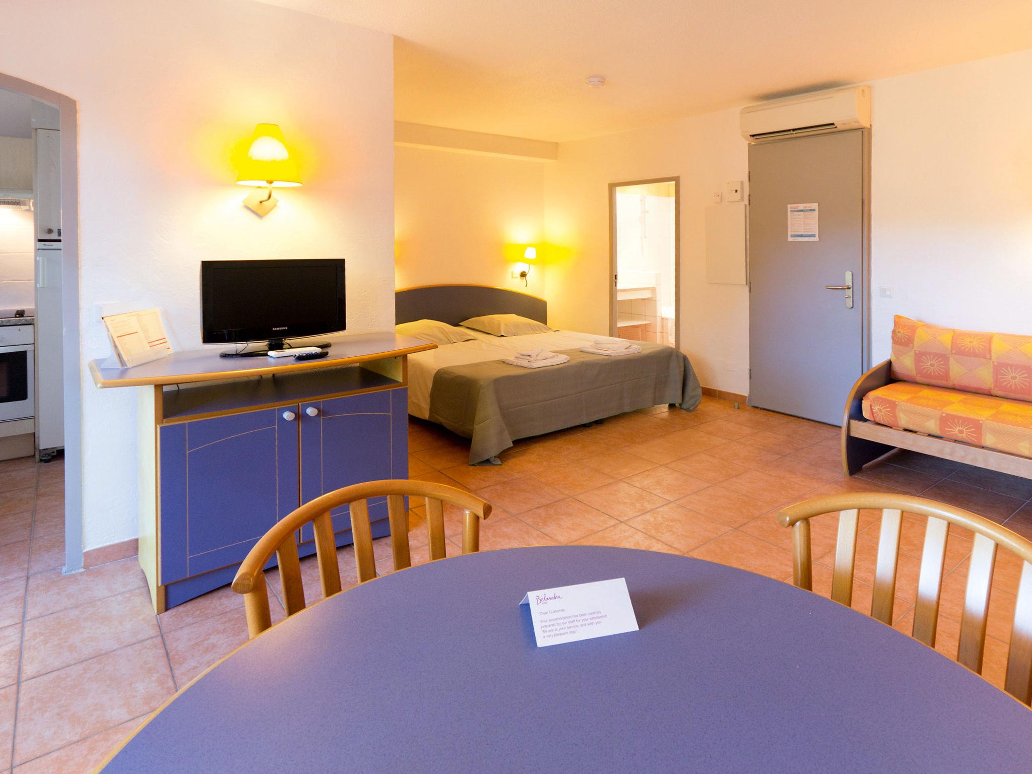 "Les Chênes Verts", 1-room apartment 30 m2. Practical furnishings: living/sleeping room with 2 beds, dining table and satellite TV. Small, open kitchen (dishwasher, 4 ceramic glass hob hotplates, microwave, freezer, electric coffee machine). Bath/WC or shower/WC. Heating, air-conditioning. Balcony or terrace. Balcony furniture. Facilities: safe. Internet (WiFi, free). Please note: non-smokers only. Maximum 1 pet/ dog allowed. Offer by a commercial proprietor according to Art. 155, IV, CGI