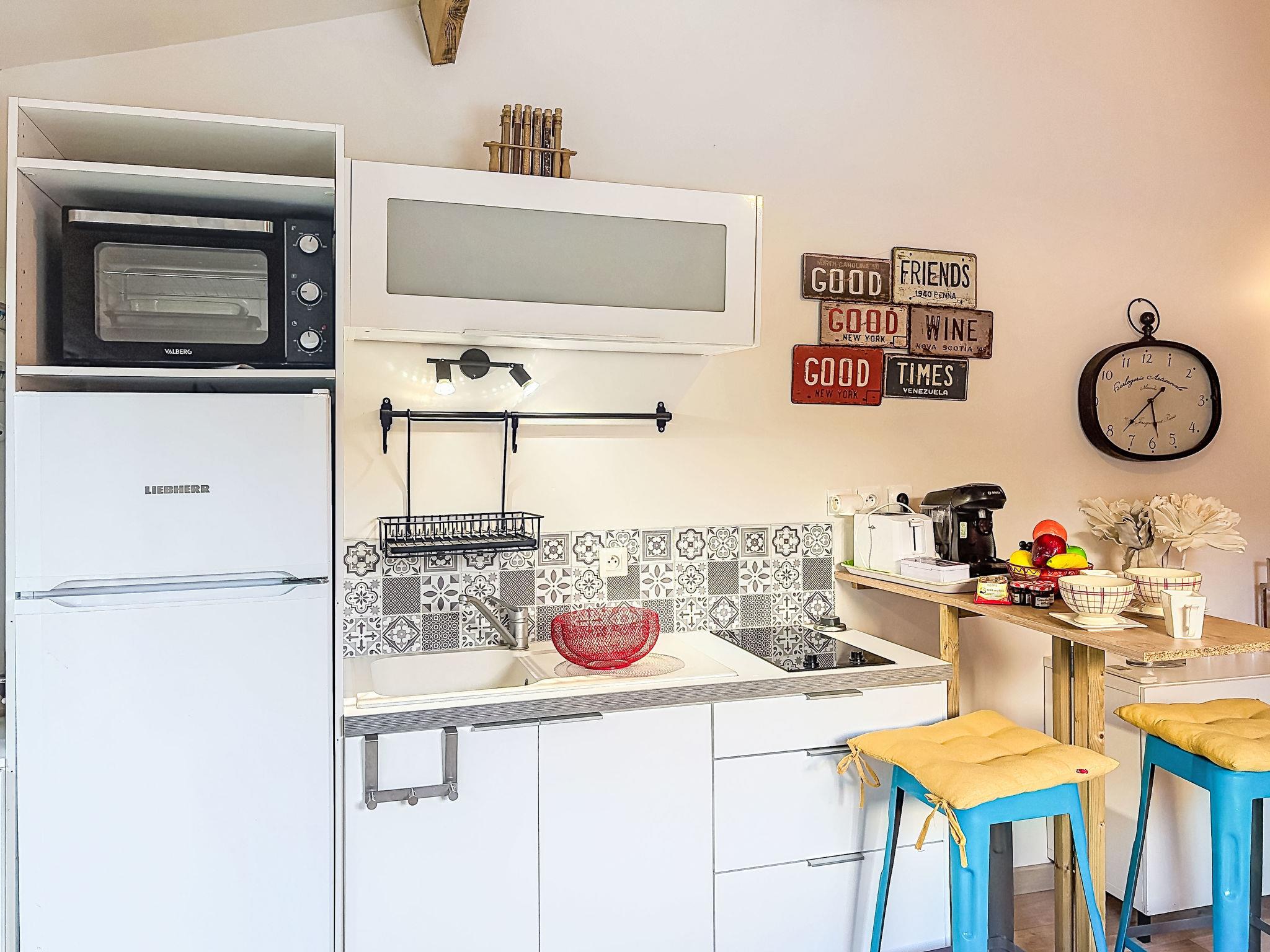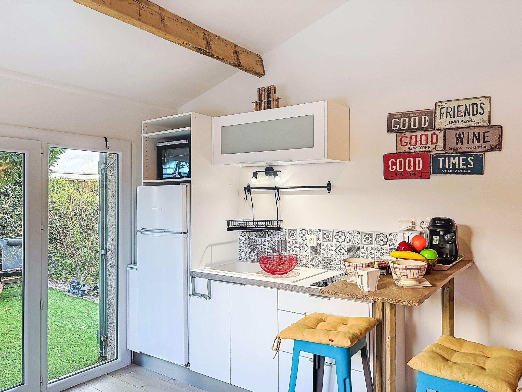 1-room apartment 25 m2, on the ground floor. Object suitable for 2 adults. Renovated in 2024, modern furnishings: living/sleeping room with 1 double sofabed (1 x 140 cm, length 190 cm), TV (flat screen), air conditioning. Exit to the terrace. Kitchenette (mini-oven, 2 ceramic glass hob hotplates, toaster, kettle, freezer, electric coffee machine, Capsules for coffee machine (Tassimo) extra) with dining nook. Exit to the terrace. Shower/WC. Heating. Large terrace. Terrace furniture. Of the garden. Facilities: iron, hair dryer. Internet (WiFi, free). Parking (1 car). Please note: private entrance, smoke alarm. Offer by a private individual according to Art. 155, IV of CGI. HC25UH
