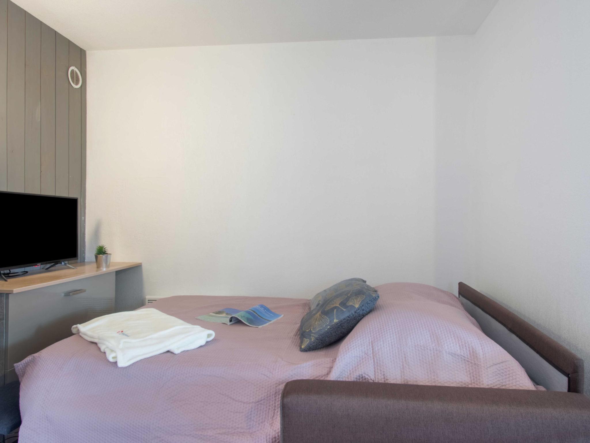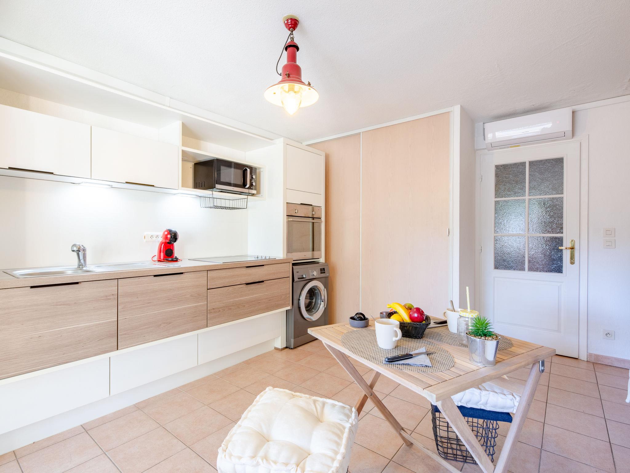 2-room apartment 30 m2, on the ground floor. Object suitable for 2 adults + 2 children. Living/dining room with 1 double sofabed (1 x 140 cm, length 190 cm), TV (flat screen), air conditioning. Exit to the terrace. 1 small room with 1 french bed (140 cm, length 190 cm). Kitchenette (4 ceramic glass hob hotplates, toaster, kettle, microwave, freezer, electric coffee machine, Capsules for coffee machine (Senseo) extra). Bath/shower, sep. WC. Electric heating. Balcony 9 m2. Balcony furniture. Facilities: washing machine. Internet (WiFi, free). Please note: non-smokers only, no parking. Smoke alarm. Instead of an enclosed bedroom, some sleeping areas are located in an open-plan area (gallery, alcove, etc.). Offer by a private individual according to Art. 155, IV of CGI.
