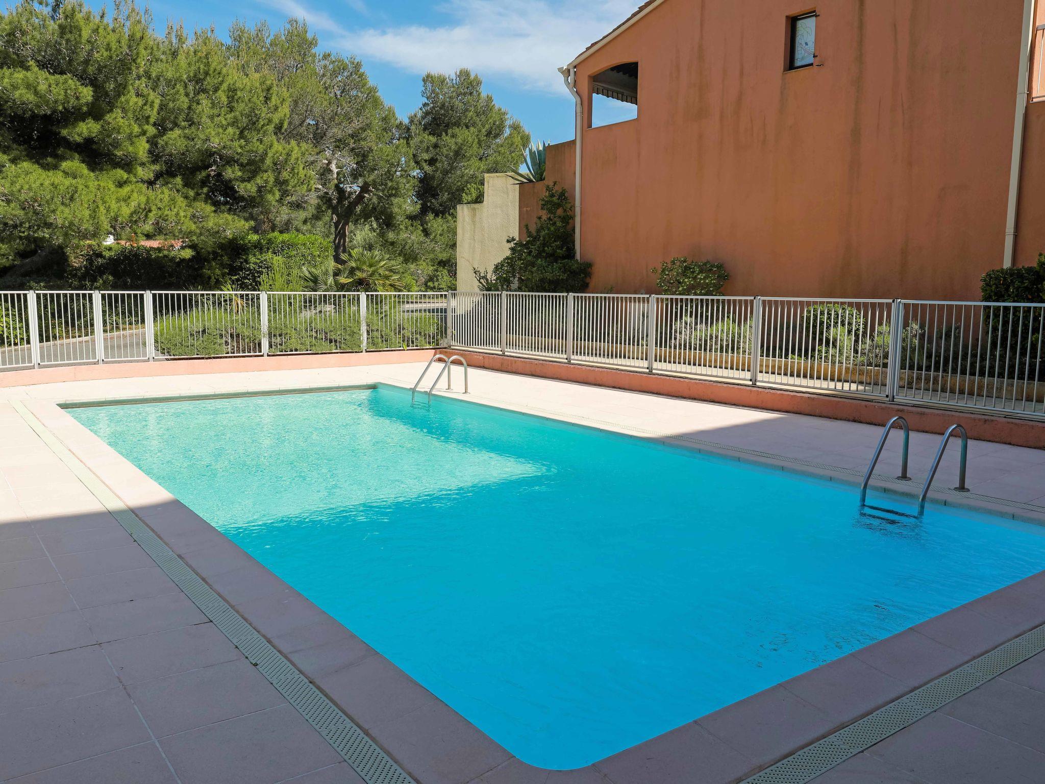 St Raphael Dramont: Apartment block "Résidence Les Sangliers", 3 storeys. 600 m from the sea, 600 m from the beach. For shared use: swimming pool angular fenced (seasonal availability: 01.Jun. - 15.Sep.). Private: table tennis. Shop 200 m, grocery 150 m, supermarket 5 km, bakery 50 m, bus stop 300 m, railway station "Saint-Raphaël Valescure" 10 km, sandy beach "plage du debarquement", diving center 600 m. Sports harbour 600 m. Nearby attractions: St Tropez 45 km, Nice 75 km, Fréjus 11 km. Hiking paths: L'Estérel 6 km. Please note: car recommended. Railway line closeby.