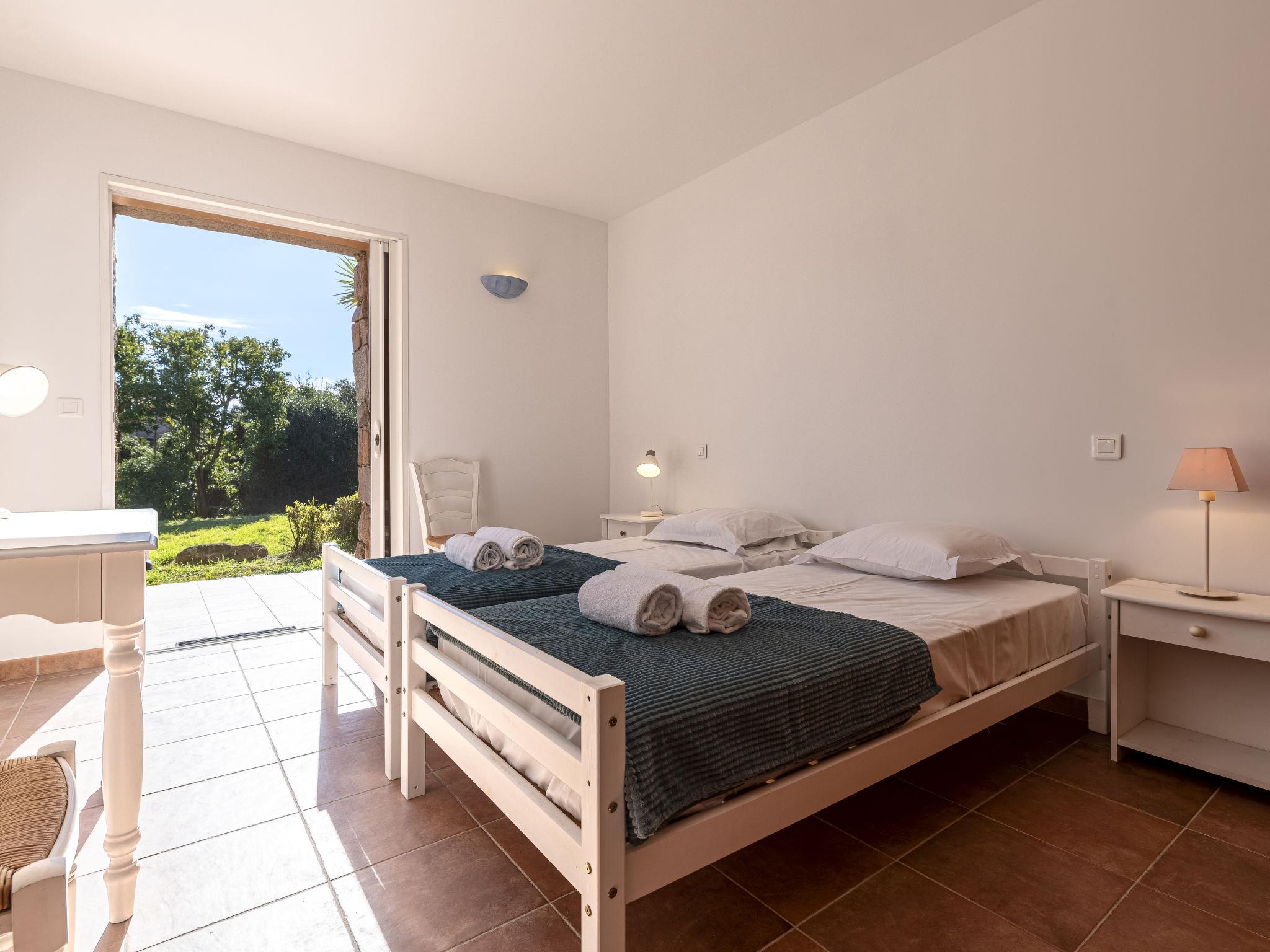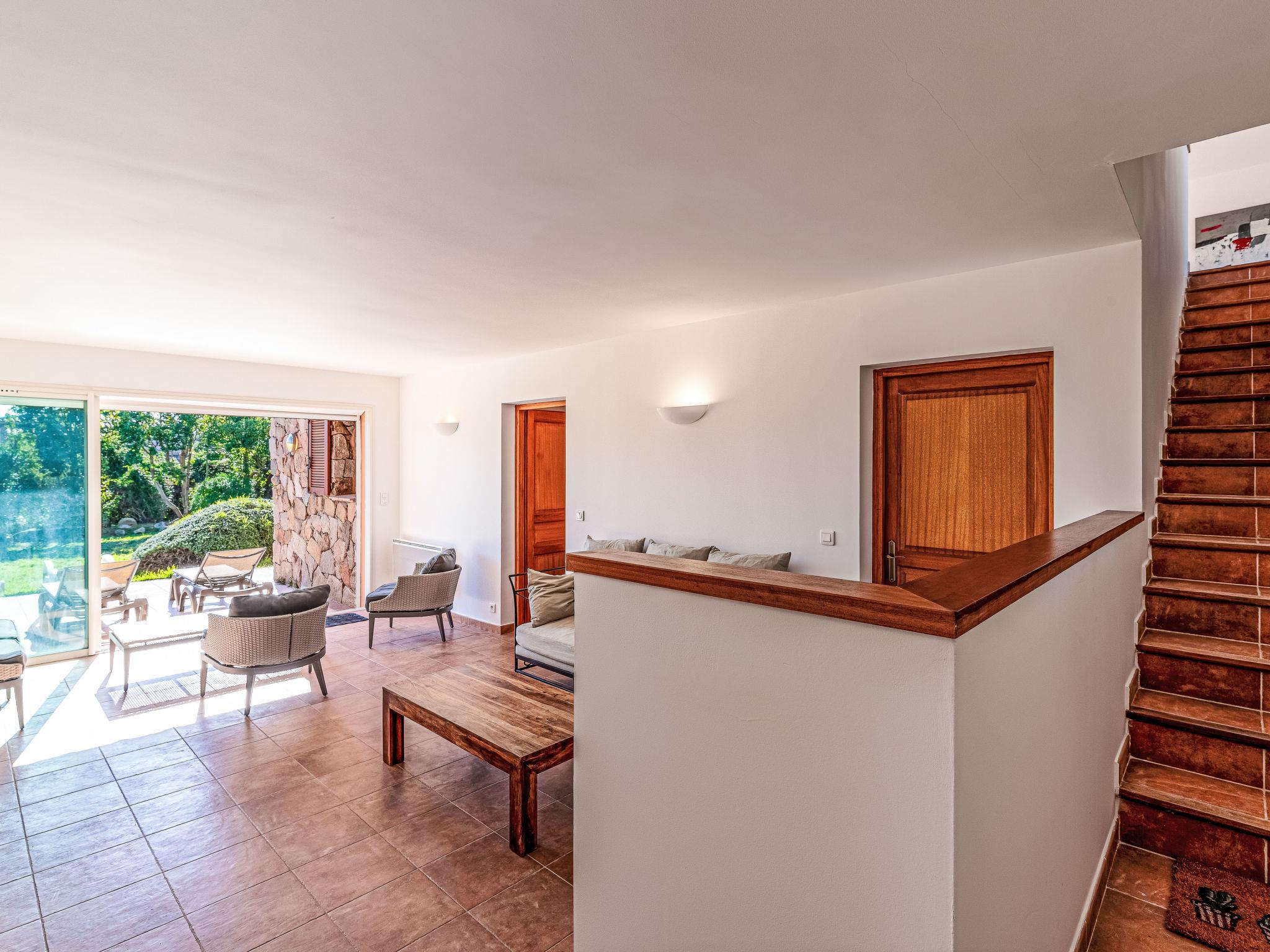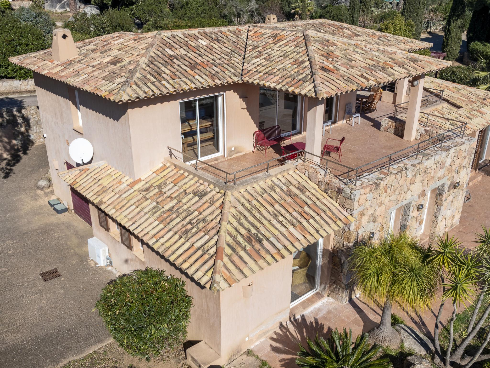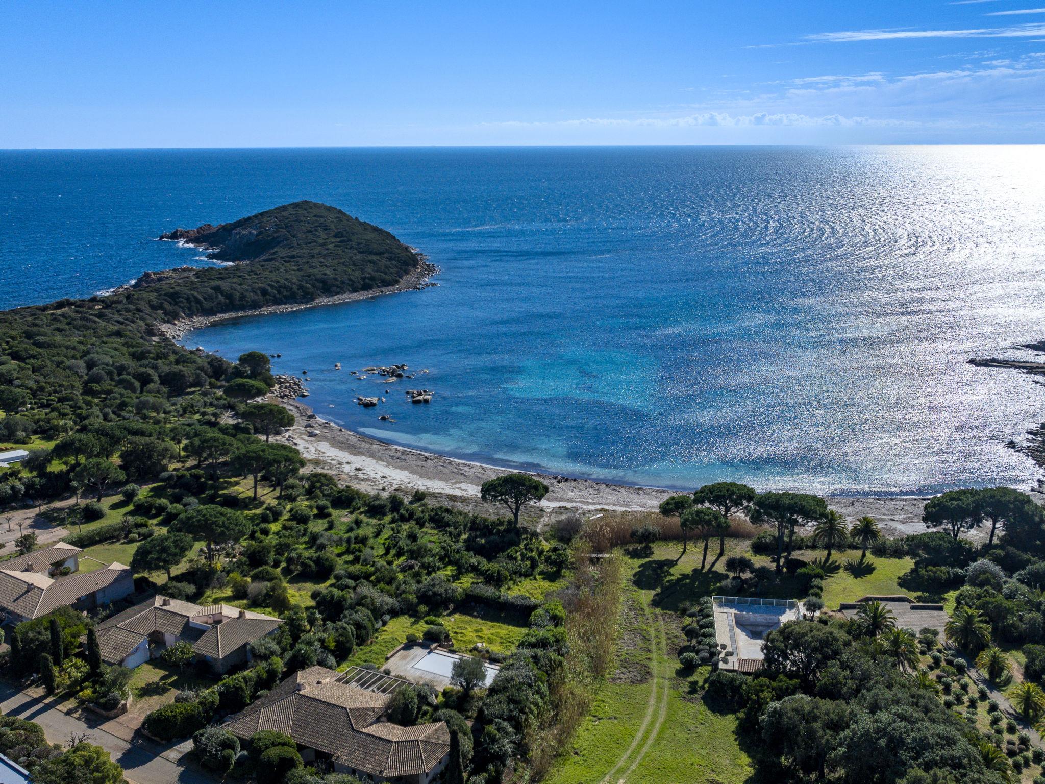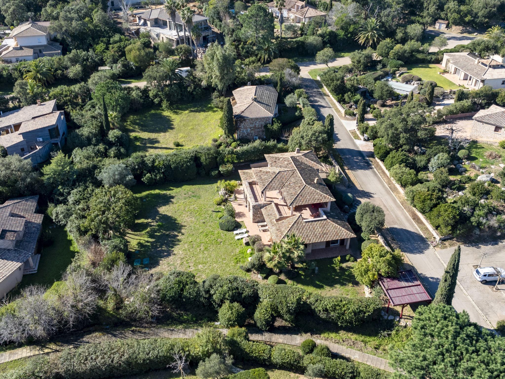 Cala di Capicciola: Villa "Villa Capicciola", 2 storeys. In the residential district, 150 m from the sea, 150 m from the beach, direct access to the beach. For shared use: swimming pool angular (14 x 7 m, depth 110 - 220 cm, seasonal availability: 15.Jun. - 15.Oct.). Private: property 1'700 m2, well-kept garden. Outdoor shower, terrace (30 m2), garden furniture, barbecue house, parking (for 3 cars) on the premises. Supermarket 10 km, shopping centre 10 km, restaurant 2.5 km, bus stop "Saint Cyprien" 7 km, sandy beach "Plage de Capicciola" 150 m. Marina 8 km, golf course (9 hole) 23 km. Nearby attractions: Plage de Pinarellu 5 km, Plage de Saint Cyprien 6 km, Plage de Villata 2 km. Well-known lakes can easily be reached: Lac de l'Ospedale 35 km. Hiking paths: Les aiguilles de Bavella 60 km. Please note: car recommended. Guarded residence. Residence with electric gates.