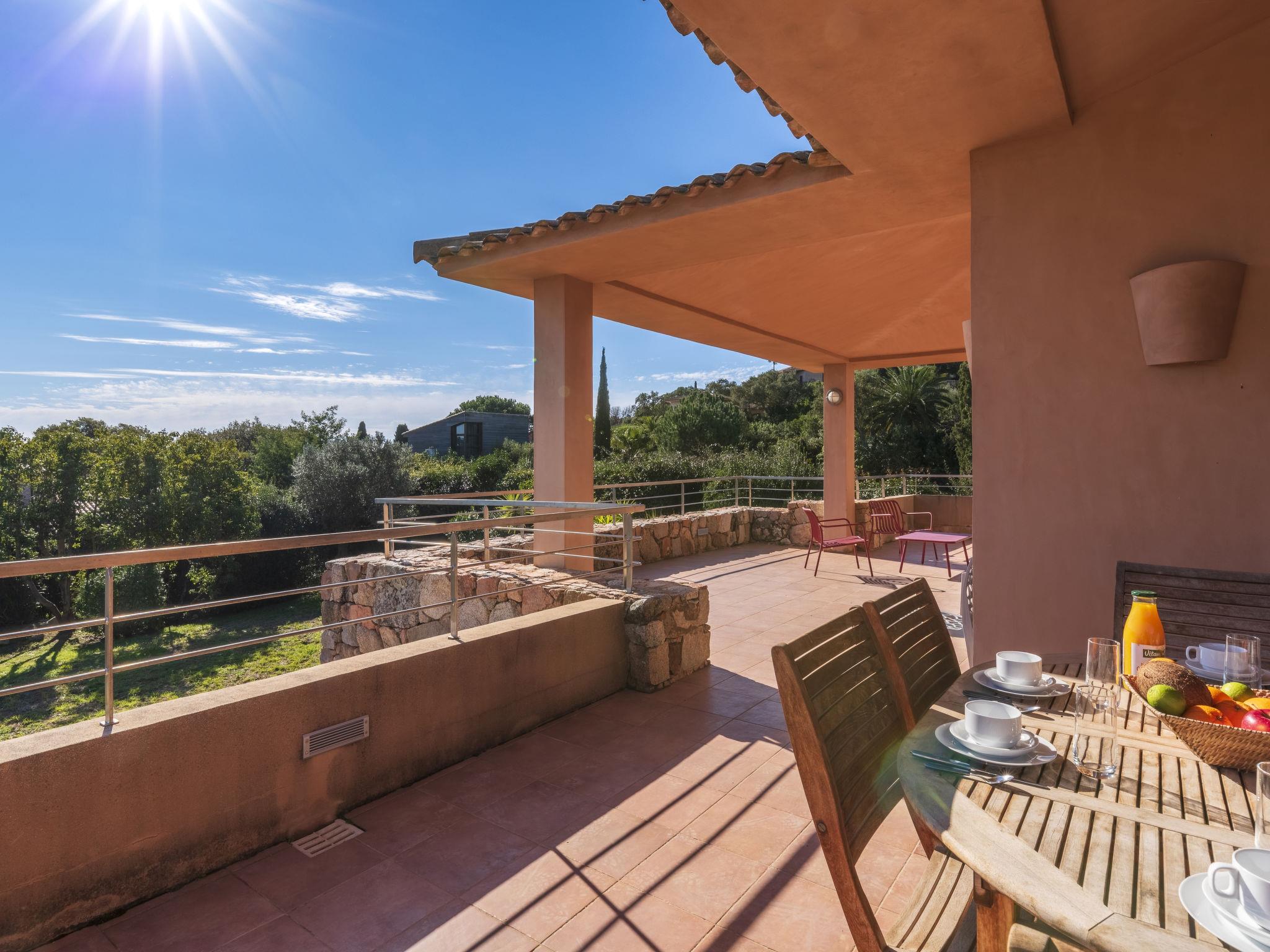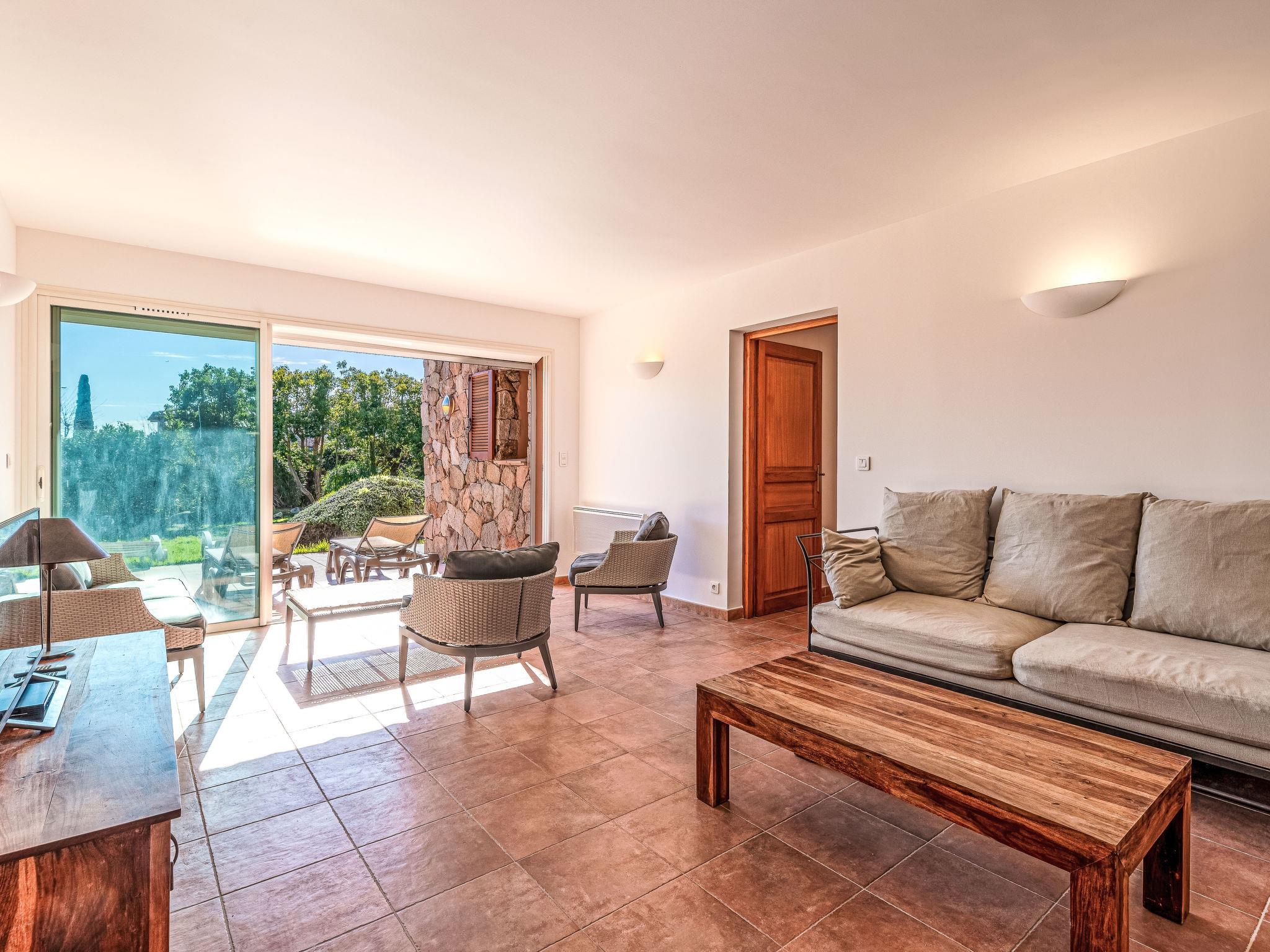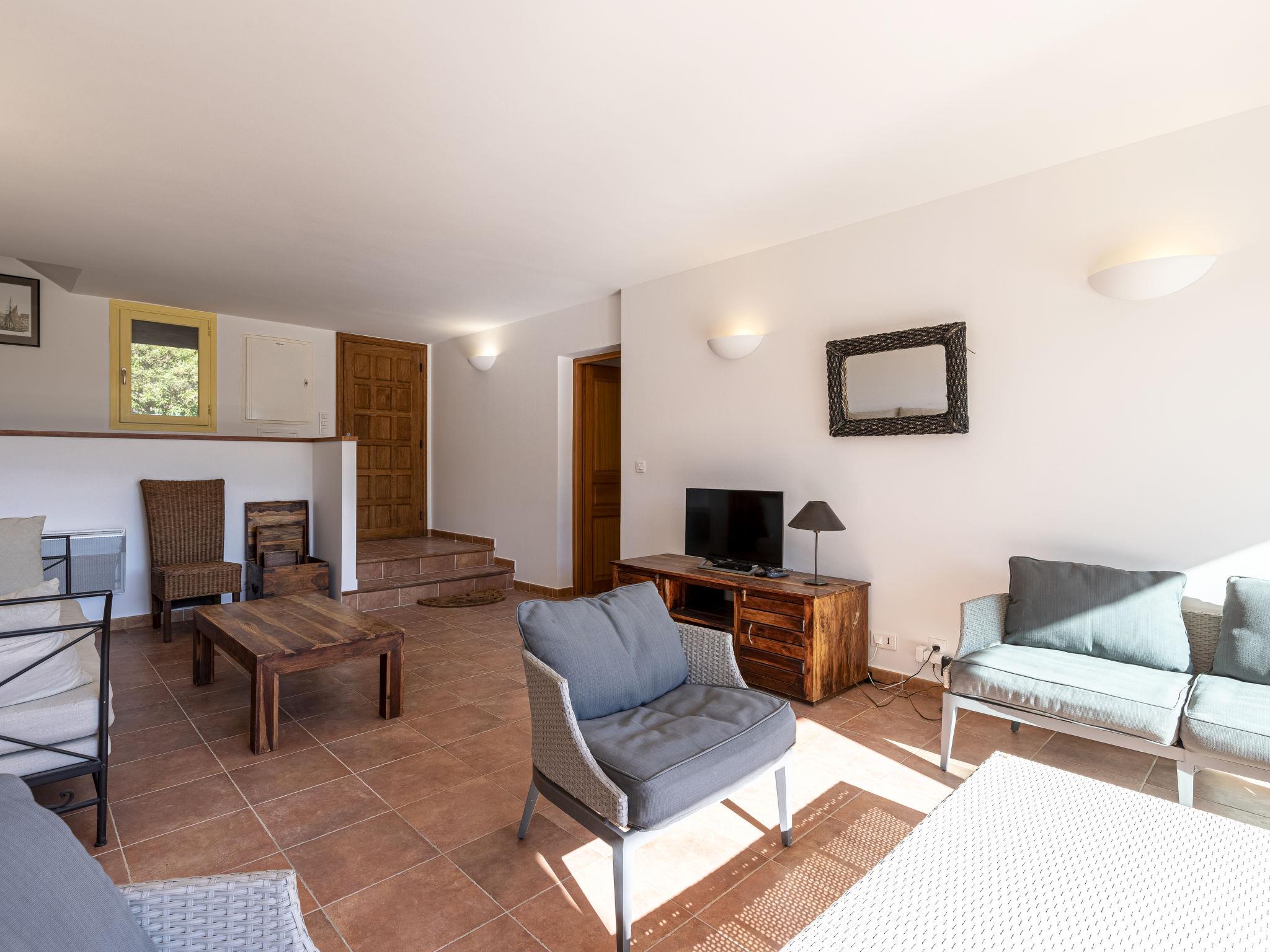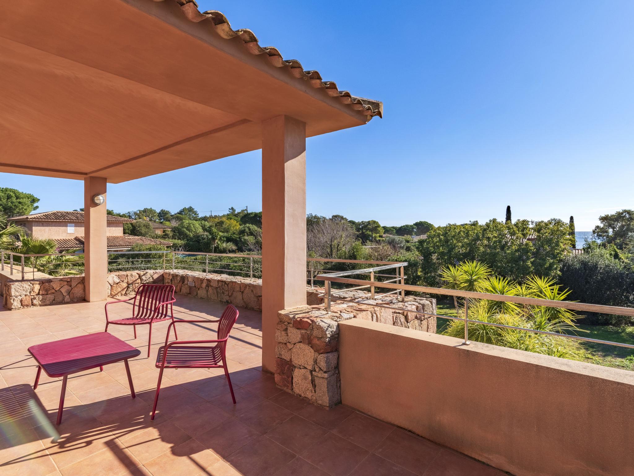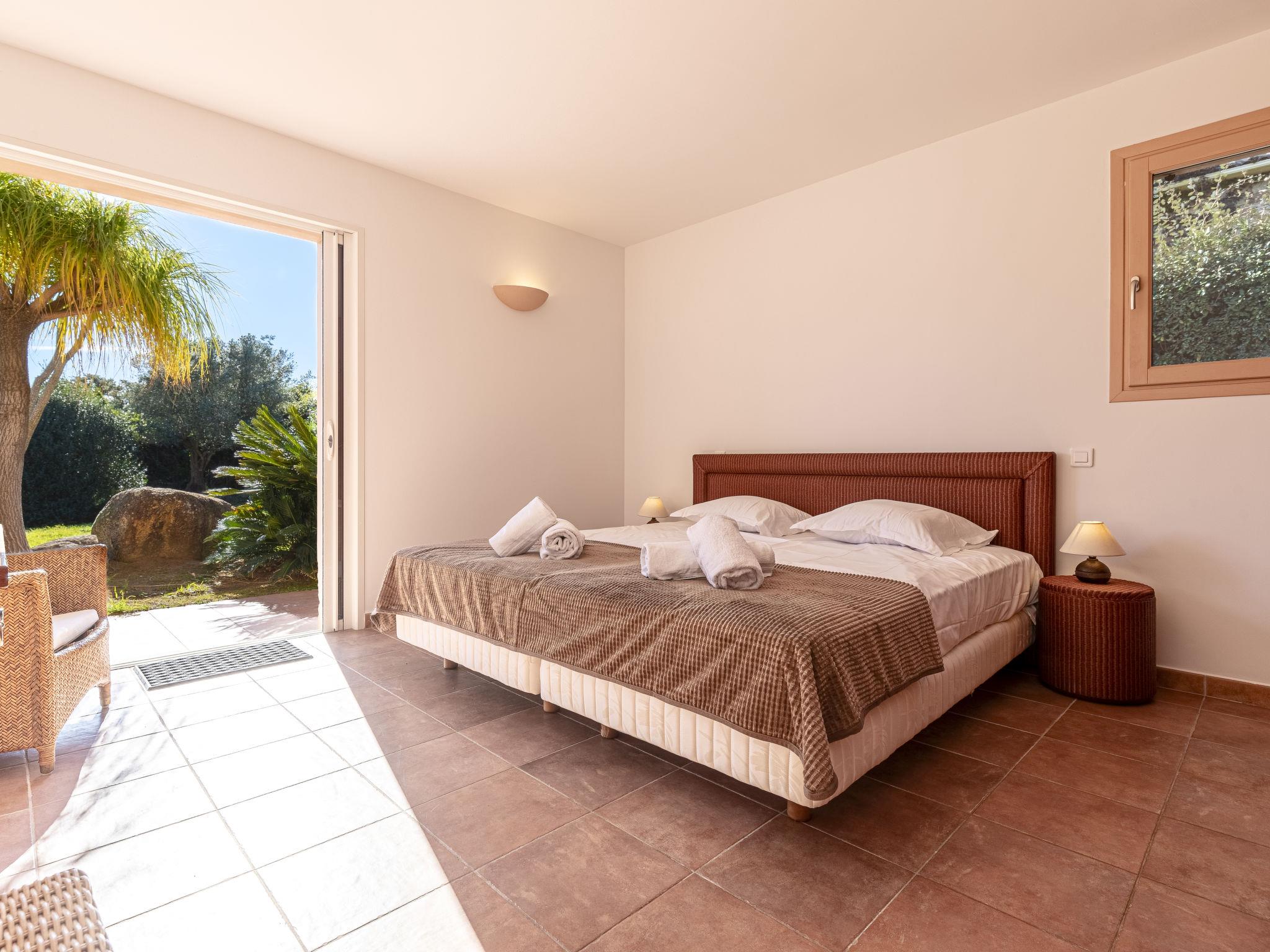 Cala di Capicciola: Villa "Villa Capicciola", 2 storeys. In the residential district, 150 m from the sea, 150 m from the beach, direct access to the beach. For shared use: swimming pool angular (14 x 7 m, depth 110 - 220 cm, seasonal availability: 15.Jun. - 15.Oct.). Private: property 1'700 m2, well-kept garden. Outdoor shower, terrace (30 m2), garden furniture, barbecue house, parking (for 3 cars) on the premises. Supermarket 10 km, shopping centre 10 km, restaurant 2.5 km, bus stop "Saint Cyprien" 7 km, sandy beach "Plage de Capicciola" 150 m. Marina 8 km, golf course (9 hole) 23 km. Nearby attractions: Plage de Pinarellu 5 km, Plage de Saint Cyprien 6 km, Plage de Villata 2 km. Well-known lakes can easily be reached: Lac de l'Ospedale 35 km. Hiking paths: Les aiguilles de Bavella 60 km. Please note: car recommended. Guarded residence. Residence with electric gates.
