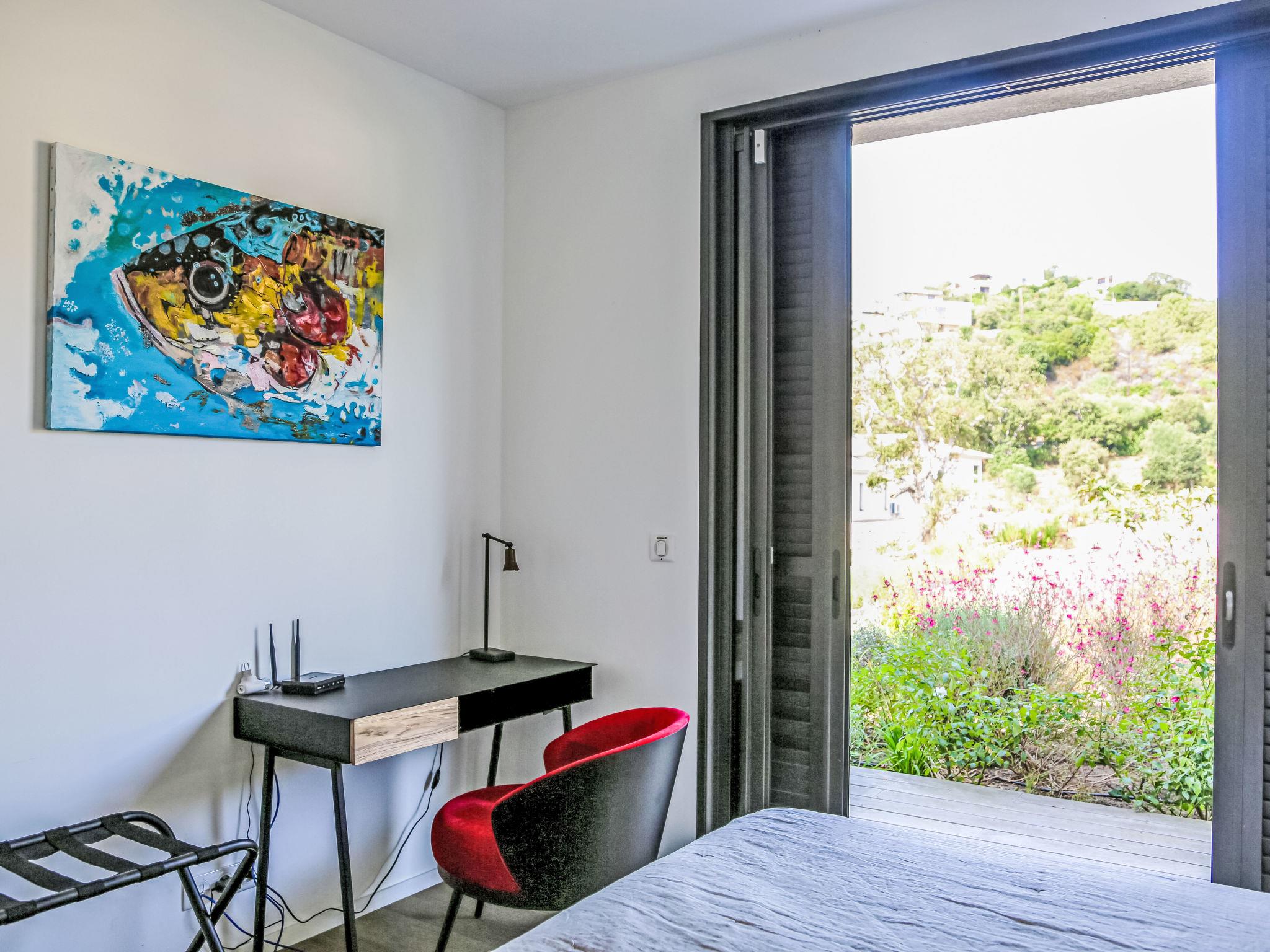 7-room villa 250 m2. Spacious, comfortable and modern furnishings: living/dining room with open-hearth fireplace, dining table and TV (flat screen). Exit to the garden, to the terrace, to the swimming pool. 3 rooms, each room with 1 french bed (180 cm, length 200 cm), shower/WC. 1 room with 2 beds (90 cm, length 200 cm), shower/WC. 2 large rooms, each room with 1 french bed (180 cm, length 200 cm), shower/WC. Open kitchen (oven, dishwasher, 4 ceramic glass hob hotplates, toaster, kettle, microwave, electric coffee machine, cooking island). Sep. WC. Electric heating, air-conditioning. Terrace 154 m2, roofed terrace 40 m2. Terrace furniture, barbecue, deck chairs, sitting area. View of the countryside. Facilities: washing machine, dryer, iron, children's high chair, baby cot, hair dryer. Internet (WiFi). Parking, garage on the property. Please note: smoke alarm. Offer by a private individual according to Art. 155, IV of CGI.