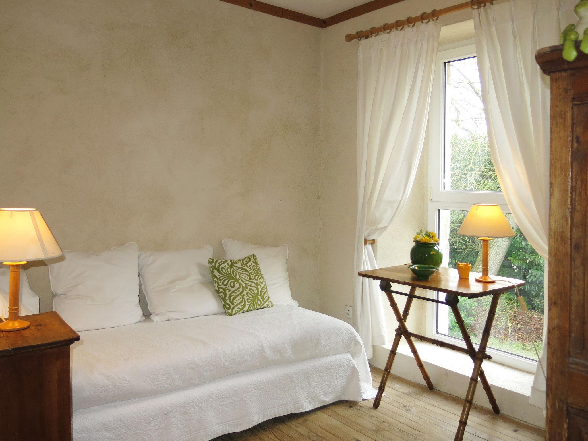 "La Bedelle", 3-room terraced house 60 m2 on 2 levels. Beautiful furnishings: living room with Scandinavian wood stove, satellite TV and international TV channels. Exit to the garden. Open kitchen (oven, dishwasher, 2 ceramic glass hob hotplates, toaster, kettle, microwave, electric coffee machine). Upper floor: gallery with 1 bed (80 cm, length 190 cm). 1 room with 2 beds (90 cm, length 190 cm). 1 room with 1 french bed (140 cm, length 190 cm). Shower/WC. Electric heating. Terrace roofed. Terrace furniture, barbecue. Facilities: washing machine. Internet (WiFi, free). Please note: maximum 1 pet/ dog allowed. Smoke alarm. Instead of an enclosed bedroom, some sleeping areas are located in an open-plan area (gallery, alcove, etc.). Bed layout is flexible. There are more sleeping options available than the maximum number of people allowed which may, however, not be exceeded. Offer by a private individual according to Art. 155, IV of CGI.