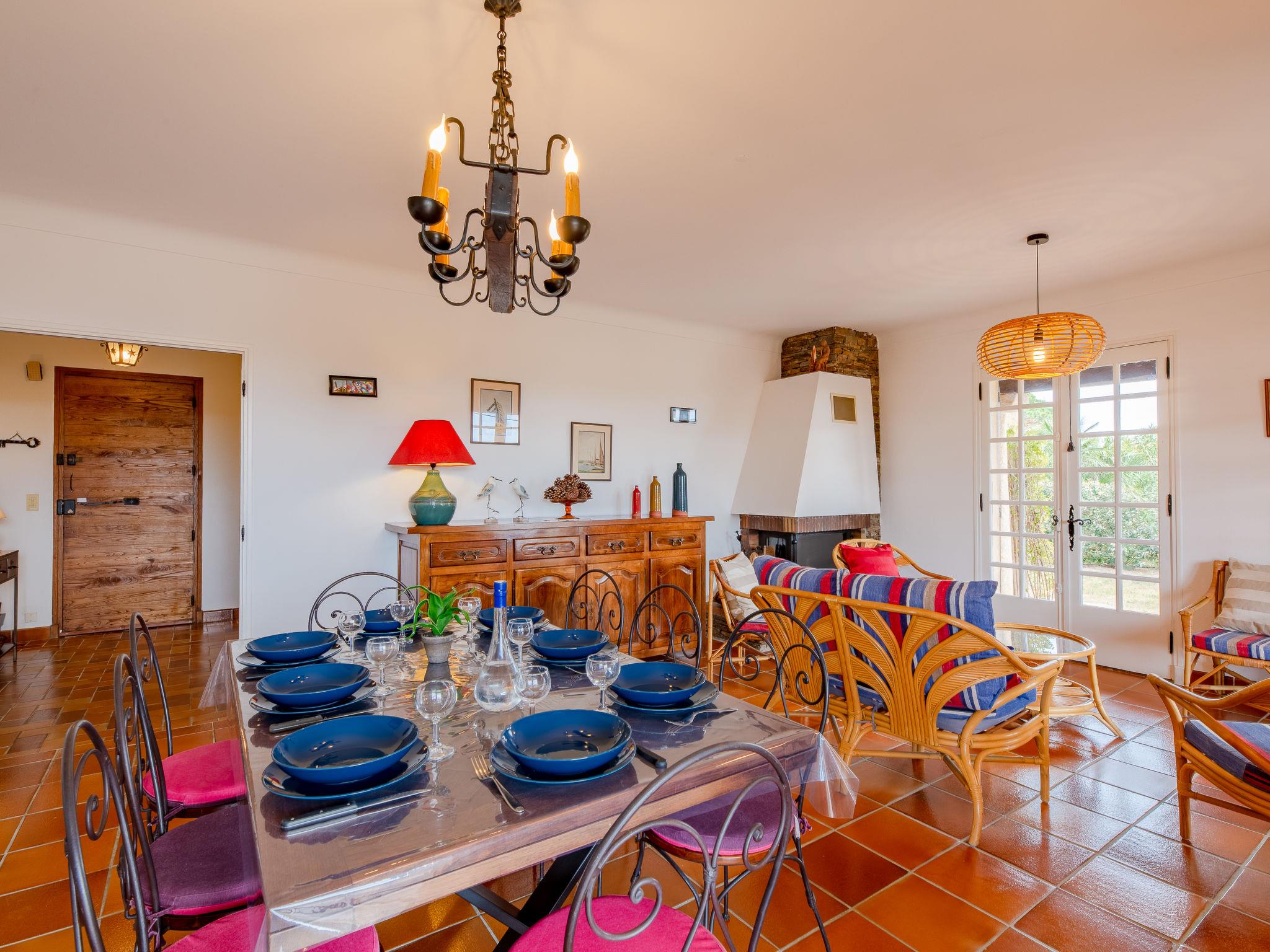 5-room house 150 m2. Practical and rustic furnishings: dining room with open-hearth fireplace and TV. Exit to the garden, to the terrace. 1 room with 1 french bed (140 cm, length 190 cm). Exit to the garden. 1 room with 2 beds (90 cm, length 190 cm). Exit to the garden, to the terrace. 1 room with 1 french bed (160 cm, length 200 cm). Exit to the garden, to the terrace. 1 room with 1 french bed (140 cm, length 190 cm). Large kitchen (oven, dishwasher, 4 induction hot plates, toaster, kettle, microwave, freezer, electric coffee machine). Exit to the garden. Bath/WC, shower, sep. WC. Terrace furniture. Distant view of the sea. Facilities: washing machine, children's high chair, baby cot for up to 2 year olds. Internet (WiFi, free). Parking. Please note: non-smokers only. Maximum 1 small pet/ dog allowed. Smoke alarm. 83115003102AV