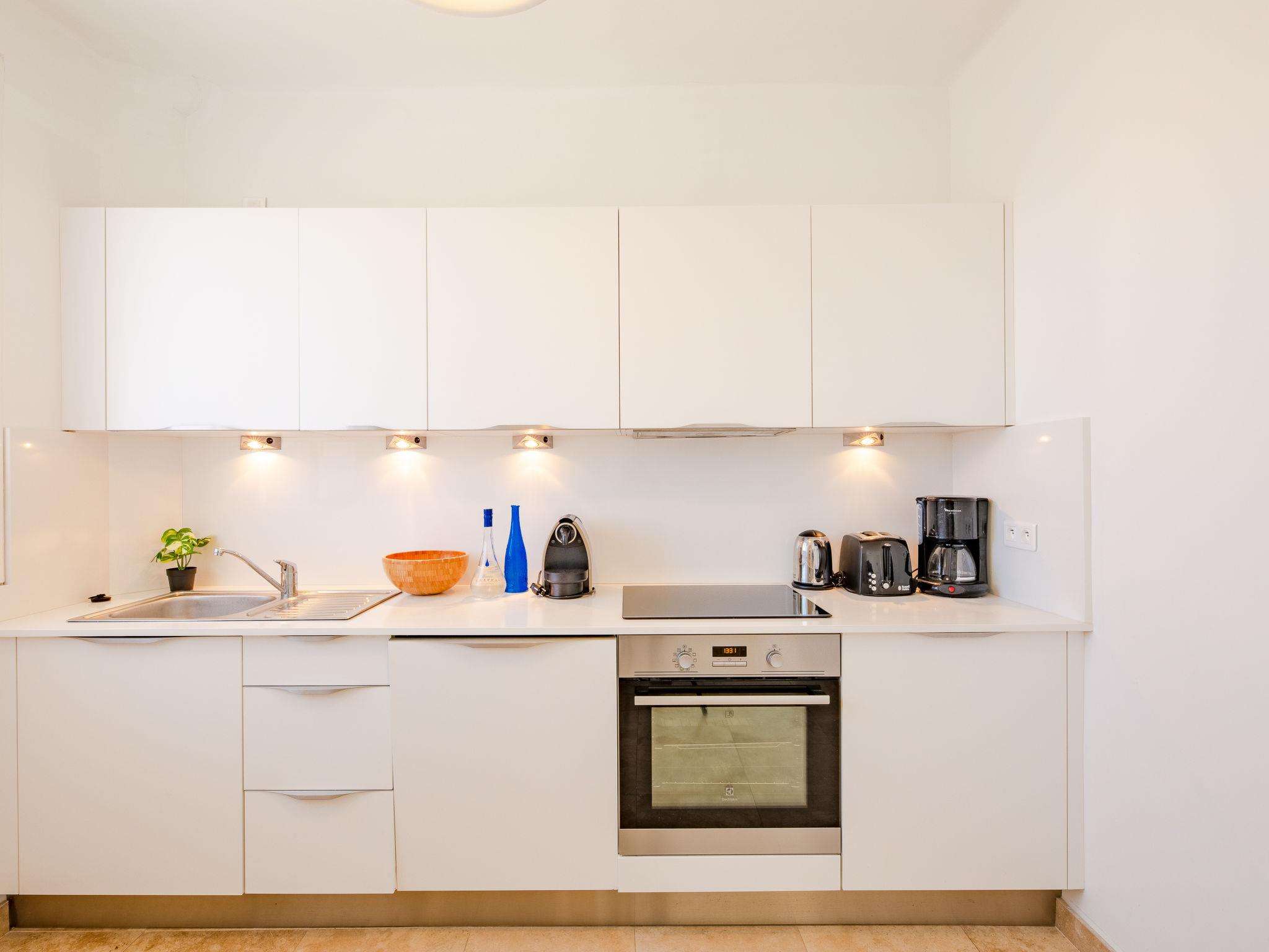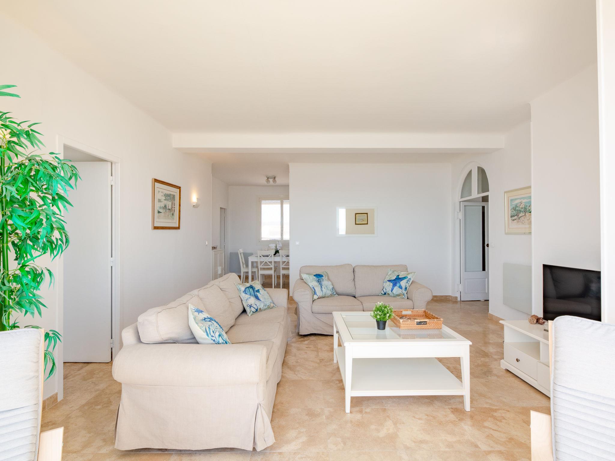 4-room apartment 90 m2 on 4th floor. Spacious and bright, comfortable furnishings: entrance hall. Large lounge with TV. Dining room. 1 room with 1 french bed (160 cm, length 190 cm), air conditioning. 1 room with 2 beds (90 cm, length 200 cm), air conditioning. Kitchen (4 hot plates, oven, dishwasher, toaster, kettle, microwave, freezer, electric coffee machine). Shower, sep. WC. Electric heating, air-conditioning. Panoramic view of the sea. Facilities: washing machine, dryer, mosquito net. Internet (WiFi, free). Garage, height 180 cm, width 230 cm. Please note: non-smokers only. Smoke alarm. Accommodation not suitable for PRM People with reduced mobility. 83115001571WR