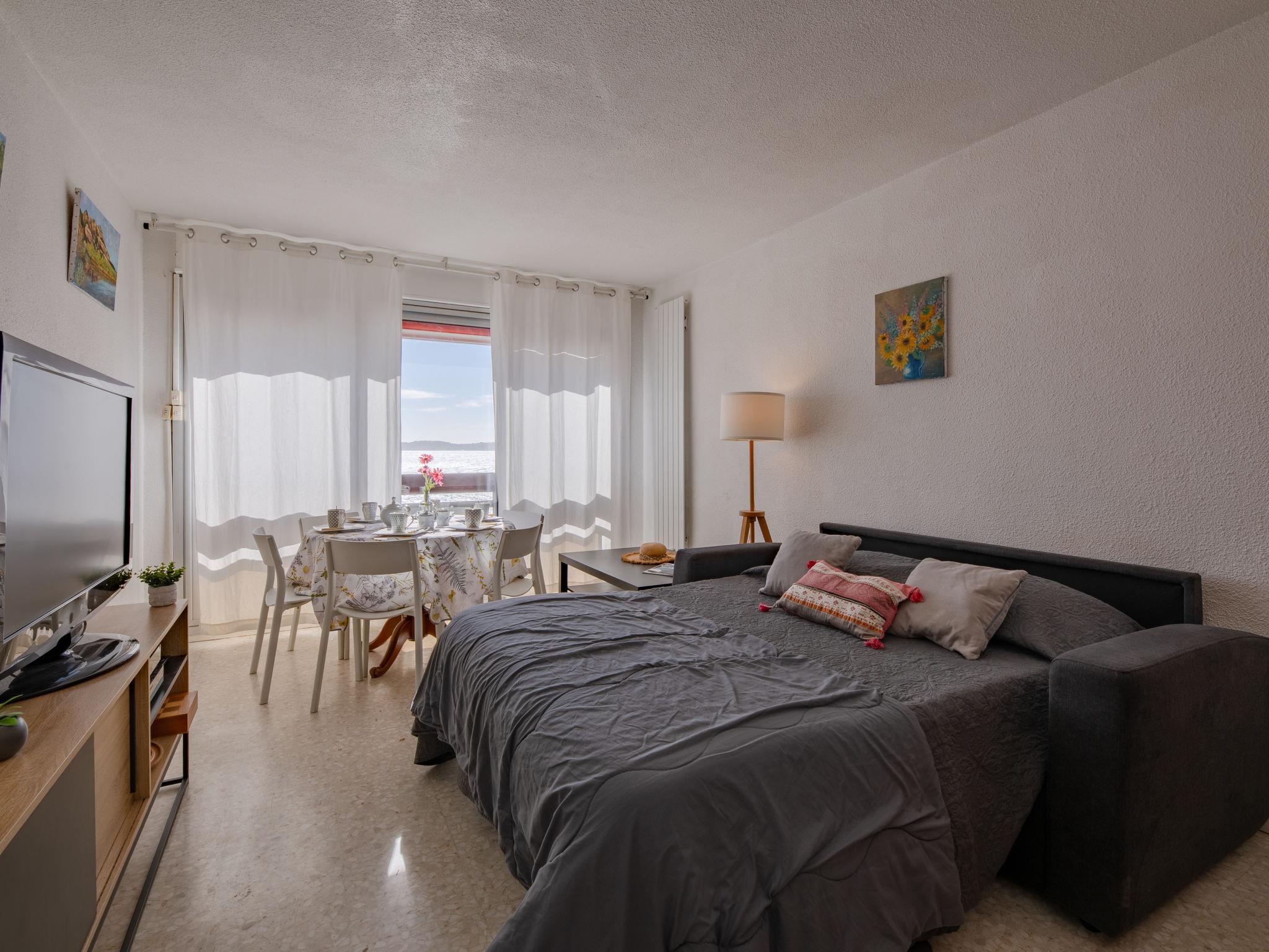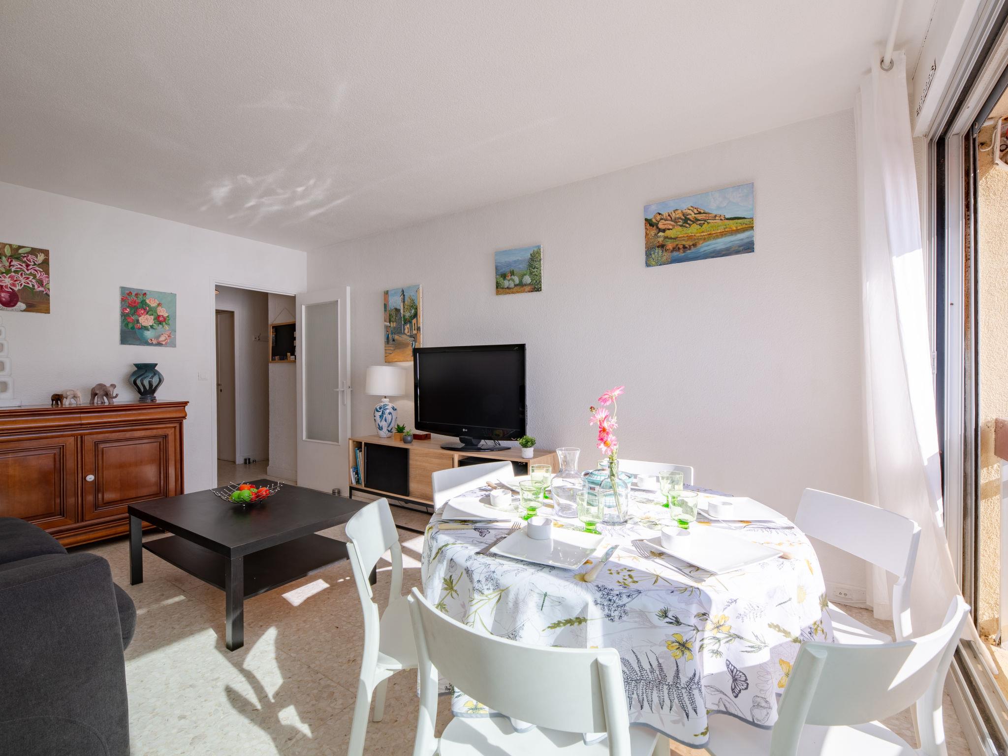 "Le Grand Large", 3-room apartment 70 m2 on 2nd floor, south-west facing position. Spacious and bright, beautiful furnishings: entrance hall. Living/dining room with 1 double sofabed (1 x 130 cm, length 190 cm), TV (flat screen). 1 room with 1 french bed (1 x 140 cm, length 190 cm). Exit to the balcony. 1 room with 2 beds (90 cm, length 190 cm). Exit to the balcony. Small kitchen (dishwasher, 2 ceramic glass hob hotplates, toaster, kettle, freezer, electric coffee machine, combination microwave). Shower, sep. WC. Electric heating. Balcony 15 m2, west facing position. Marvellous view of the sea. Facilities: washing machine. Internet (WiFi). Parking space n 29. Please note: non-smokers only. Maximum 1 pet/ dog allowed. Smoke alarm, no lift. Offer by a private individual according to Art. 155, IV of CGI. 83115003656JD