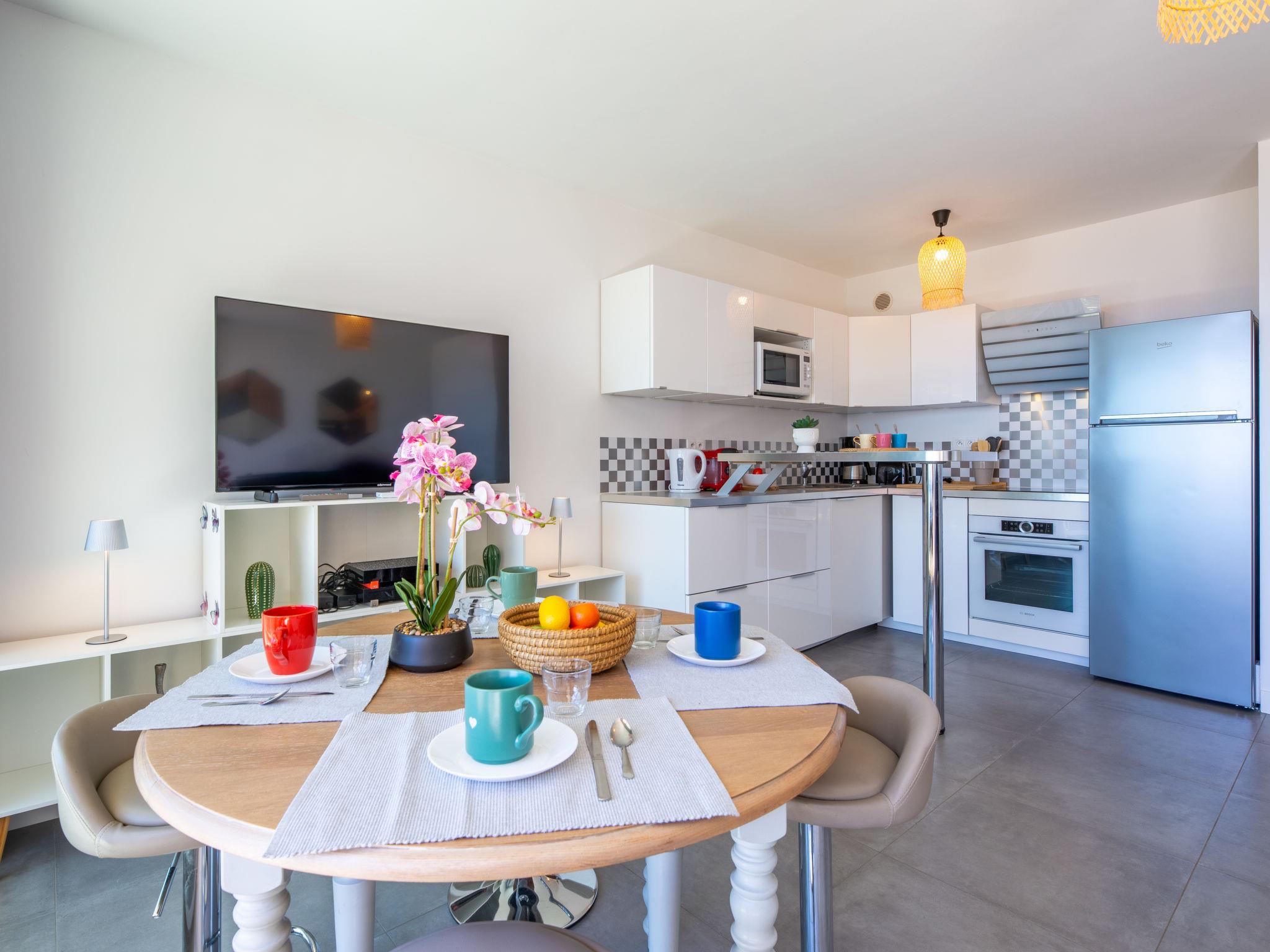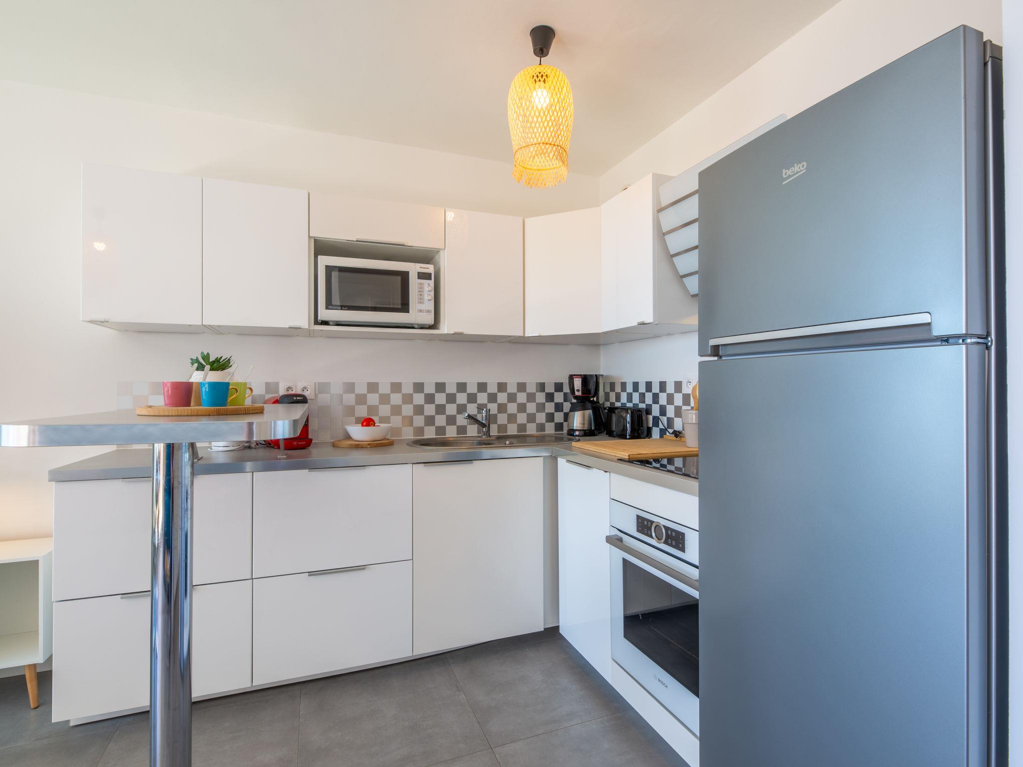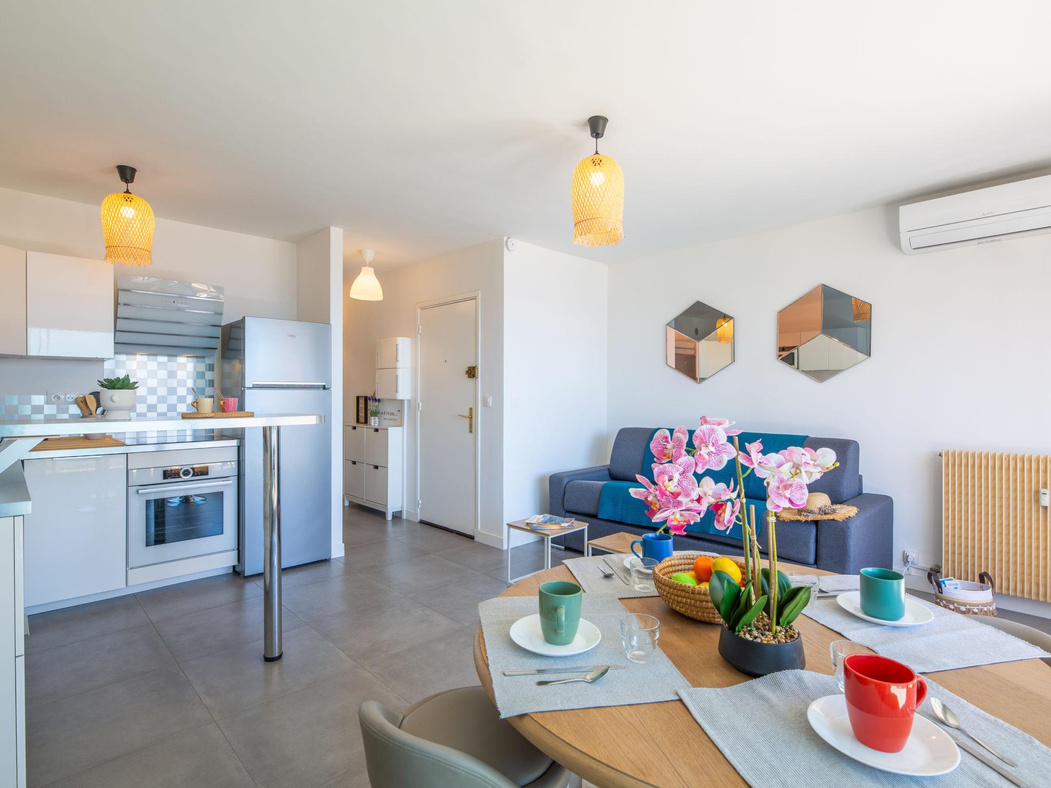 2-room apartment 42 m2 on 1st floor, south facing position. Renovated, comfortable and cosy furnishings: living/dining room with 1 double sofabed (160 cm, length 200 cm), TV (flat screen), air conditioning. Exit to the terrace. 1 room with 1 french bed (160 cm, length 200 cm). Open kitchen (oven, dishwasher, 3 induction hot plates, toaster, kettle, microwave, freezer, electric coffee machine). Shower, sep. WC. Forced-air heating. Balcony 9 m2, south facing position. Balcony furniture. Beautiful view of the sea. Facilities: washing machine, iron. Internet (WiFi, free). Parking (1 car). Please note: non-smokers only. Maximum 1 small pet/ dog allowed. Smoke alarm, no lift. Offer by a private individual according to Art. 155, IV of CGI. 83115005574AK