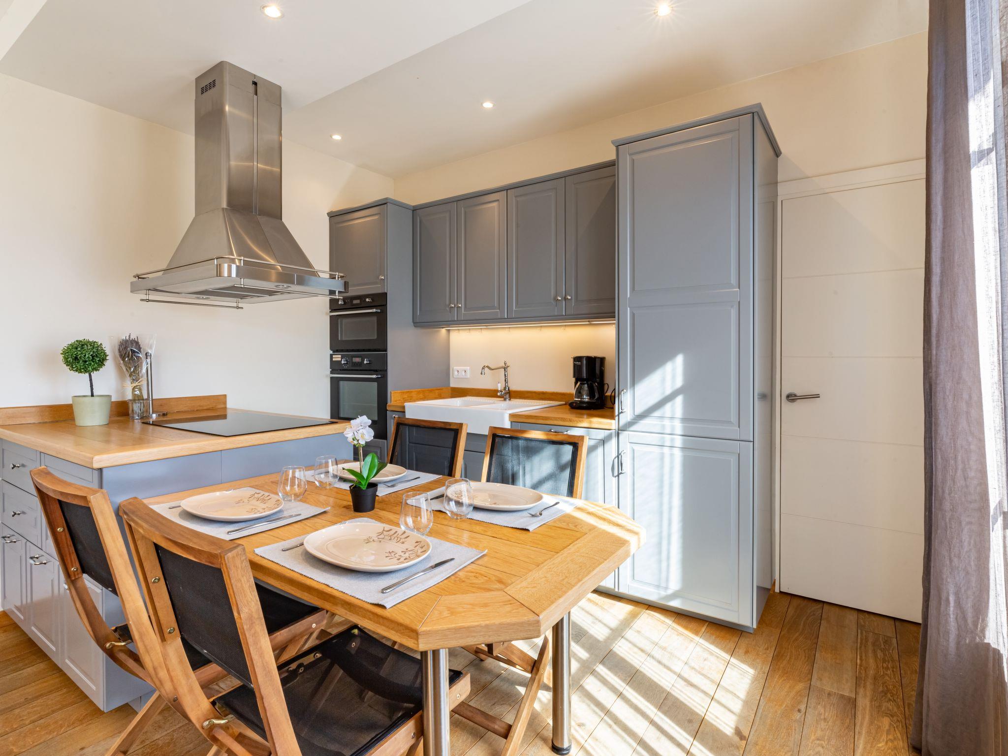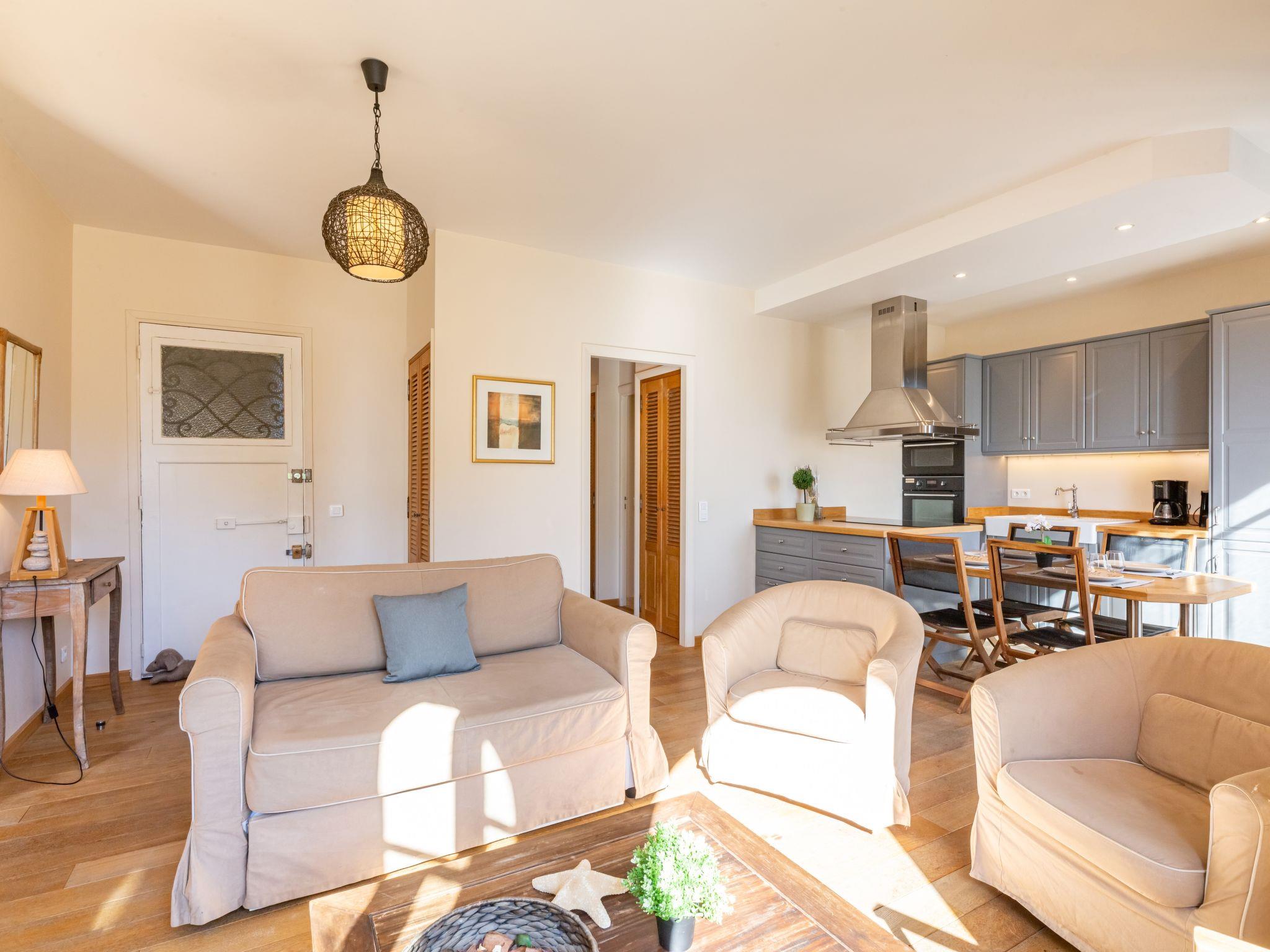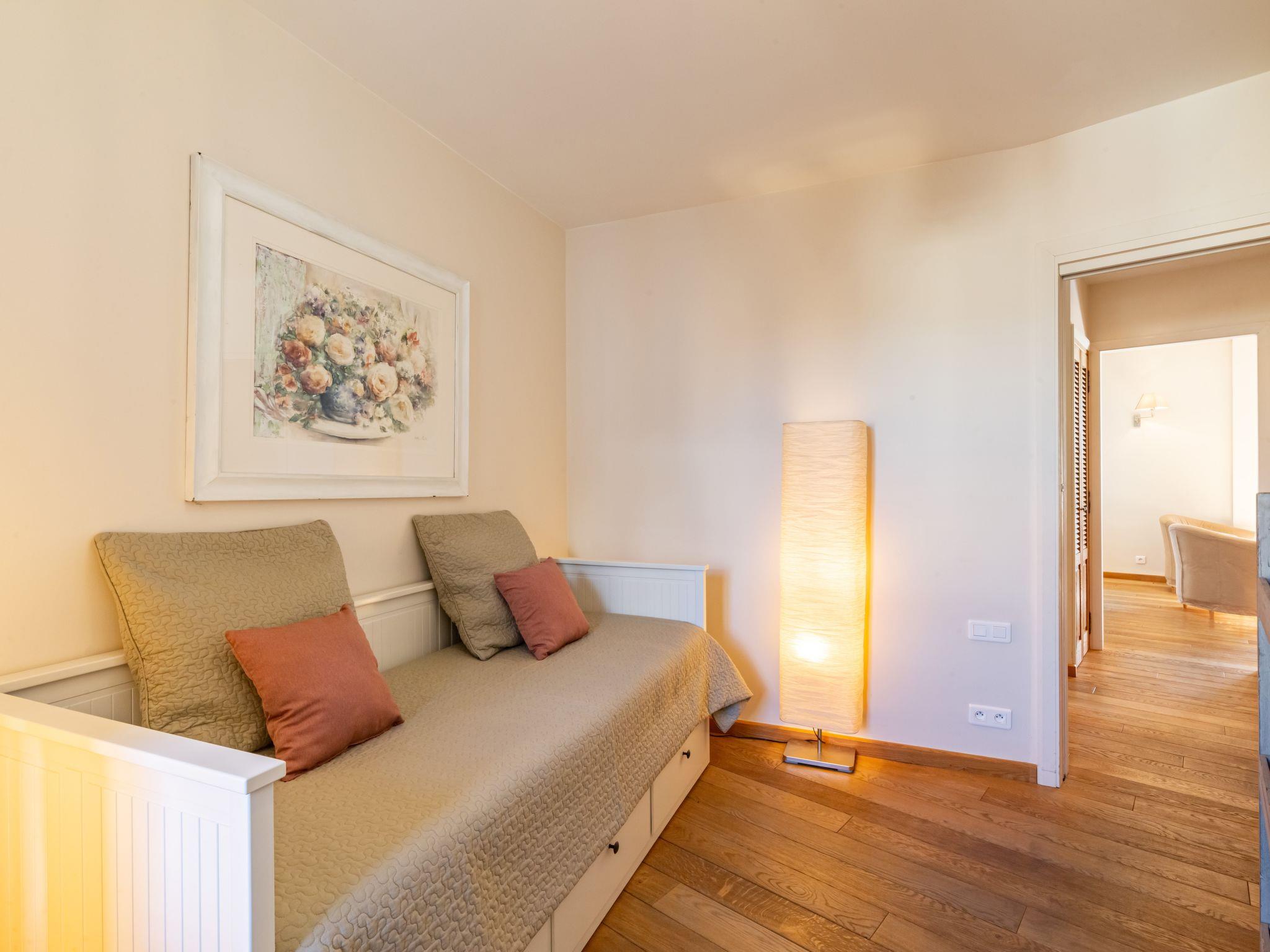 3-room apartment 70 m2 on 2nd floor, south facing position. Bright, beautiful and tasteful furnishings: living/dining room with TV (flat screen). 1 room with 1 french bed (160 cm, length 200 cm). 1 room with 1 french bed (2 x 80 cm, length 200 cm). Open kitchen (4 hot plates, oven, dishwasher, toaster, kettle, microwave, freezer, electric coffee machine, cooking island). Shower/WC. Electric heating, air-conditioning. Beautiful view of the sea. Facilities: washing machine, dryer. Internet (WiFi, free). Please note: non-smokers only. Smoke alarm, no lift. 83115003028SM