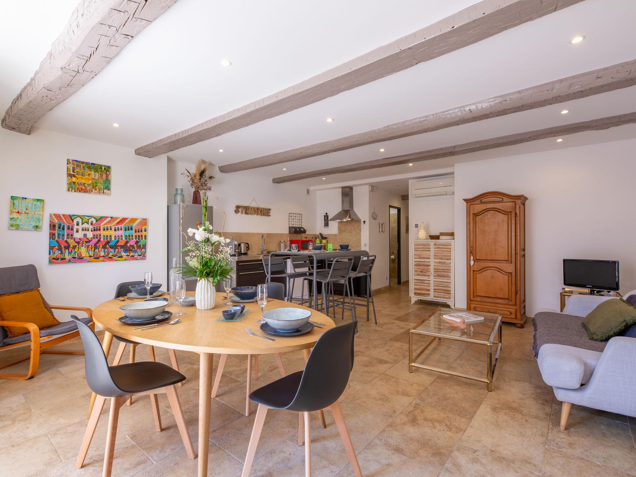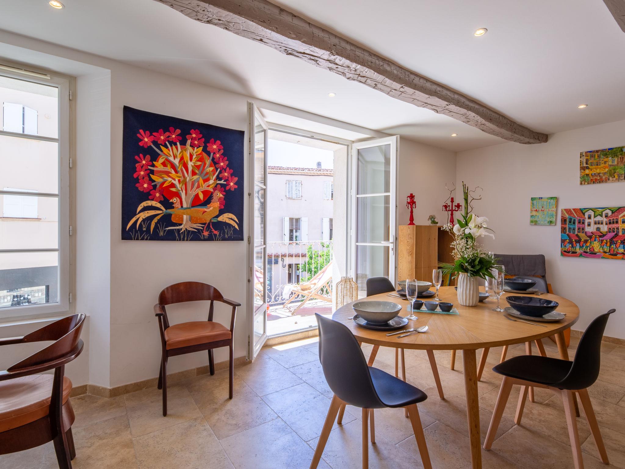 3-room apartment 60 m2 on 1st floor, south facing position. Spacious and bright, beautiful furnishings: living/dining room with TV (flat screen). Exit to the balcony. 1 room with 1 french bed (140 cm, length 200 cm). 1 room with 2 beds (80 cm, length 190 cm). Open kitchen (oven, dishwasher, 4 induction hot plates, toaster, kettle, freezer, electric coffee machine). Shower/WC. Electric heating, air-conditioning. Small balcony 3 m2. View of the town. Facilities: washing machine, hair dryer. Internet (WiFi, free). Parking (roofed) at 500 m. Please note: non-smokers only. Maximum 1 pet/ dog allowed. Smoke alarm, no lift. Offer by a commercial proprietor according to Art. 155, IV, CGI 83115001563MX