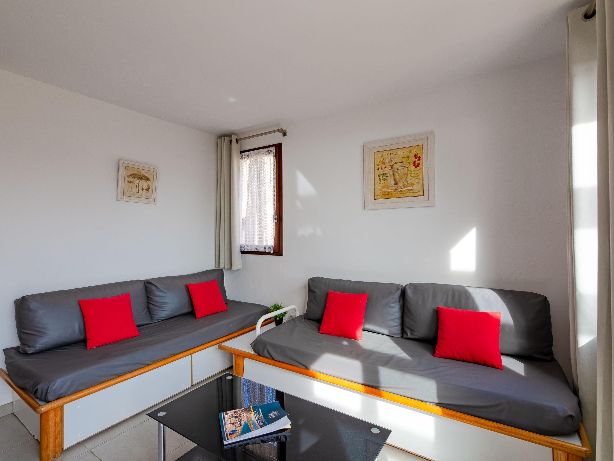 3-room apartment 35 m2 on 1st floor. Beautiful and modern furnishings: dining room with TV (flat screen). Exit to the terrace. 1 room with 1 french bed (140 cm, length 190 cm). Small sleeping alcove with 1 x 2 bunk beds (80 cm, length 190 cm). Kitchenette (oven, dishwasher, 4 ceramic glass hob hotplates, toaster, kettle, microwave, freezer, electric coffee machine). Shower, sep. WC. Electric heating. Terrace 12 m2, east facing position. Balcony furniture. Beautiful view of the sea. Facilities: washing machine, safe. Internet (WiFi, extra). Parking. Please note: non-smokers only. Smoke alarm. ¨the apartment has access to the octagonal swimming pool. 83115002968SB