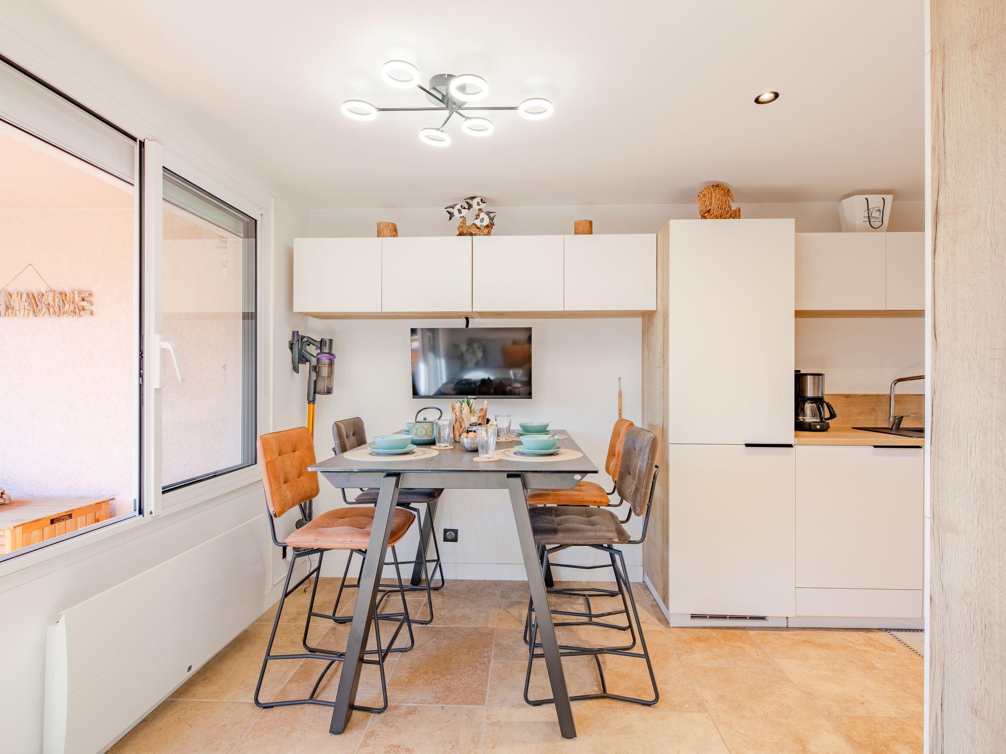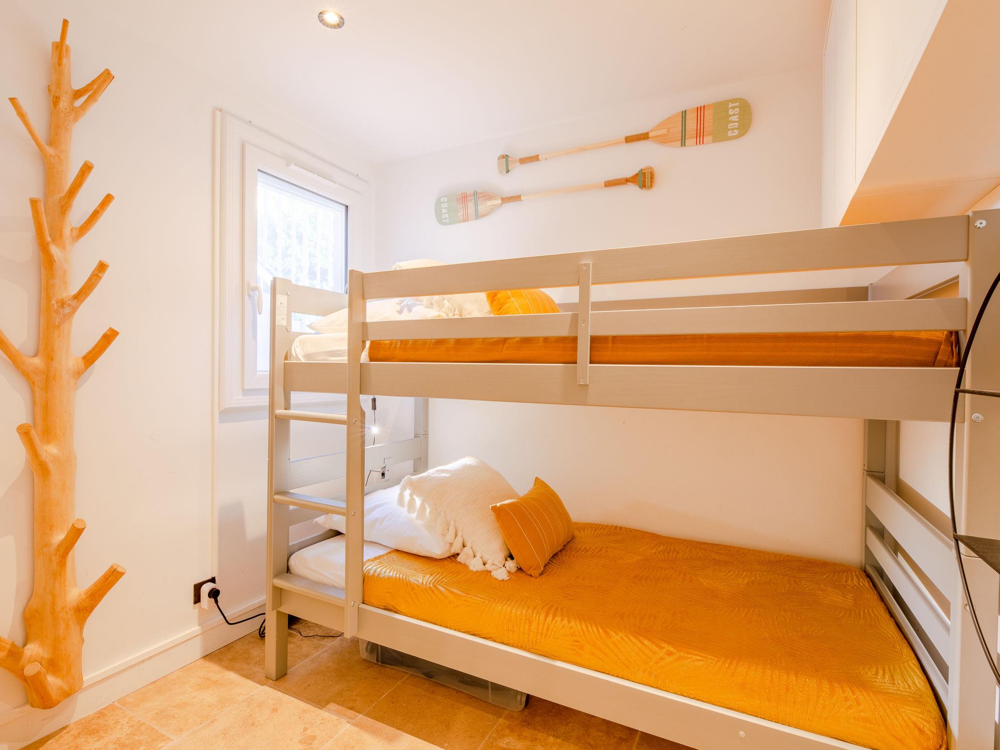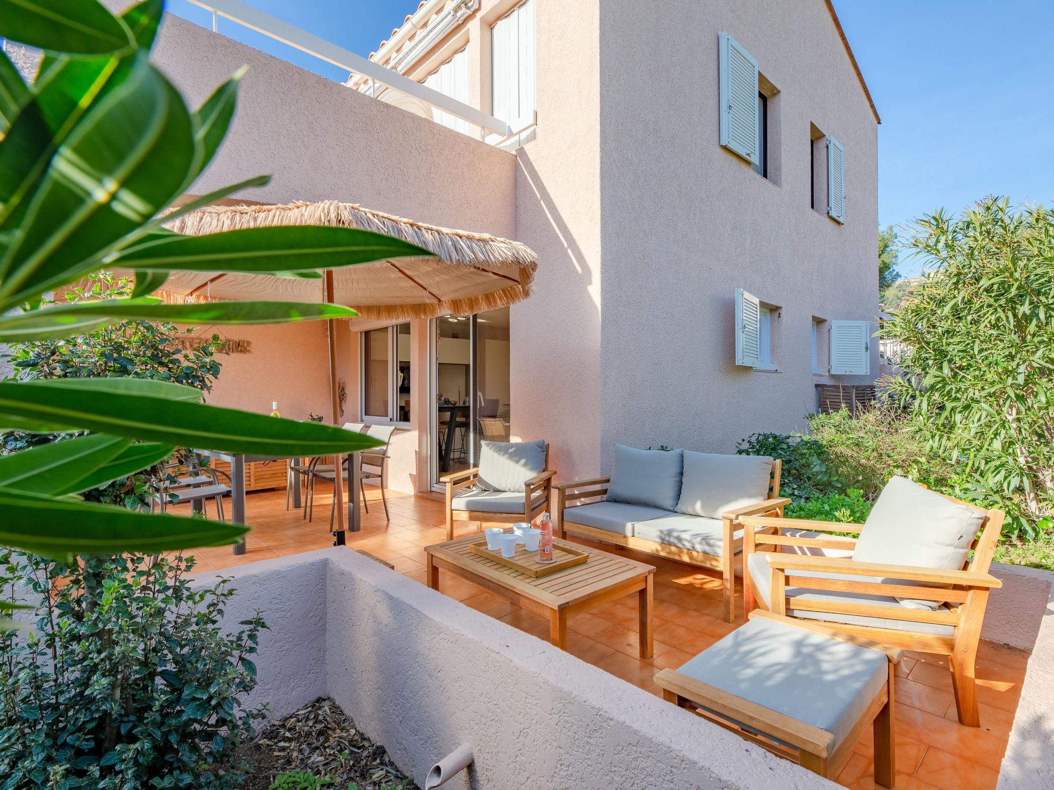 3-room apartment 33 m2, on the ground floor. Beautiful and modern furnishings: living/dining room with TV (flat screen), air conditioning. Exit to the terrace. 1 room with 1 french bed (140 cm, length 190 cm). Small sleeping alcove with 1 x 2 bunk beds (80 cm, length 190 cm). Kitchenette (2 hot plates, oven, dishwasher, toaster, kettle, microwave, electric coffee machine). Shower, sep. WC. Electric heating. Terrace 20 m2, east facing position. Terrace furniture. Beautiful view of the sea. Facilities: washing machine. Internet (WiFi, free). Parking. Please note: suitable for families. Non-smokers only. Smoke alarm. Offer by a private individual according to Art. 155, IV of CGI. 83115005081WF