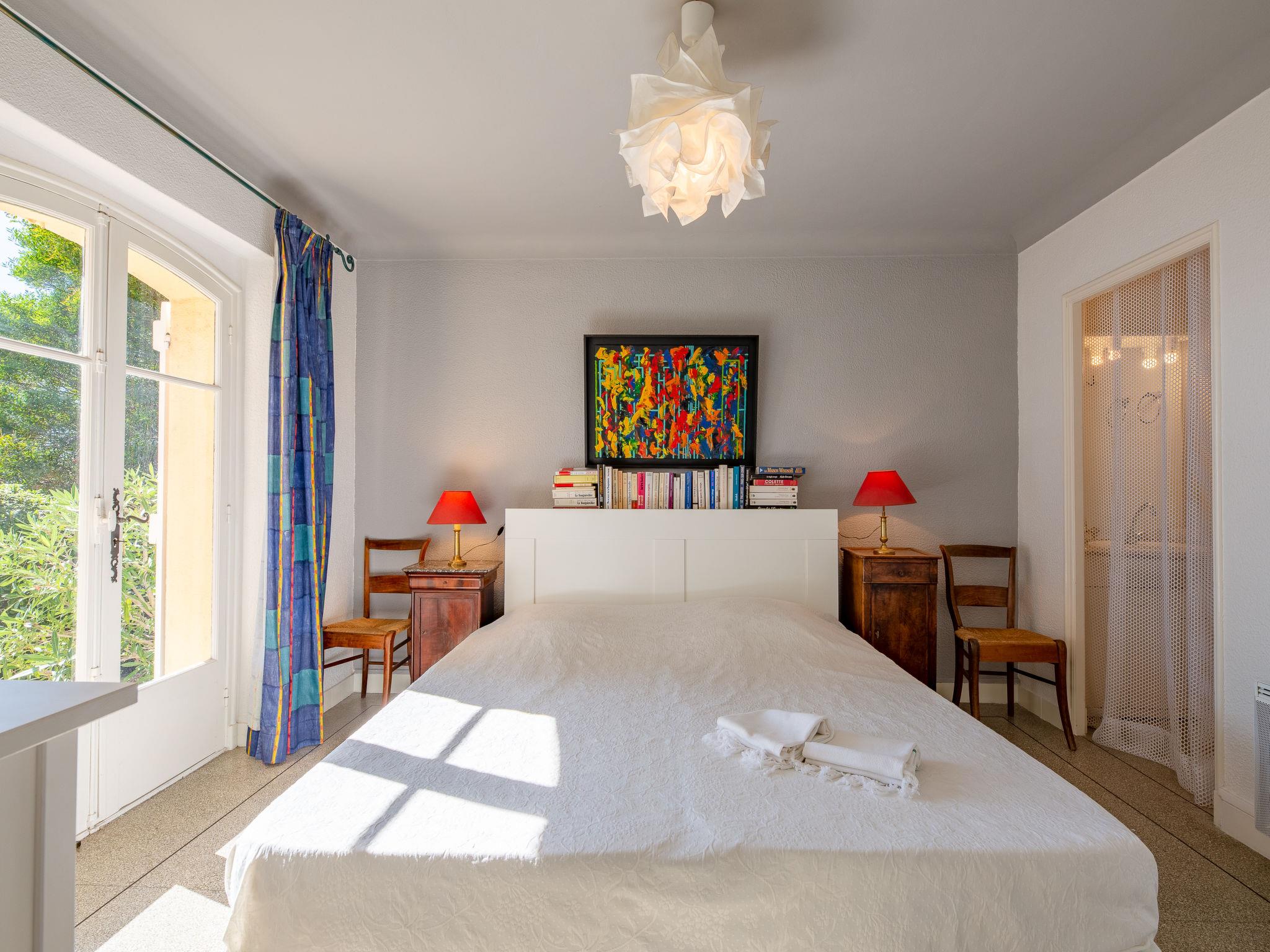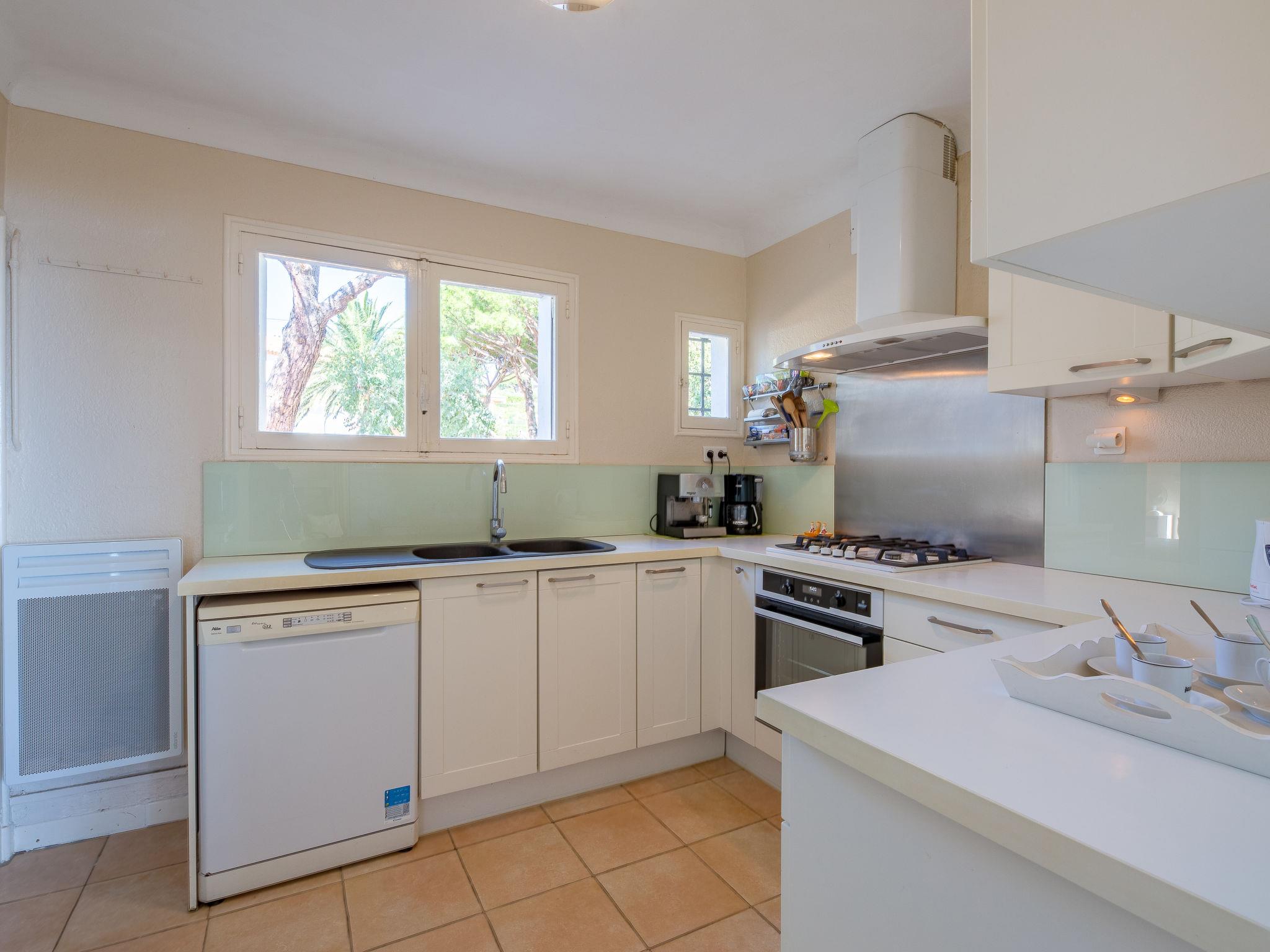 5-room house 140 m2. Beautiful furnishings: entrance hall with separate WC. Living/dining room with open-hearth fireplace (only for decoration), TV (flat screen). Exit to the garden. 1 room with 2 beds (90 cm, length 190 cm), shower/WC. Exit to the garden. 1 room with 2 beds (90 cm, length 190 cm), shower. Exit to the garden. 1 room with 2 beds (90 cm, length 190 cm), hand-basin and shower. Exit to the garden. 1 room with 2 beds (90 cm, length 190 cm). Exit to the garden. Kitchen (4 hot plates, oven, dishwasher, toaster, kettle, microwave, freezer, electric coffee machine). Shower/WC. Electric heating. Garden, south facing position. Beautiful view of the sea and the resort. Facilities: washing machine, iron, hair dryer. Internet (WiFi, free). Parking (3 cars). Please note: non-smoking house. Maximum 1 pet/ dog allowed. Smoke alarm. Offer by a private individual according to Art. 155, IV of CGI. 83115000768AV