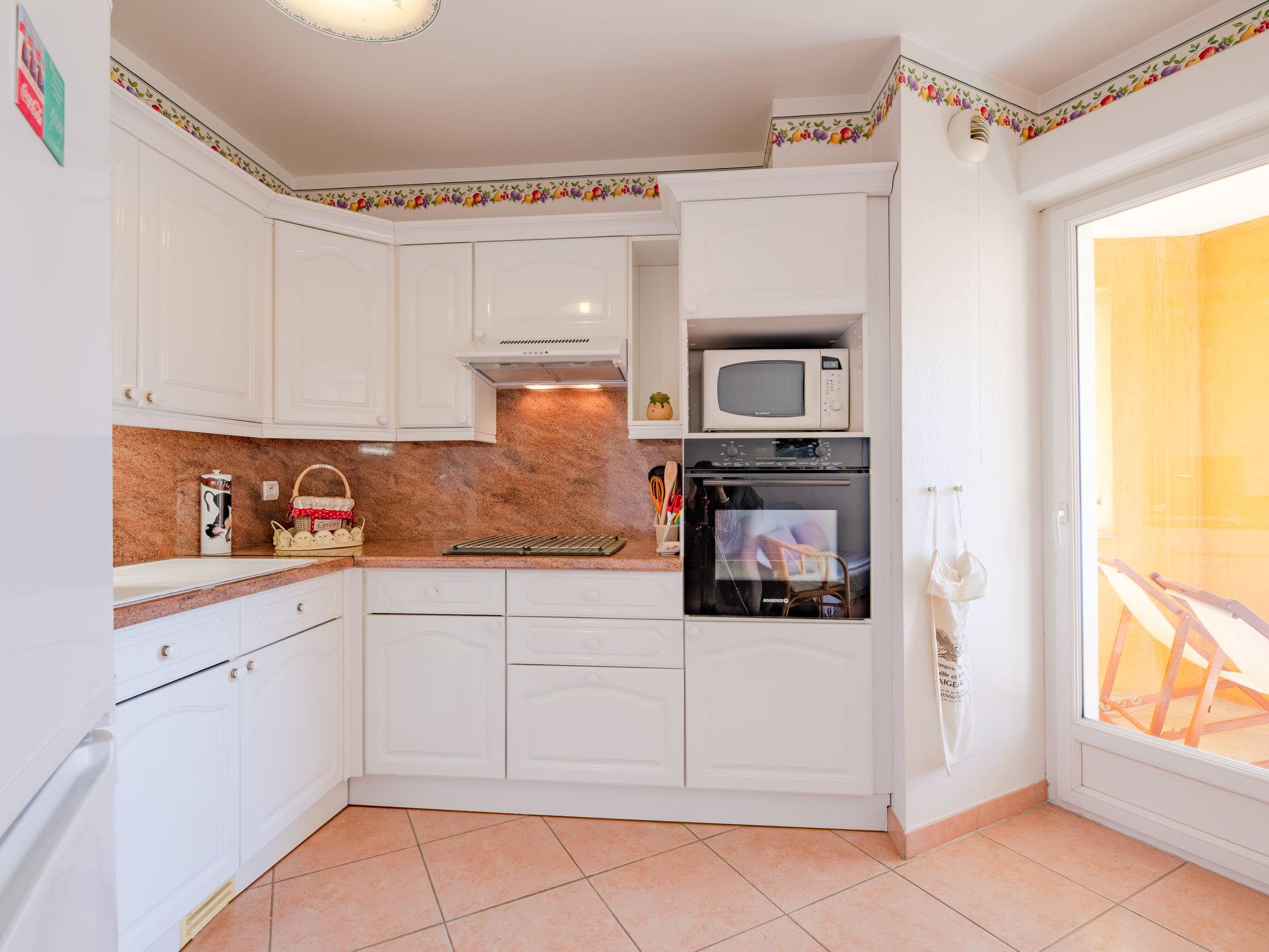3-room apartment 70 m2 on 3rd floor. Beautiful furnishings: living/dining room with TV (flat screen). Exit to the terrace. 1 room with 1 french bed (1 x 140 cm, length 190 cm). 1 room with 2 beds (80 cm, length 200 cm). Kitchen (oven, dishwasher, 4 ceramic glass hob hotplates, toaster, kettle, microwave, freezer, electric coffee machine). Bathroom, sep. WC. Electric heating. Balcony 10 m2, west facing position. Balcony furniture. View of the garden and the resort. Facilities: washing machine, iron. Internet (WiFi, free). Garage space n 9. Please note: apartment courtyard side. Non-smokers only. Maximum 1 small pet/ dog allowed. Smoke alarm. Offer by a private individual according to Art. 155, IV of CGI. 83115003627NH