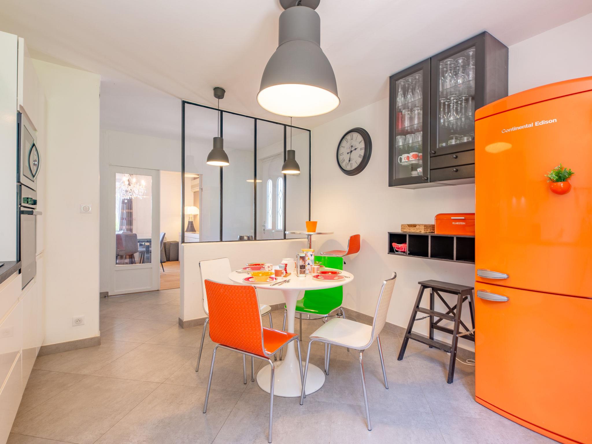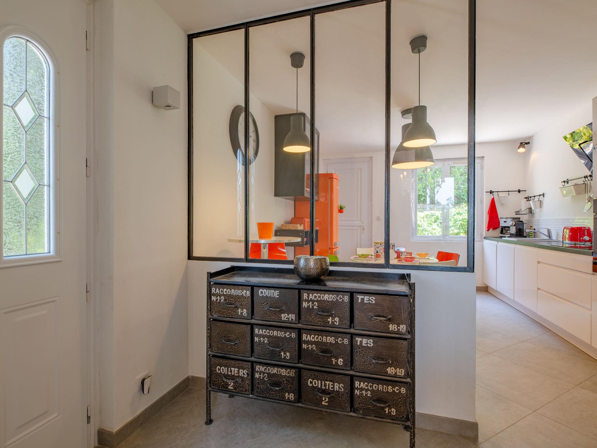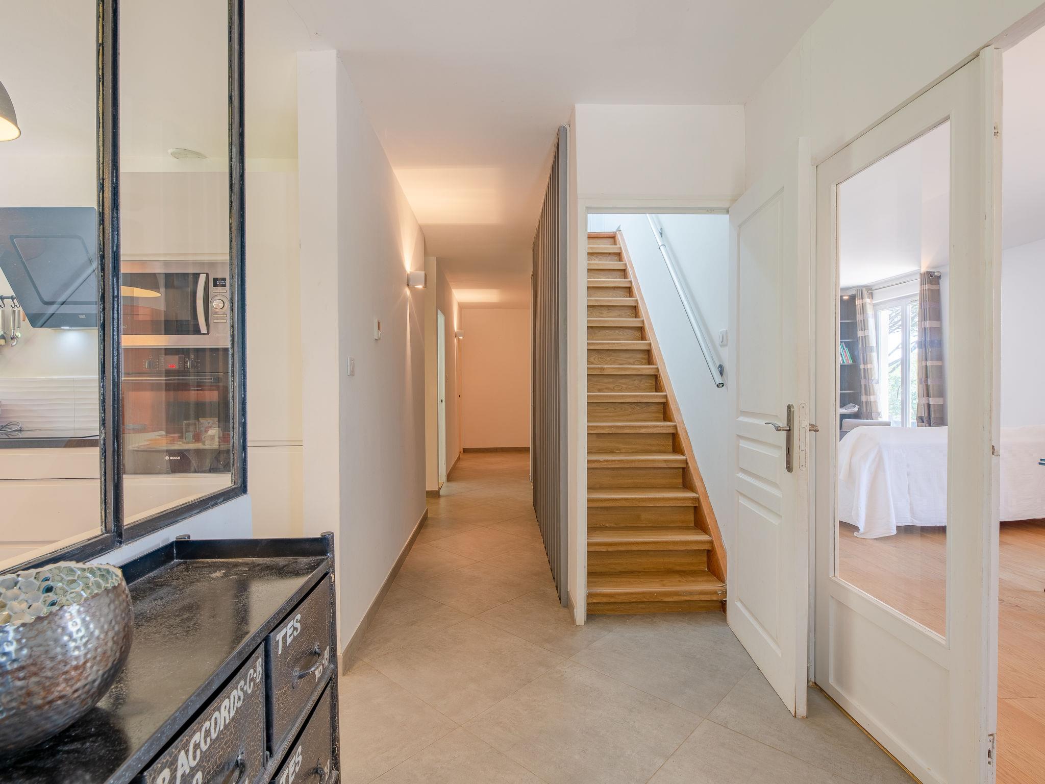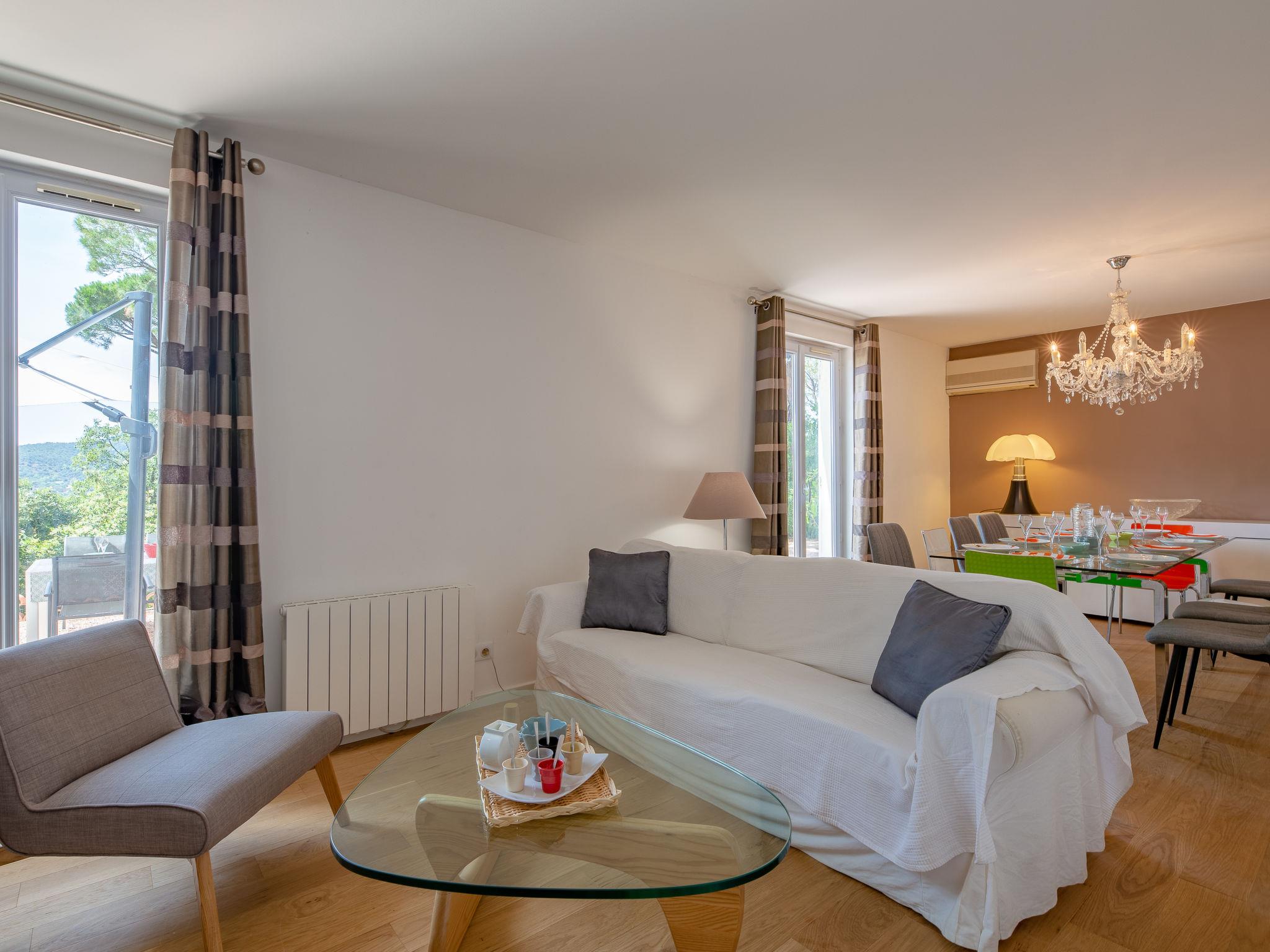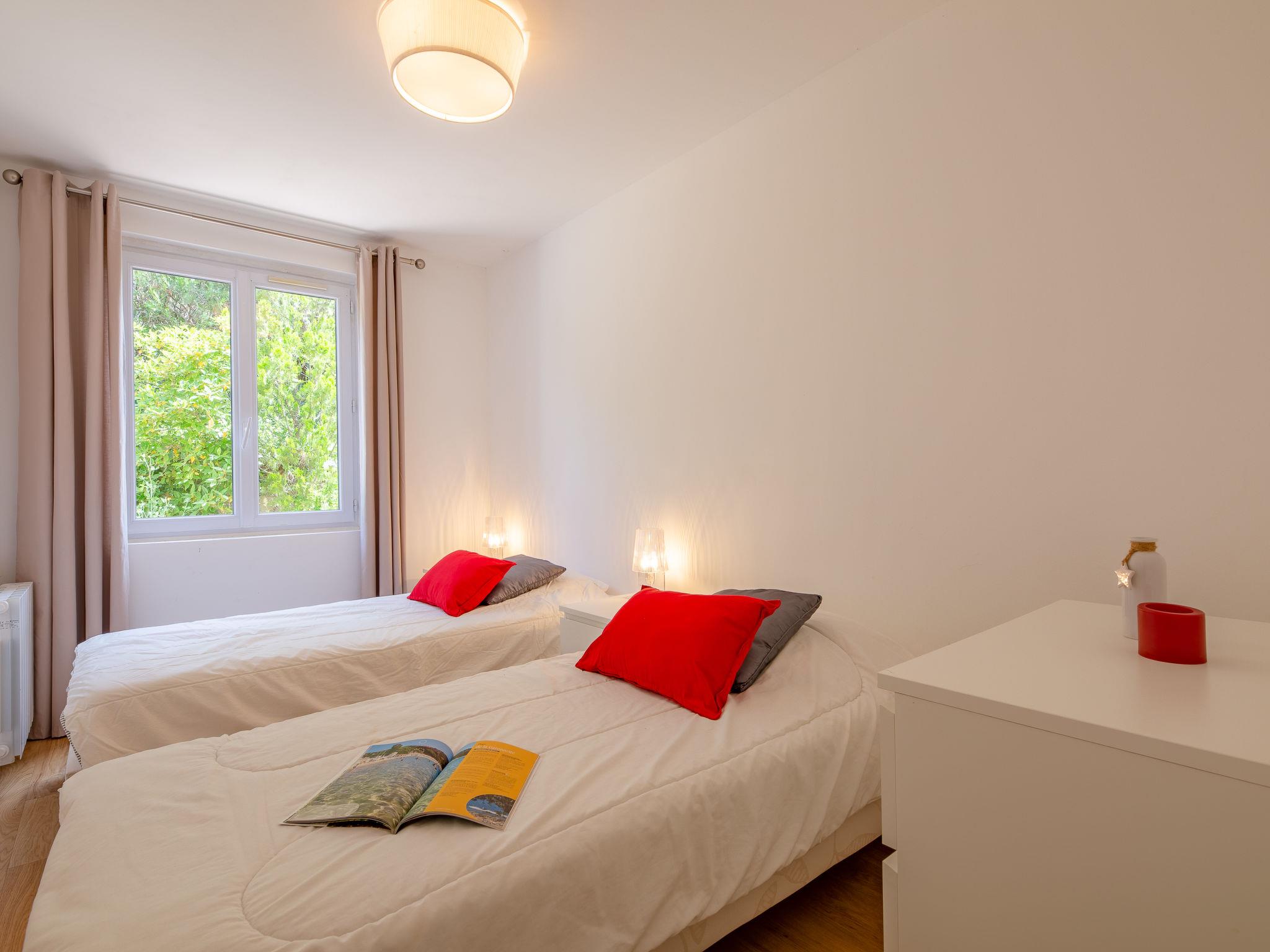 5-room villa 160 m2 on 2 levels, north-west facing position. Beautiful furnishings: entrance hall. Living/dining room 33 m2 with open-hearth fireplace (only for decoration), TV (flat screen), air conditioning. Exit to the garden. 1 room, east facing position with 1 french bed (1 x 160 cm, length 200 cm). 1 room, west facing position with 1 french bed (1 x 160 cm, length 200 cm), shower and air conditioning. Exit to the garden. 1 room, east facing position with 2 beds (90 cm, length 200 cm), air conditioning. Kitchen (oven, dishwasher, 3 induction hot plates, toaster, kettle, microwave, freezer, electric coffee machine). Bath/shower, sep. WC, double hand-basin. Electric heating. Upper floor: 1 room with 2 beds (90 cm, length 200 cm), air conditioning. Shower/WC. Large garden. Terrace furniture. View of the countryside. Facilities: washing machine, iron, hair dryer. Internet (WiFi, free). Parking (fenced 2 cars). Please note: non-smoking house. Smoke alarm. Offer by a commercial proprietor according to Art. 155, IV, CGI 83115003731WF