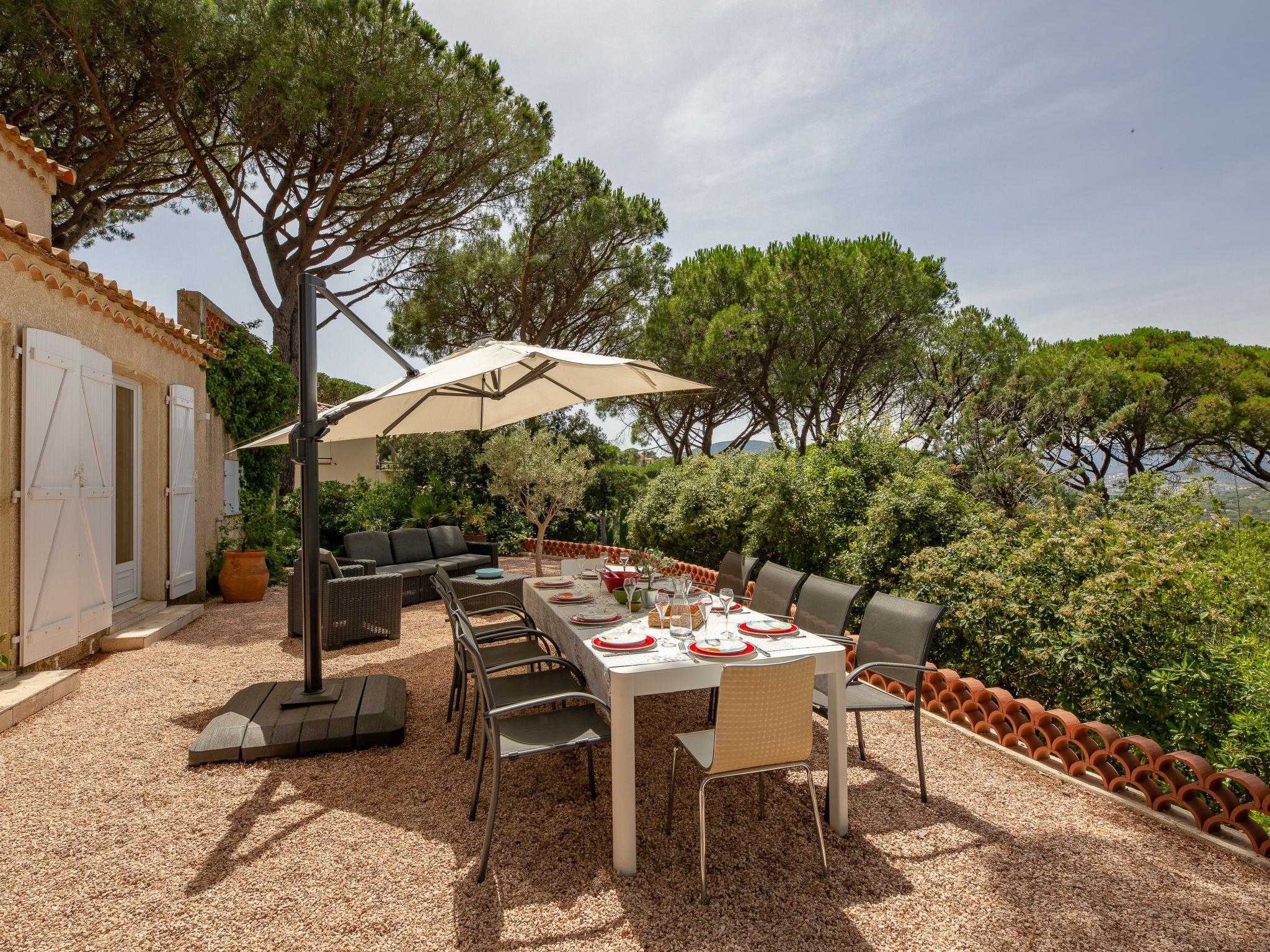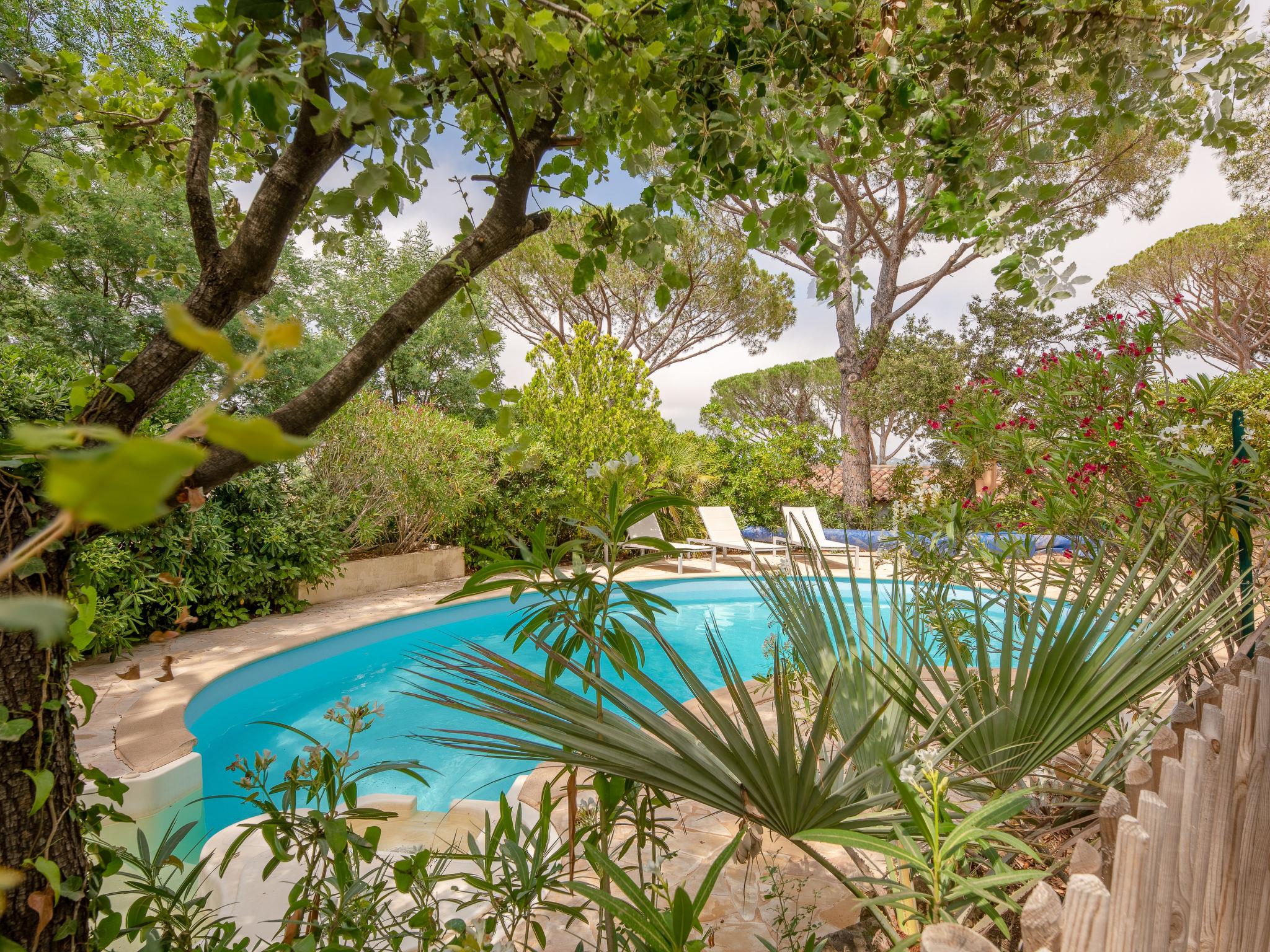 Comfortable single-family house "Riviera", surrounded by trees. In the district of Sémaphore, in the resort 1.5 km from the centre of Sainte Maxime, in a quiet position on a slope, in the residential district, 1 km from the sea, 1 km from the beach, north-west facing position. Private: property 1'700 m2 (fenced), beautiful garden to relax, swimming pool kidney shaped, fenced (9 x 4 m, depth 150 - 220 cm, seasonal availability: 01.Jun. - 30.Sep.) with internal staircase. Parking (for 2 cars). Grocery 1.8 km, supermarket 2 km, restaurant 2 km, 30 minute walk to the centre, bus stop 1.2 km, sandy beach "La Madrague" 1 km (small), thermal baths "Thalasso Spa des Issambres" 5.5 km. Sports harbour 2.2 km, golf course (18 hole) 4 km, tennis 1.5 km. Nearby attractions: Aqualand waterpark 5 km, Navette / shuttle boat St-Tropez 15min 2.2 km, Saint-Tropez/Ramatuelle 17 km, Port-Grimaud 14 km, Gorges du Verdon 80 km. Hiking paths: Massif des Maures 5 km, Massif de l'Esterel 25 km. Please note: car recommended. The owner does not accept any youth groups.