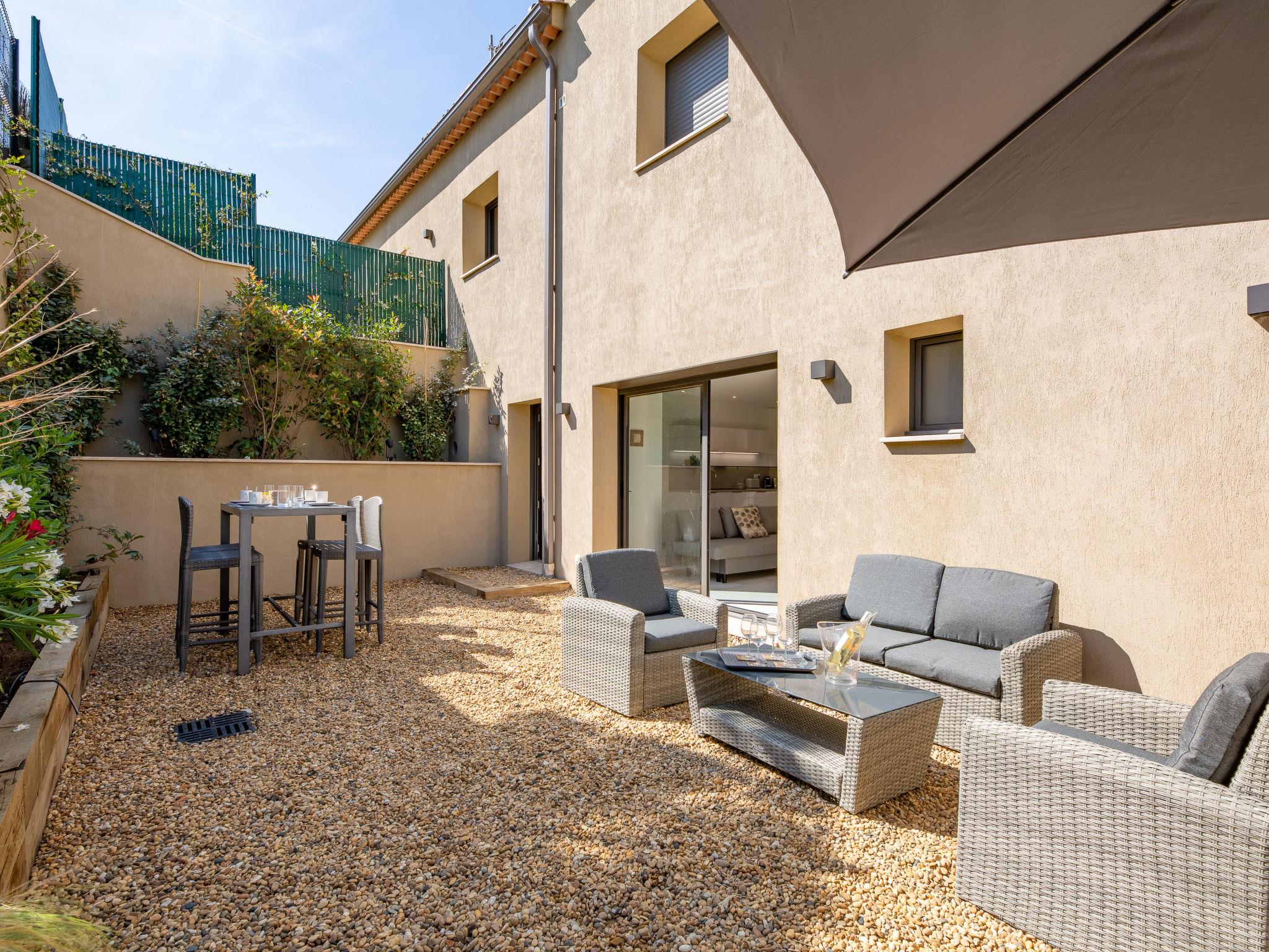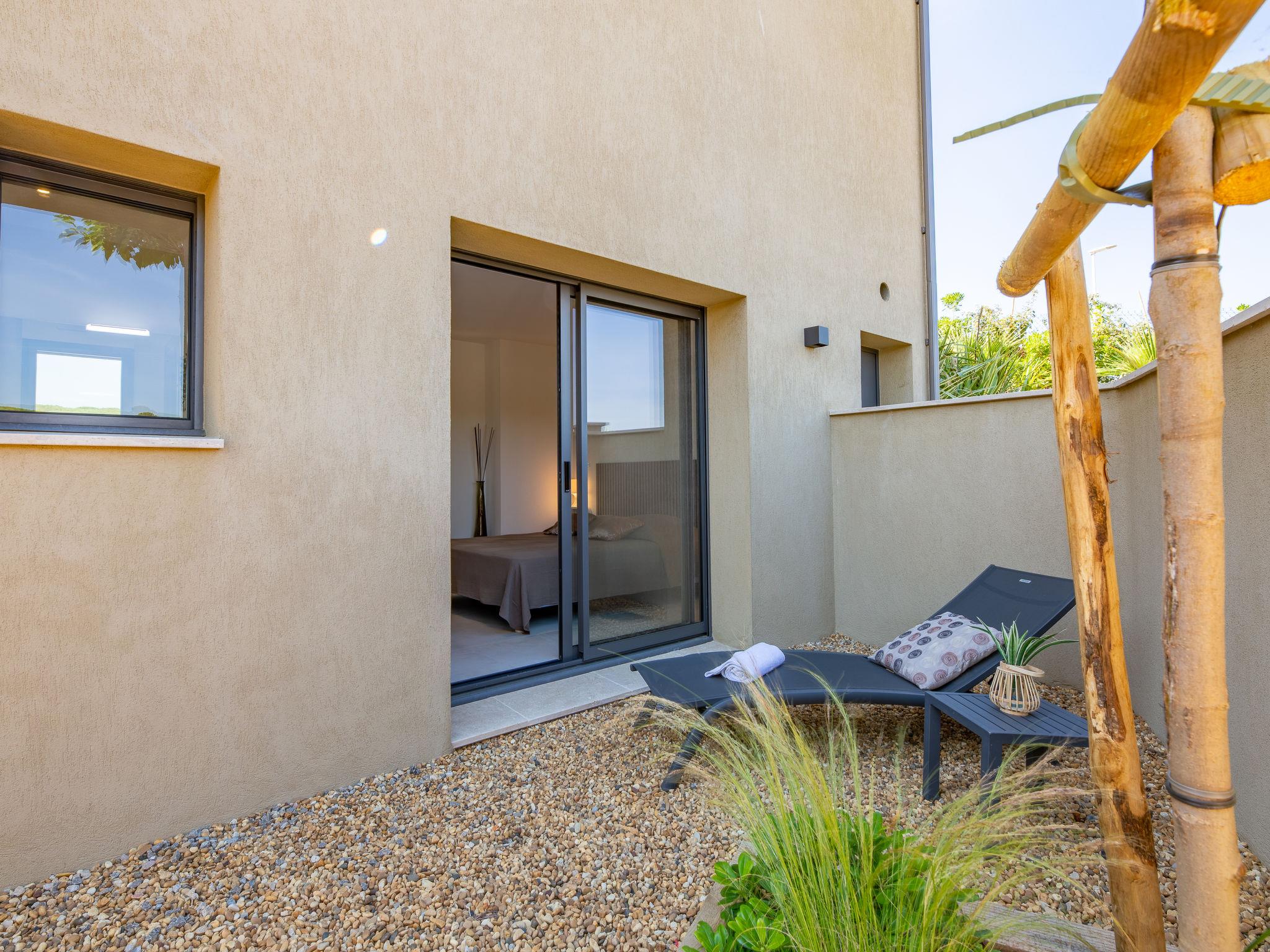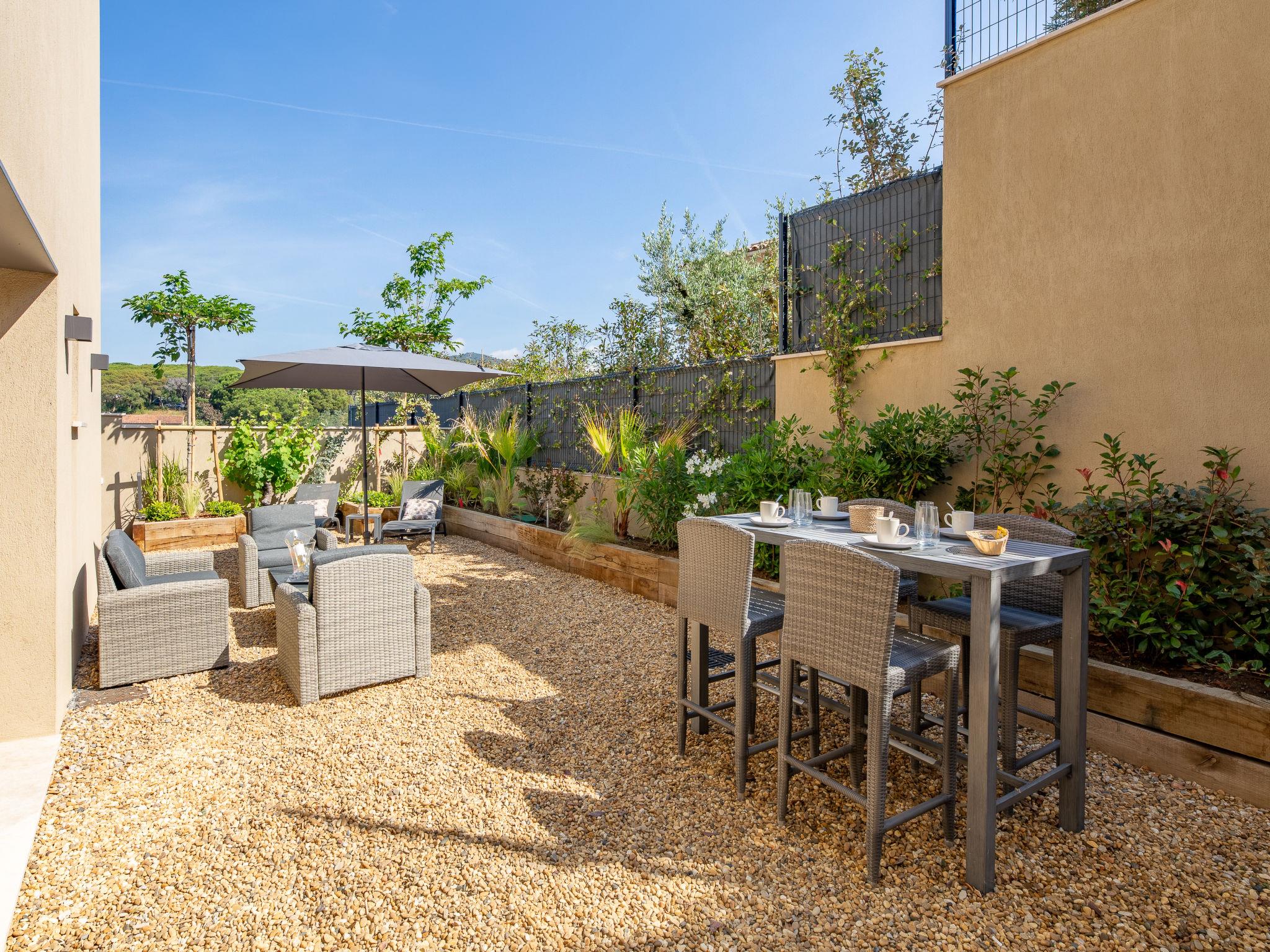 Modern semi-detached house "Akemi", renovated in 2024. In the district of Bouillonnet, on the outskirts, 800 m from the centre of Sainte-Maxime, in a quiet position in the residential district, 1.3 km from the sea, 1.3 km from the beach, in a cul-de-sac. Private: well-kept garden (fenced) wildlife garden and trees. Grocery 1 km, restaurant 1.2 km, 12 minute walk to the centre, bus stop 550 m, sandy beach "centre" 1.3 km, thermal baths "Thalasso Spa des Issambres" 7 km. Sports harbour 1.5 km, golf course (18 hole) 5 km, tennis 3 km. Nearby attractions: Aqualand water parc 3 km, Navette / shuttle boat St-Tropez 15min 2 km, Port Grimaud 12 km, St Tropez / Ramatuelle 16 km, Gorges du Verdon 80 km. Hiking paths: Massif des Maures 1 km, Massif de l'Esterel 20 km. Please note: the keys‘ handover takes place by the agency Interhome in Sainte Maxime, 2 km. Property ref. FR8480.338.1 is situated on the same property.