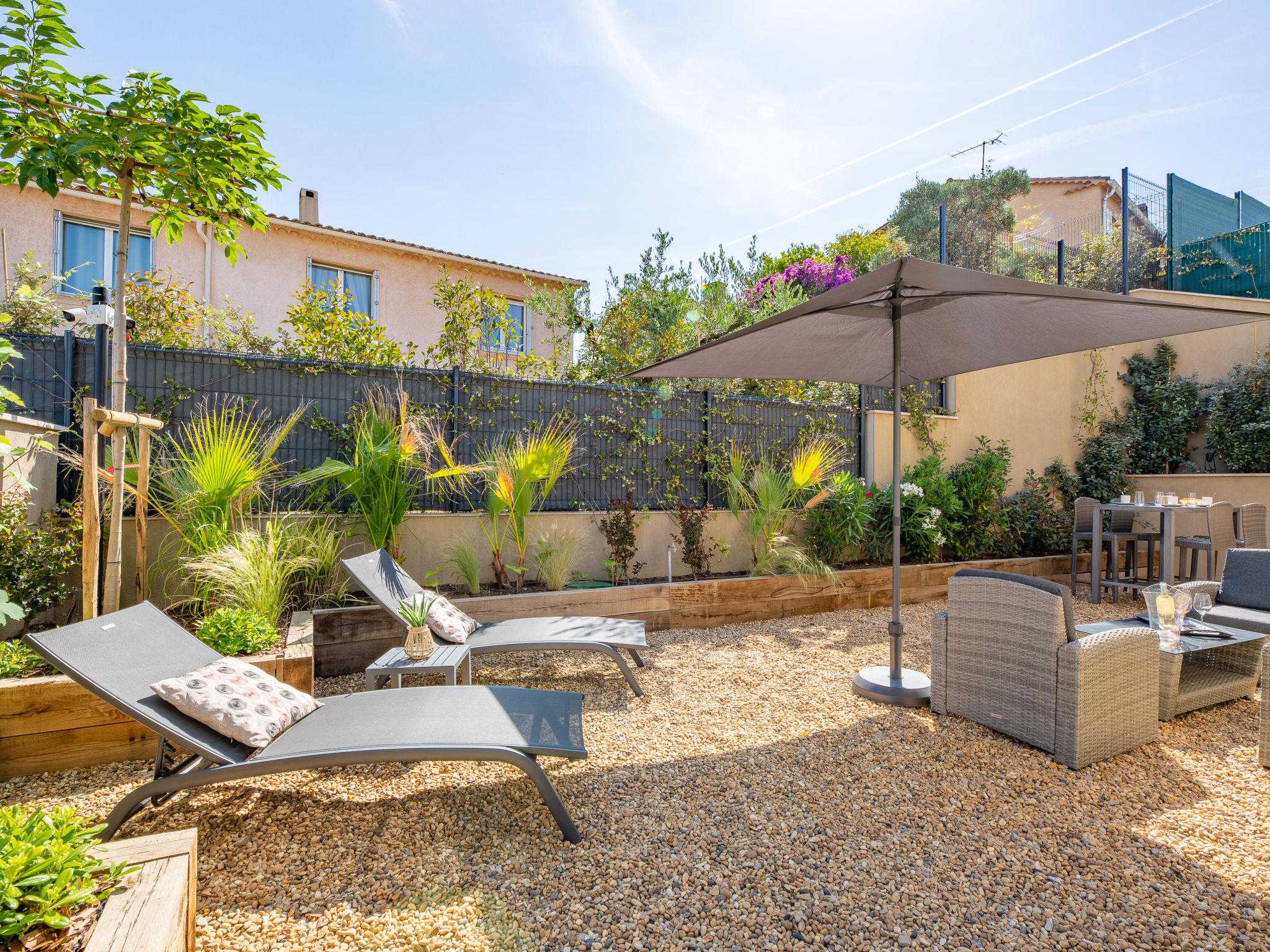"Kaori", 2-room apartment 47 m2, on the ground floor, east facing position. Spacious, fully renovated in 2024, beautiful and modern furnishings: living/dining room with 1 double sofabed (1 x 140 cm, length 190 cm), TV (flat screen). Exit to the garden. 1 room with 1 french bed (1 x 160 cm, length 200 cm). Exit to the patio. Open kitchen (oven, dishwasher, 3 induction hot plates, toaster, kettle, microwave, freezer, electric coffee machine). Shower, sep. WC, double hand-basin. Air-conditioning, forced-air heating. Garden 80 m2, east facing position. Terrace furniture. Facilities: washing machine, iron, hair dryer. Internet (WiFi, free). Parking. Please note: non-smokers only. Smoke alarm. Offer by a commercial proprietor according to Art. 155, IV, CGI 83115005176SB