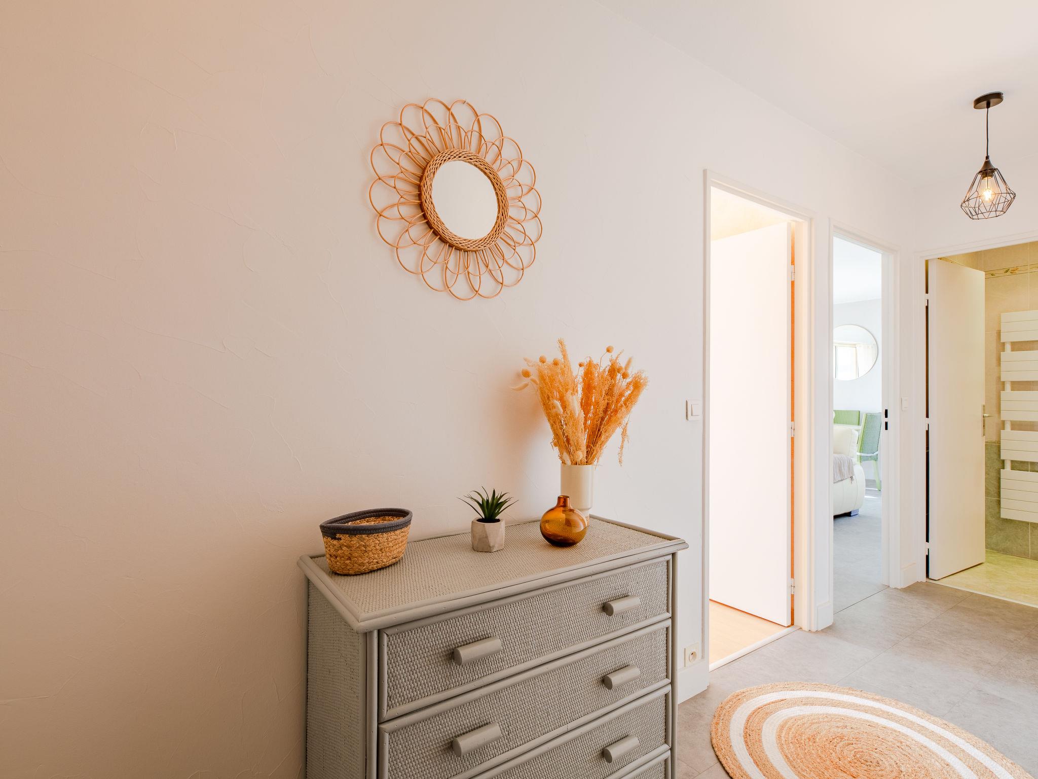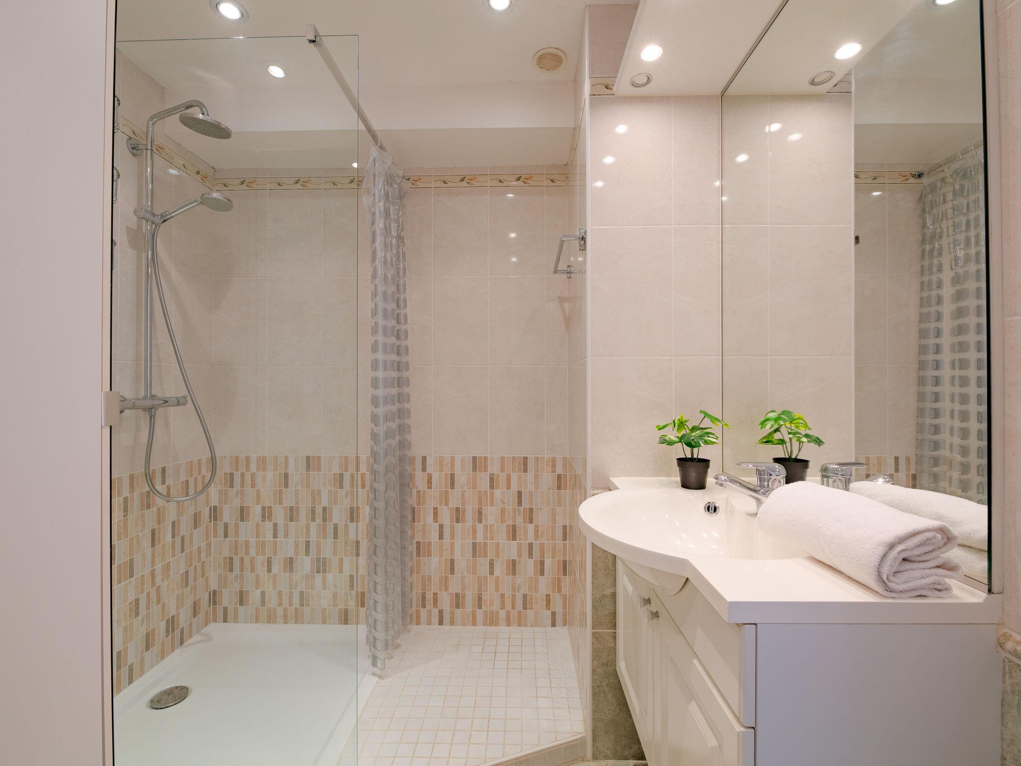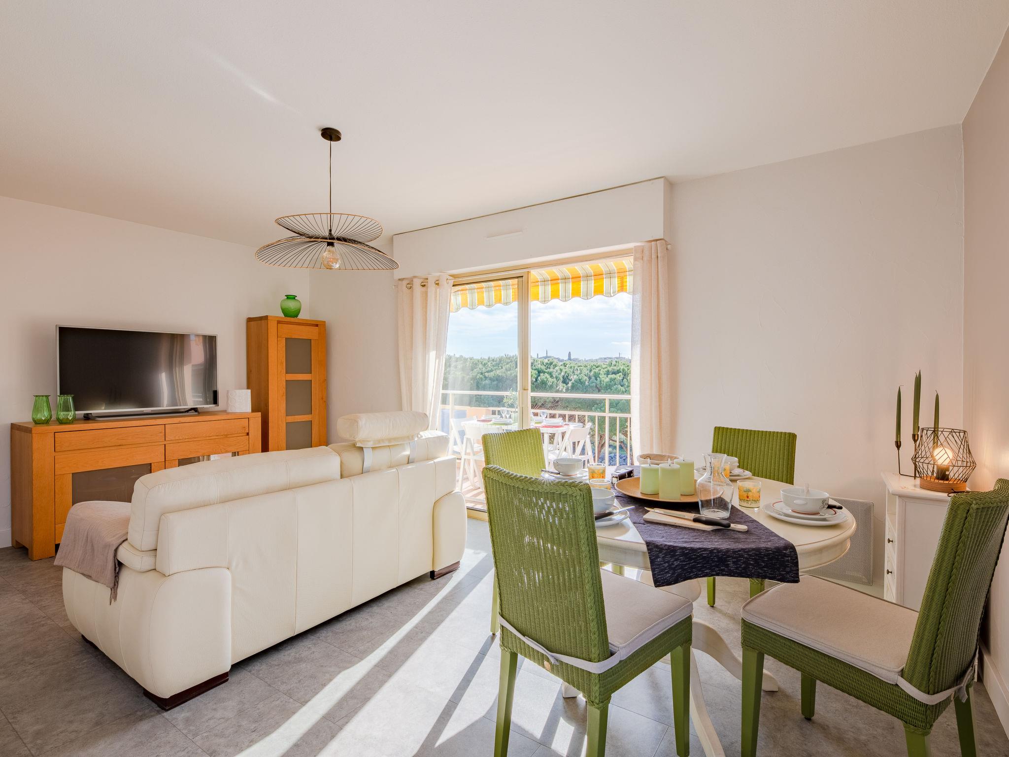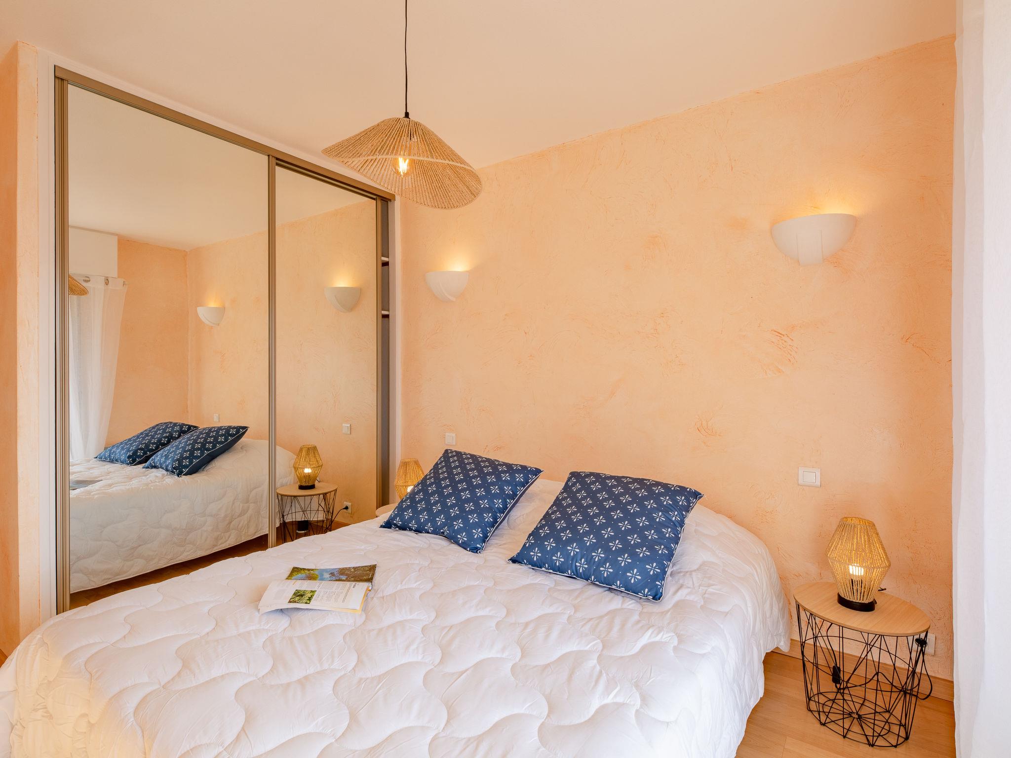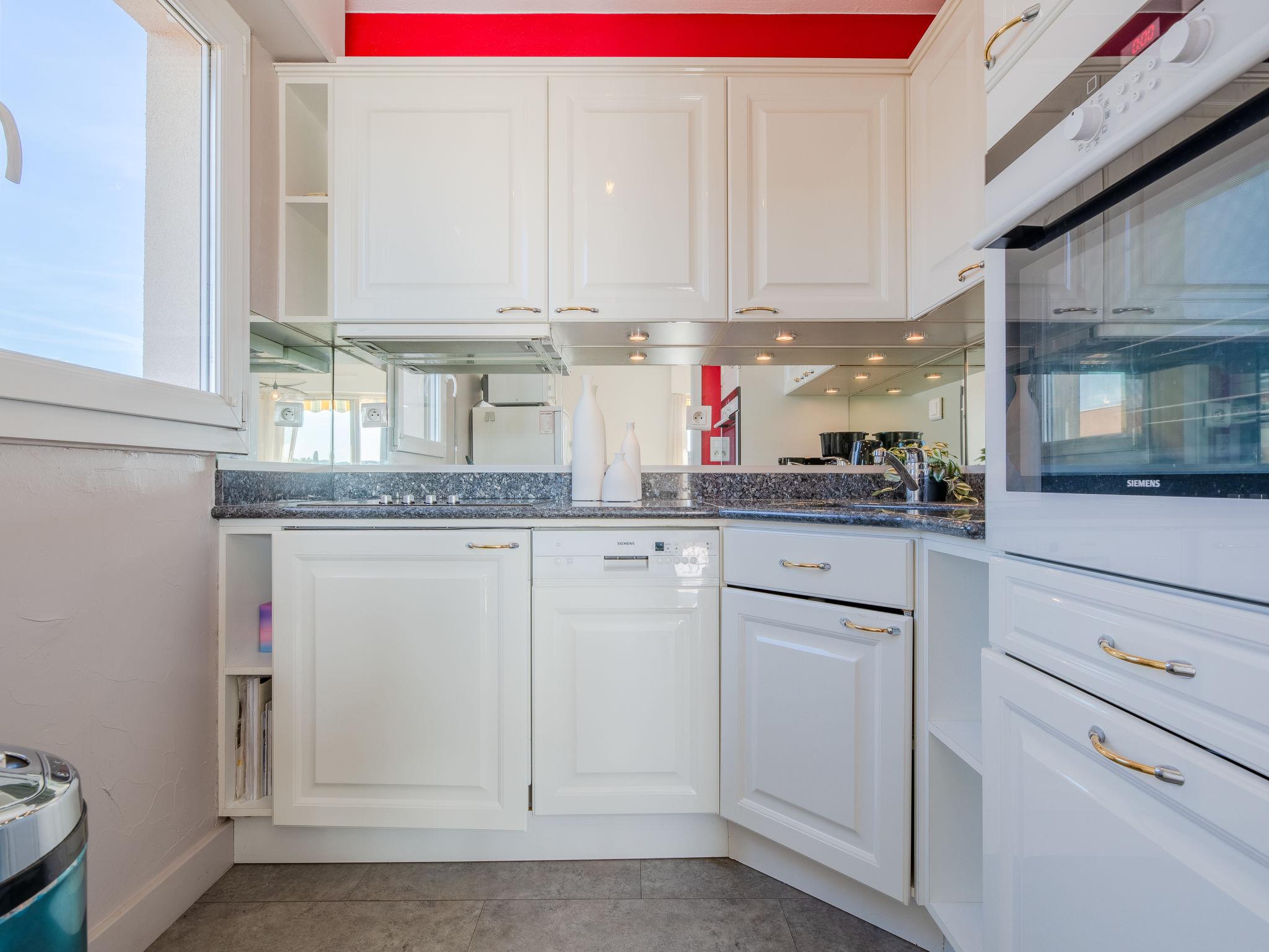 2-room apartment 50 m2 on 4th floor, south-west facing position. Beautiful and modern furnishings: living/dining room, window onto the courtyard with 1 sofabed (140 cm, length 190 cm), TV (flat screen), electric shutters. Exit to the balcony. 1 room with Dressing room south facing position with 1 double bed (160 cm, length 200 cm), electric shutters. Kitchenette (oven, dishwasher, 4 induction hot plates, toaster, kettle, microwave, freezer, electric coffee machine). Shower, sep. WC. Air-conditioning. Balcony, south facing position and west facing position. Balcony furniture. Side view of the sea. Facilities: washing machine, dryer, iron. Internet (WiFi, extra). Parking space n 127 (roofed). Please note: non-smokers only. Smoke alarm. Accommodation not suitable for PRM People with reduced mobility. Offer by a private individual according to Art. 155, IV of CGI. 83115005035DZ