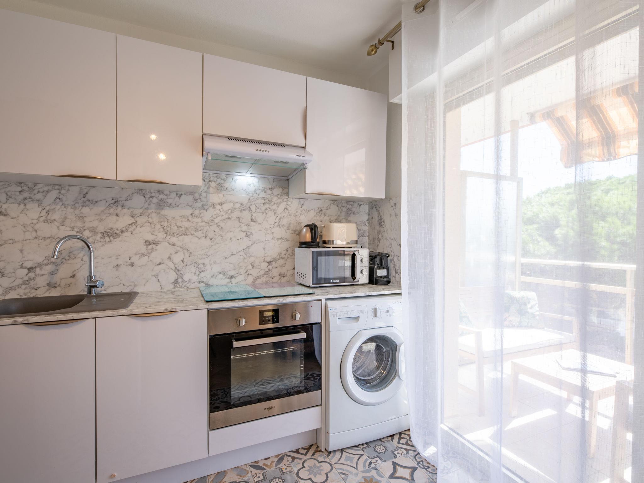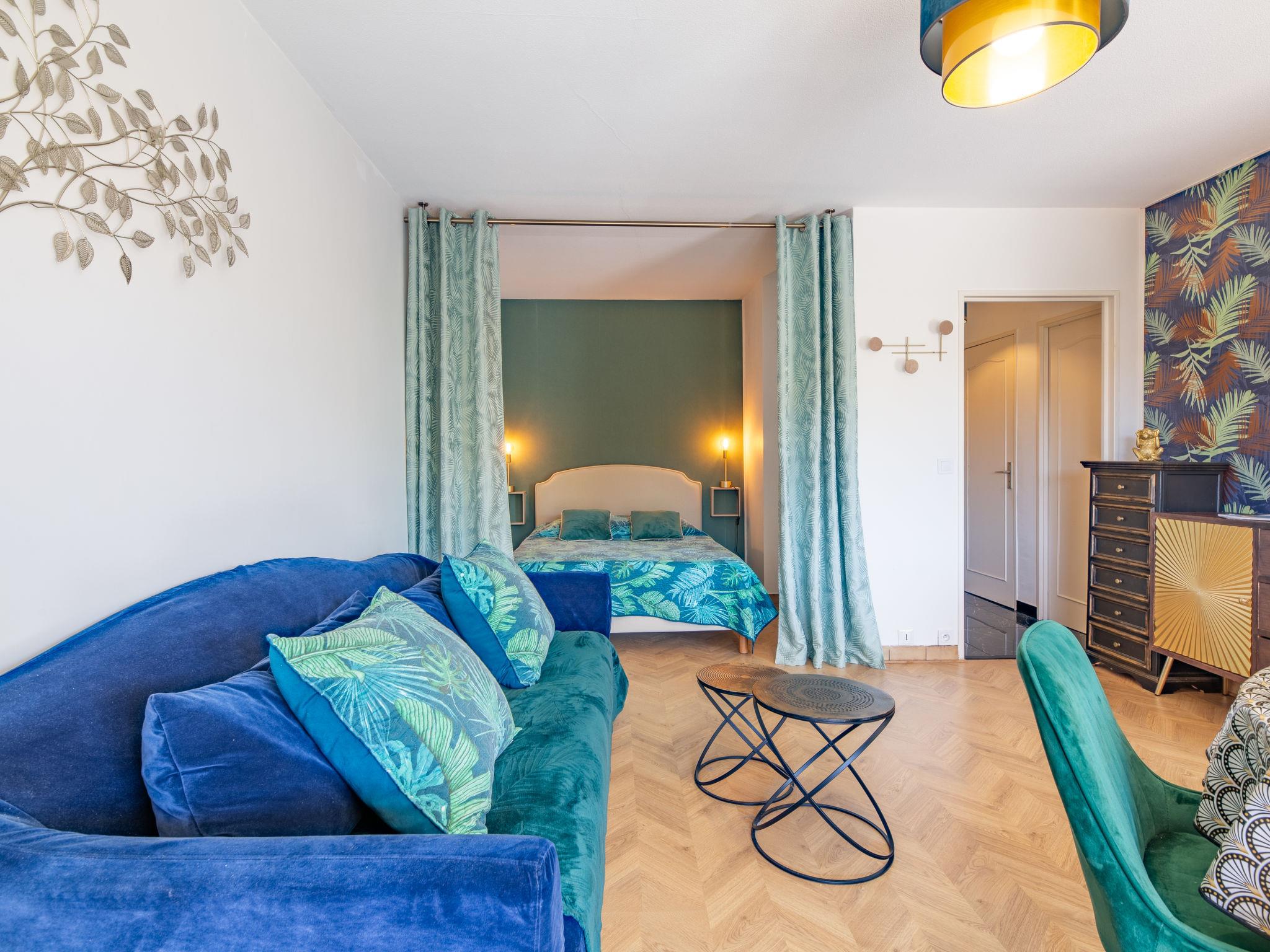 1-room studio 34 m2 on 3rd floor, west facing position. Spacious, comfortable and beautiful furnishings: entrance hall with separate WC. Living/sleeping room with 1 double sofabed (160 cm, length 200 cm), TV (flat screen). Exit to the balcony. Sleeping alcove with 1 french bed (140 cm, length 190 cm). Open kitchen (dishwasher, 3 induction hot plates, toaster, kettle, freezer, electric coffee machine, combination microwave). Bathroom. Air-conditioning, forced-air heating. Large balcony 12 m2, west facing position. Balcony furniture. View of the swimming pool and the river. Facilities: washing machine. Garage space n 136, height 205 cm, width 215 cm. Please note: non-smokers only. Smoke alarm. Offer by a private individual according to Art. 155, IV of CGI. 83115003806HT