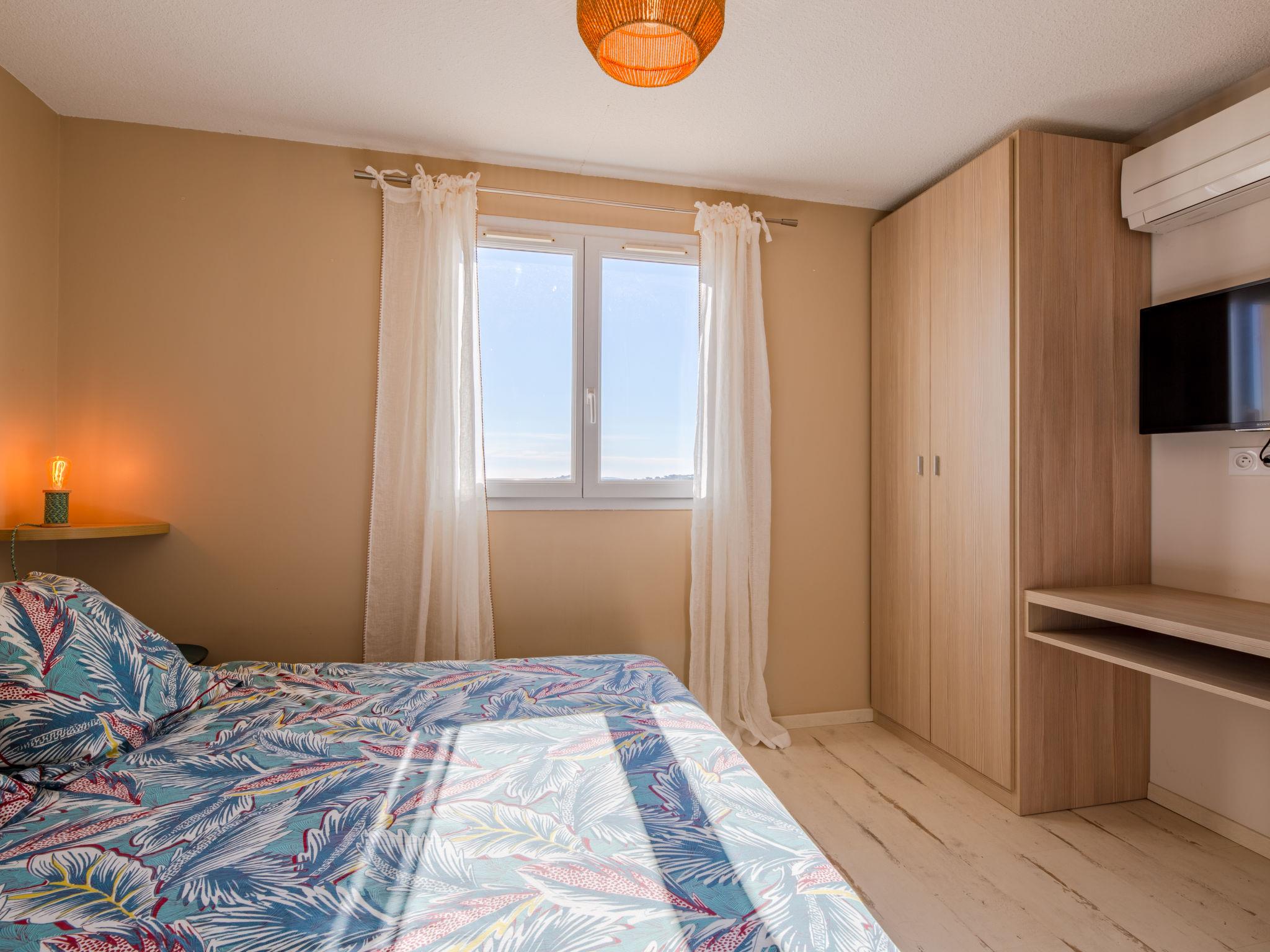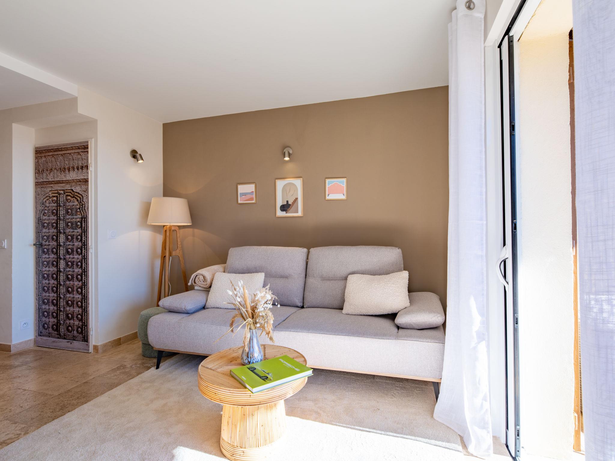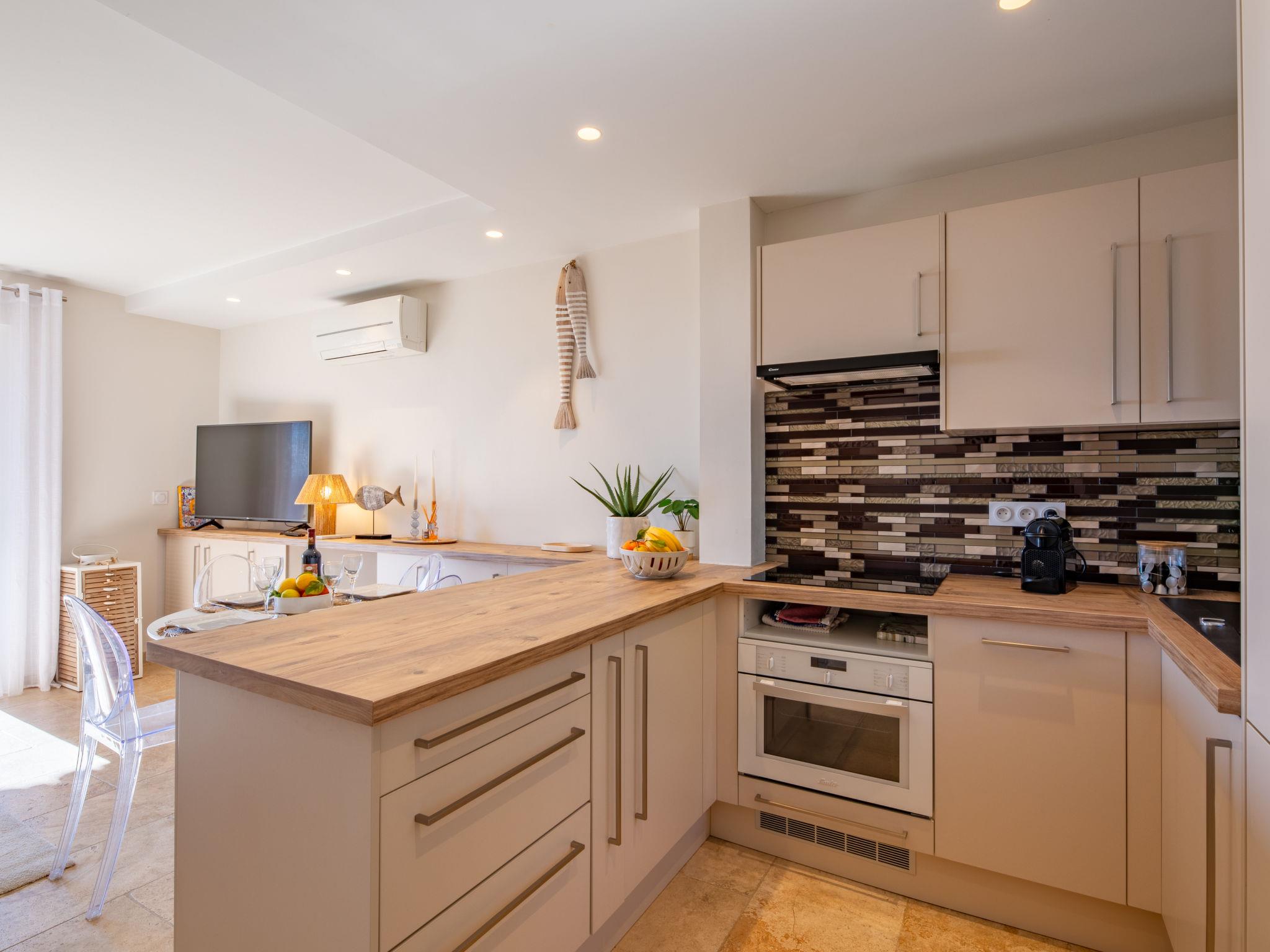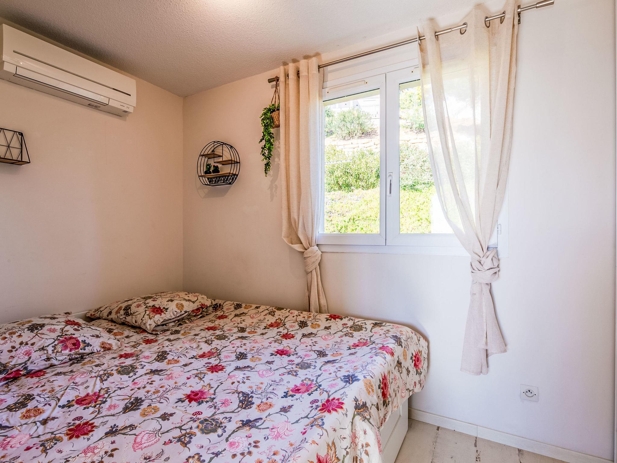 "Le Bougainvillier", 3-room terraced house 48 m2 on 2 levels, south facing position. Object suitable for 2 adults + 2 children. Renovated in 2024, modern and tasteful furnishings: living/dining room 22 m2 with veranda with TV (flat screen), air conditioning. Exit to the loggia. Open kitchen (oven, dishwasher, 4 ceramic glass hob hotplates, toaster, kettle, microwave, freezer, electric coffee machine). Upper floor: 1 room 10 m2 with 1 french bed (1 x 160 cm, length 200 cm). 1 room 7 m2 with 1 pull-out bed (2 pers. 2 x 80 cm, length 200 cm), air conditioning. Shower, sep. WC. Heating, air-conditioning. Balcony furniture, electric barbecue, covered balcony. Distant view of the sea and golf course. Facilities: washing machine. Internet (WiFi, free). Garage (1 car). Please note: non-smoking house. Smoke alarm. Offer by a commercial proprietor according to Art. 155, IV, CGI 83115005475MX