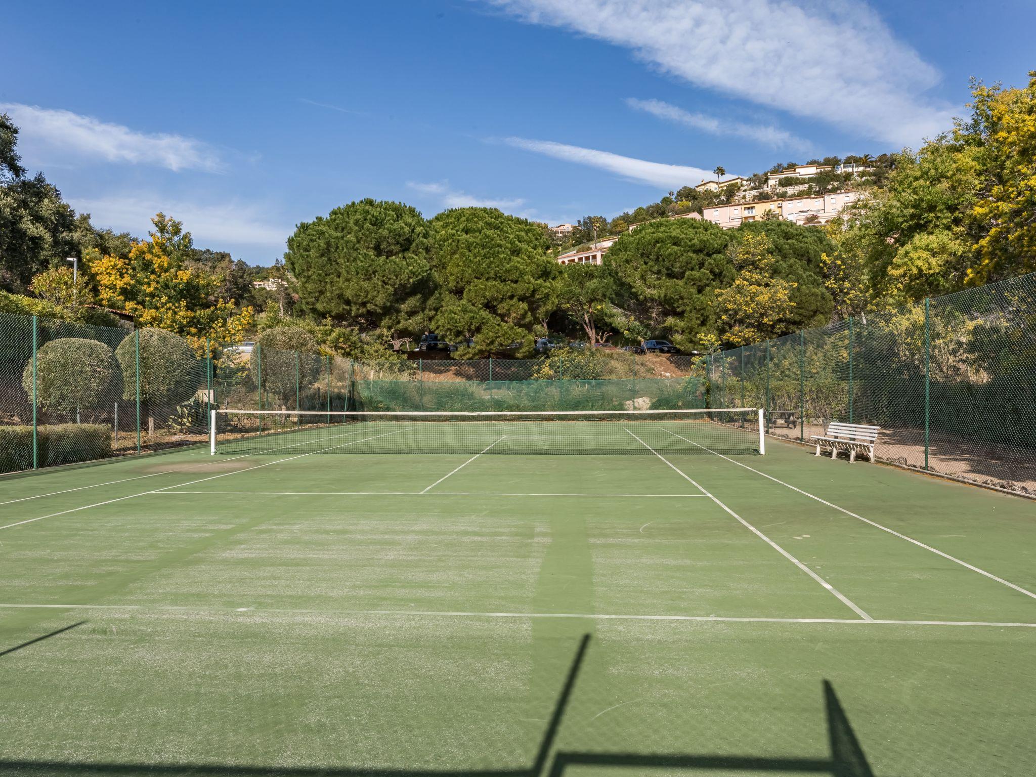 Terraced house "Le Bougainvillier". 35 houses in the residence. In the district of Golf de Sainte-Maxime, on the outskirts, 4 km from the centre, in a quiet position on top of a hill, in the residential district, 3 km from the sea, 3 km from the beach, in a cul-de-sac, on the golf course, south facing position. For shared use: swimming pool fenced (depth 110 - 175 cm, seasonal availability: 01.Jun. - 30.Sep.). Tennis, boccia, public parking 350 m on the road. Grocery 2 km, supermarket 4 km, restaurant 3 km, bus stop 3 km, railway station "TGV Saint-Raphael" 23 km, sandy beach "La Nartelle" 3 km, thermal baths "Thalasso les Issambres" 7 km. Sports harbour 4 km, golf course (18 hole) 100 m, tennis 50 m. Nearby attractions: Golf de Sainte Maxime 100 m, Saint-Tropez Ramatuelle 18 km, Port-Grimaud 15 km, Gorges du Verdon 75 km, Navette / shuttle boat St-Tropez 15min 4 km. Hiking paths: Massif des Maures 5 km, Massif de l'Esterel 23 km. Please note: car recommended. Residence with electric gates. Airfield 80 km from the property. Property ref. FR8480.212.1 is situated on the same property.