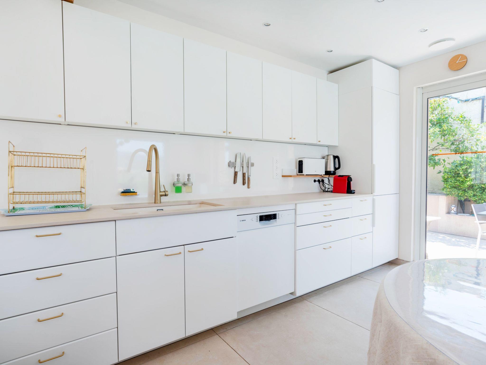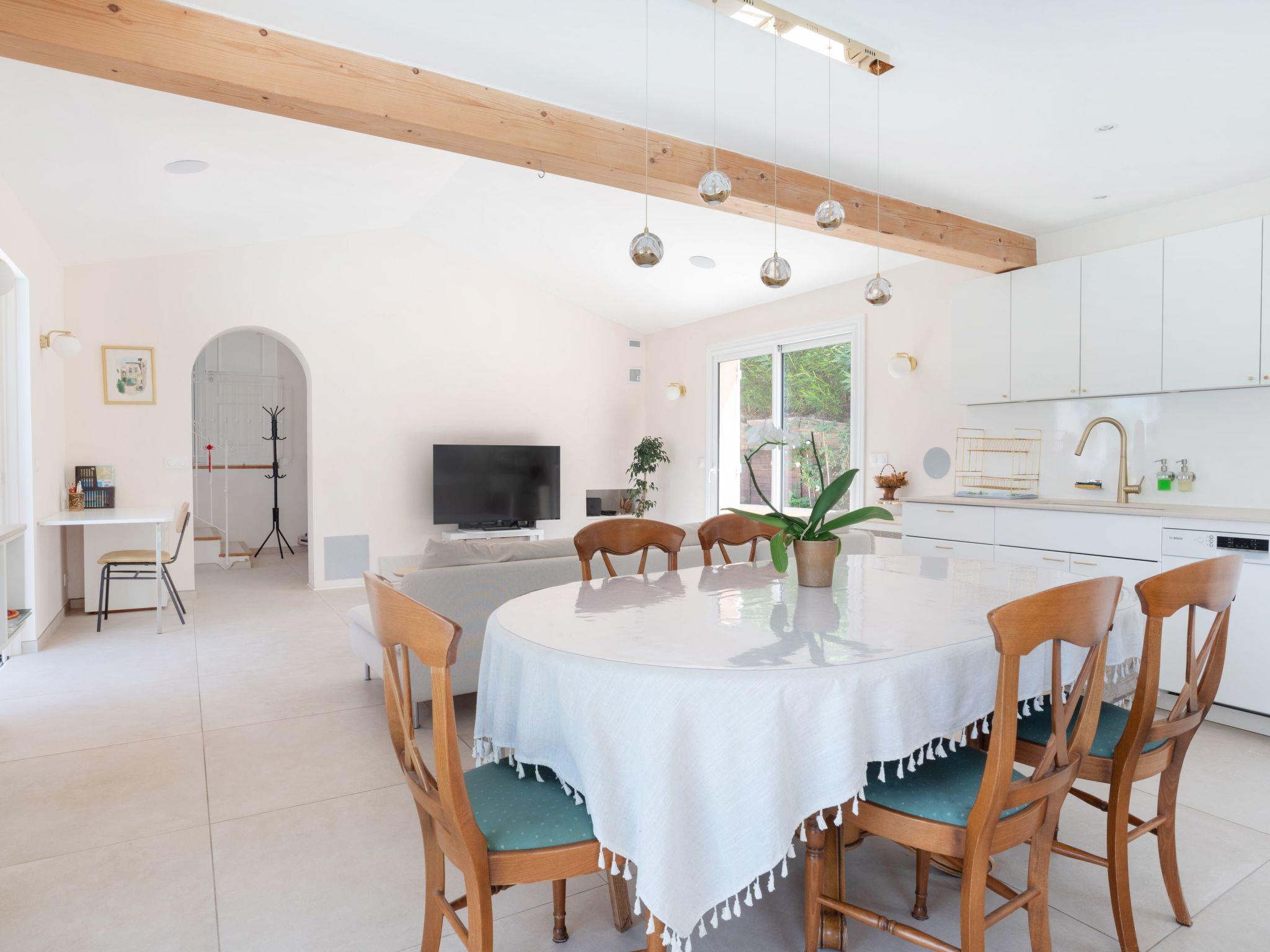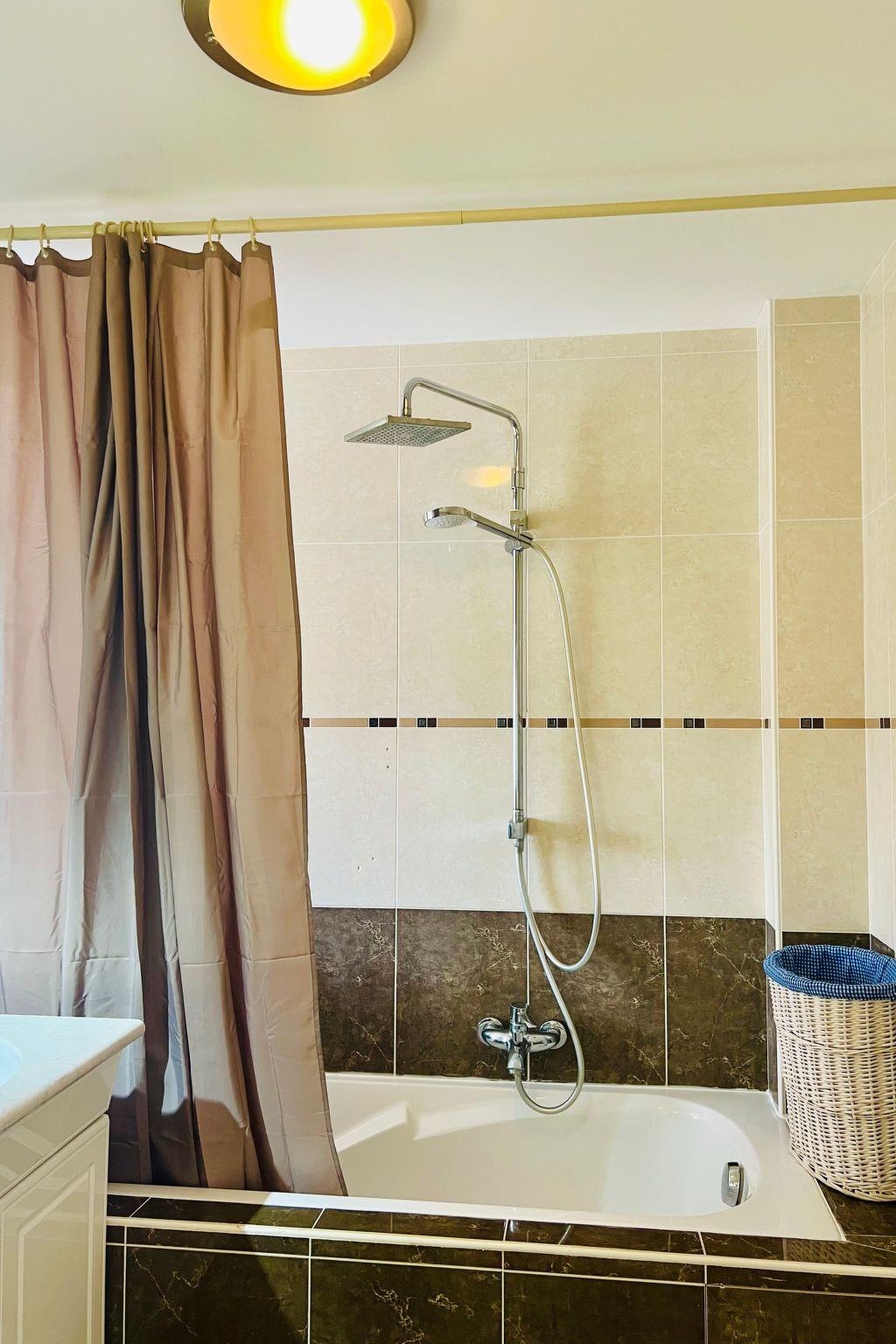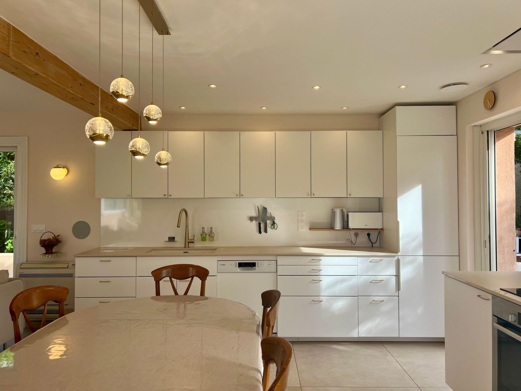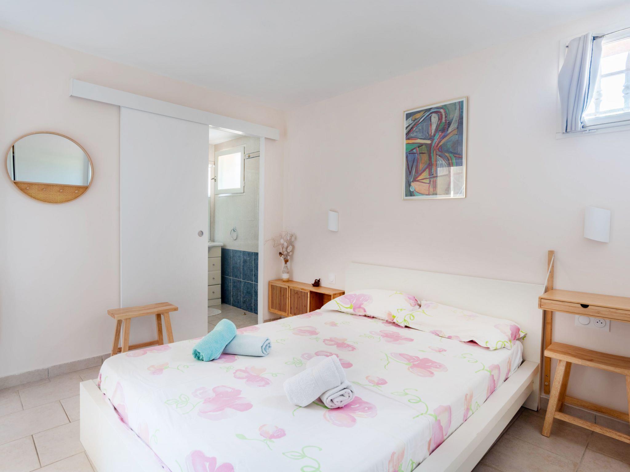 This charming villa for two to six people, with its private swimming pool in an enclosed flower garden, has a first bedroom adjoining the bathroom with a bathtub and shower cubicle, furnished with a washbasin and mirror. ATTENTION: we do not wish to rent the villa to families with small children who cannot swim! The second bedroom adjoins a large bathroom with bathtub and is furnished with two washbasins and two mirrors. The third bedroom adjoins the shower room and also has a vanity unit with washbasin and mirror. There are also three WCs, a lounge with a 46-inch Led flat-screen TV, a dining room, a separate kitchen equipped with induction cooker, oven, microwave, Senseo coffee machine in capsule, dishwasher; a laundry room with washing machine, internet connection.
