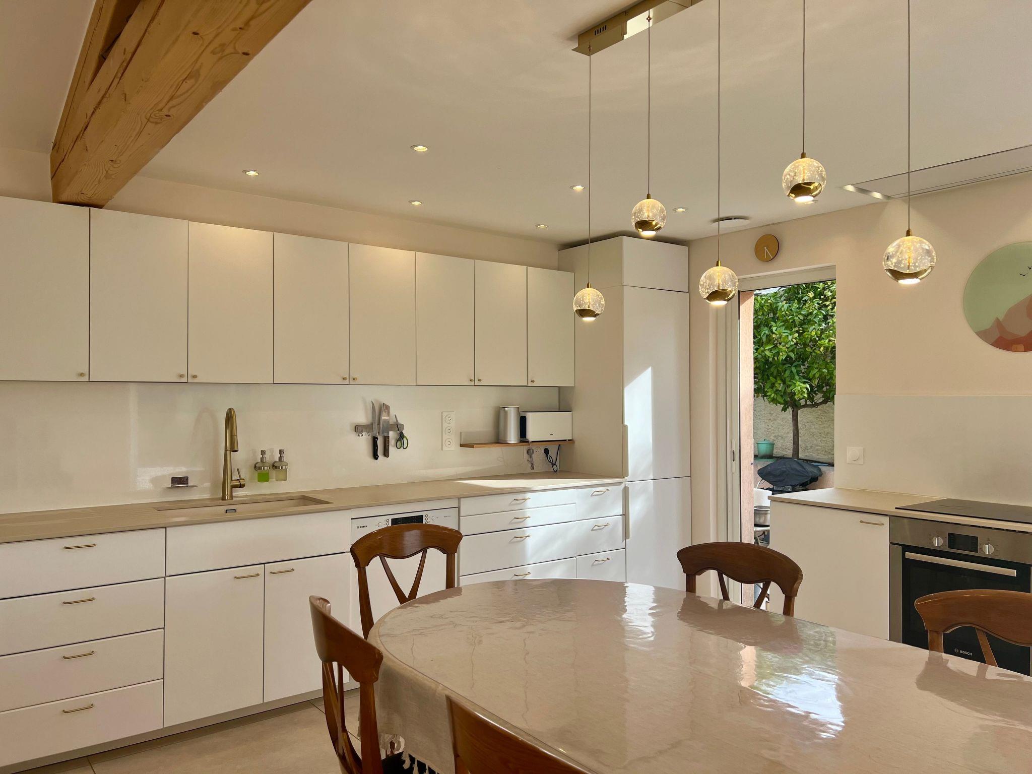 Outside you will find shaded pergolas, terraces with garden furniture and a teak table for eight people, a round wrought iron table for five people, five sun loungers, barbecue, ping pong table... The grounds are fenced and therefore suitable for children and dogs.