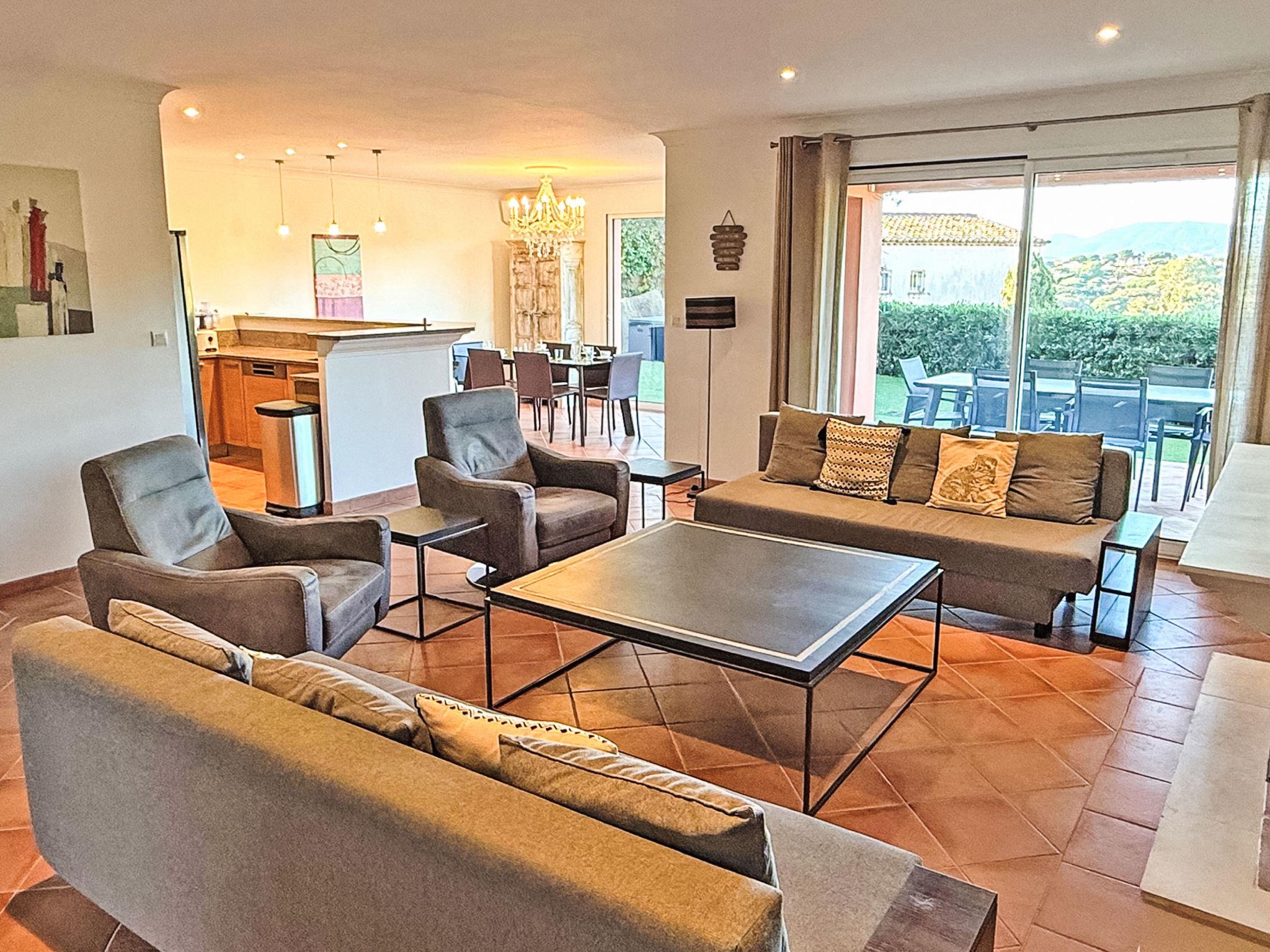 - Air-conditioned living/dining room with sofas including 1 sofa bed (140cm), flat-screen TV, decorative fireplace, dining area and direct access to the terrace