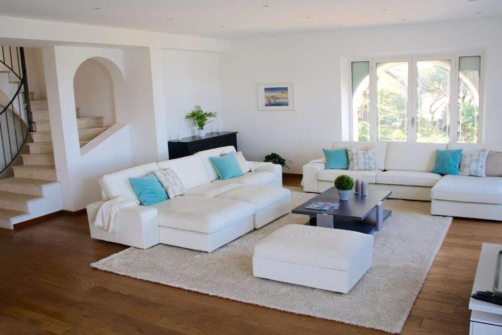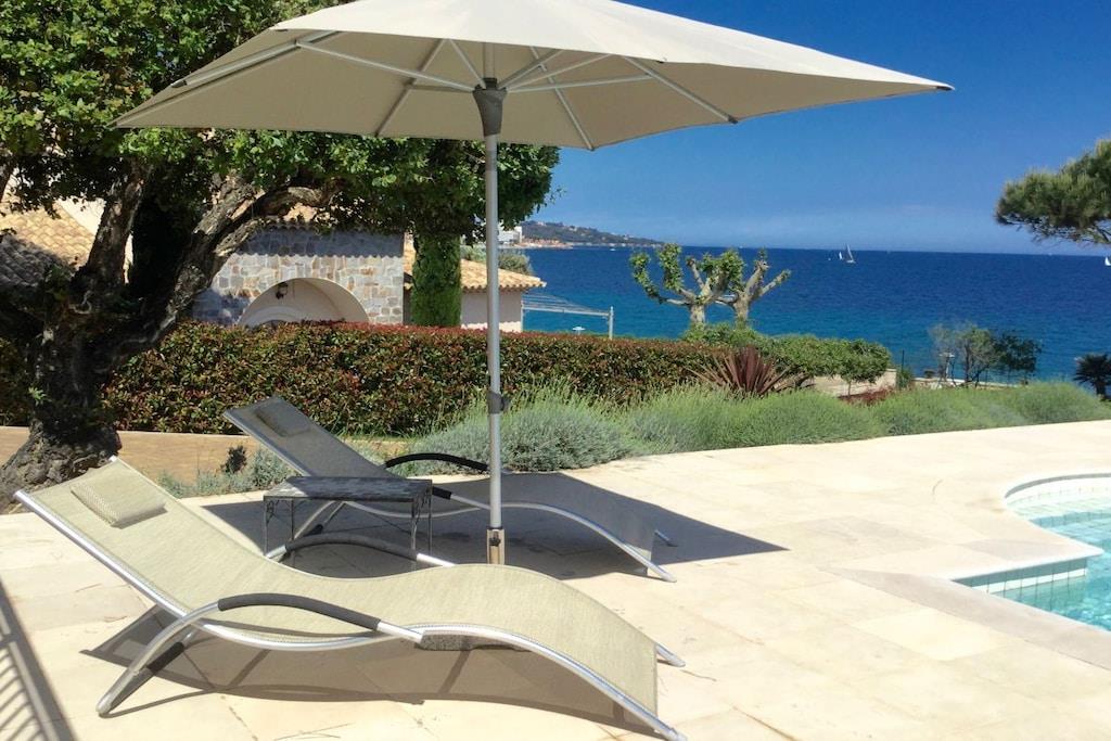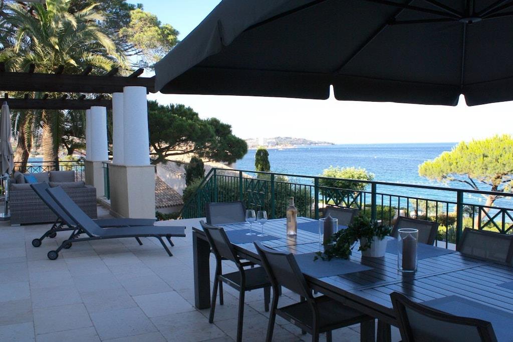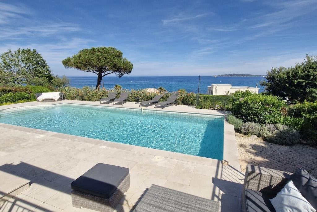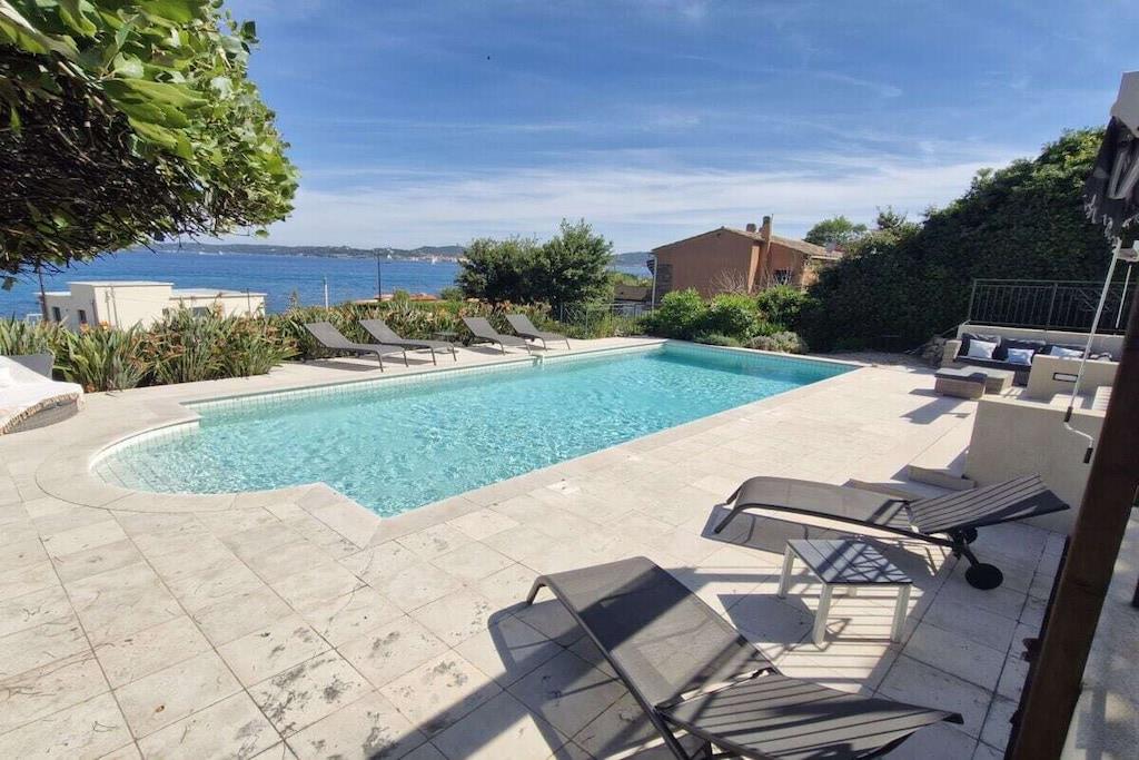 Beautiful, detached villa with an additional apartment and a great outdoor area with a pool and magnificent sea views! The living area is 240 m² and the garden is 2000 m². The villa is suitable for 10/12 people and is south-facing. Villa Lou Paradou features a living room with a dining room and a TV, as well as a fully equipped kitchen (dishwasher, American refrigerator, vitroceramic hob, oven, microwave, washing machine). The separate apartment has two bedrooms. The first floor of the villa offers four bedrooms with the following amenities: - Bedroom with a 180 cm bed with built-in wardrobes and a bathroom, - Bedroom with a 160 cm bed with built-in wardrobes opening onto the terrace with a washroom, - Bedroom with a 160 cm bed with built-in wardrobes opening onto the terrace with a washroom, - Bedroom with a 160 cm bed with built-in wardrobes opening onto the terrace. There is also a laundry room and toilets. Outside, you'll find numerous terraces, a pool, garden furniture and sun loungers around the pool, a charcoal grill, video surveillance, a garage converted into a gym, and a ping-pong table. On the pool level, there's a laundry room and restrooms. Additional amenities include air conditioning throughout and Wi-Fi.
