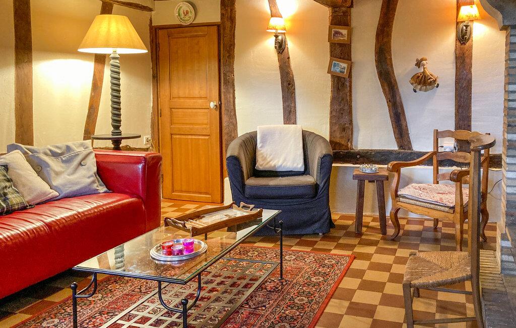 Willkommen in diesem traditionellen normannischen Reetdachhaus aus dem 19. Jahrhundert, das Sie mit rustikaler Gemütlichkeit empfängt und Ihnen ein behagliches Zuhause bietet, während Sie die Schätze der Normandie entdecken. Lassen Sie sich von der schlichten, aber warmen Einrichtung verzaubern, während Sie köstliche Mahlzeiten zubereiten und das authentische Ambiente bei einem Brettspiel am Kamin auf sich wirken lassen.