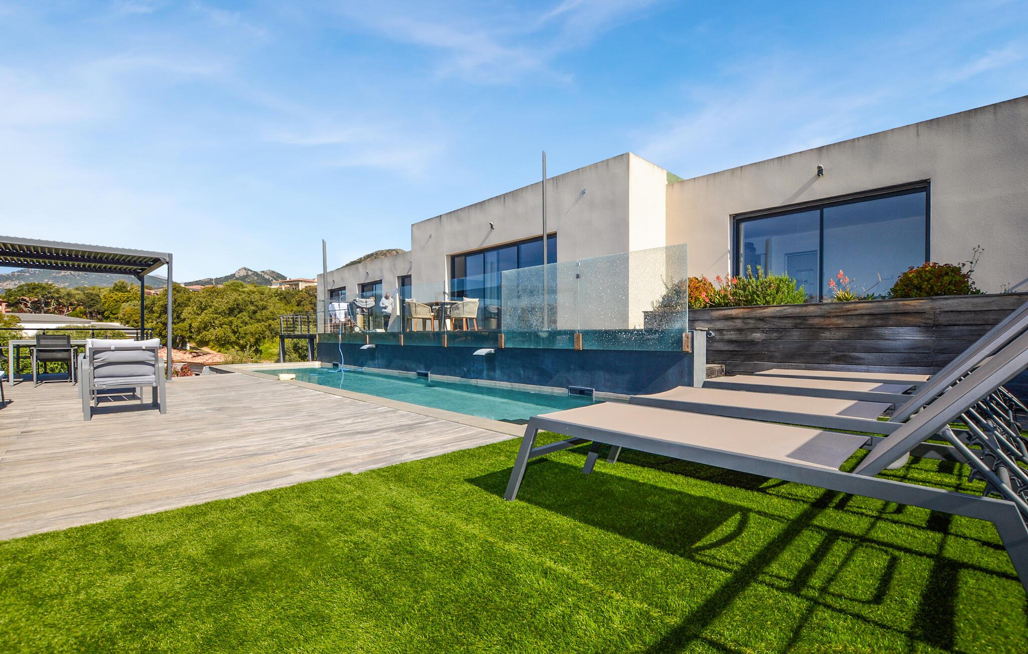 Genießen Sie sonnige Tage in dieser modernen und großzügigen Villa mit Pool und schalten Sie vom Alltag ab.