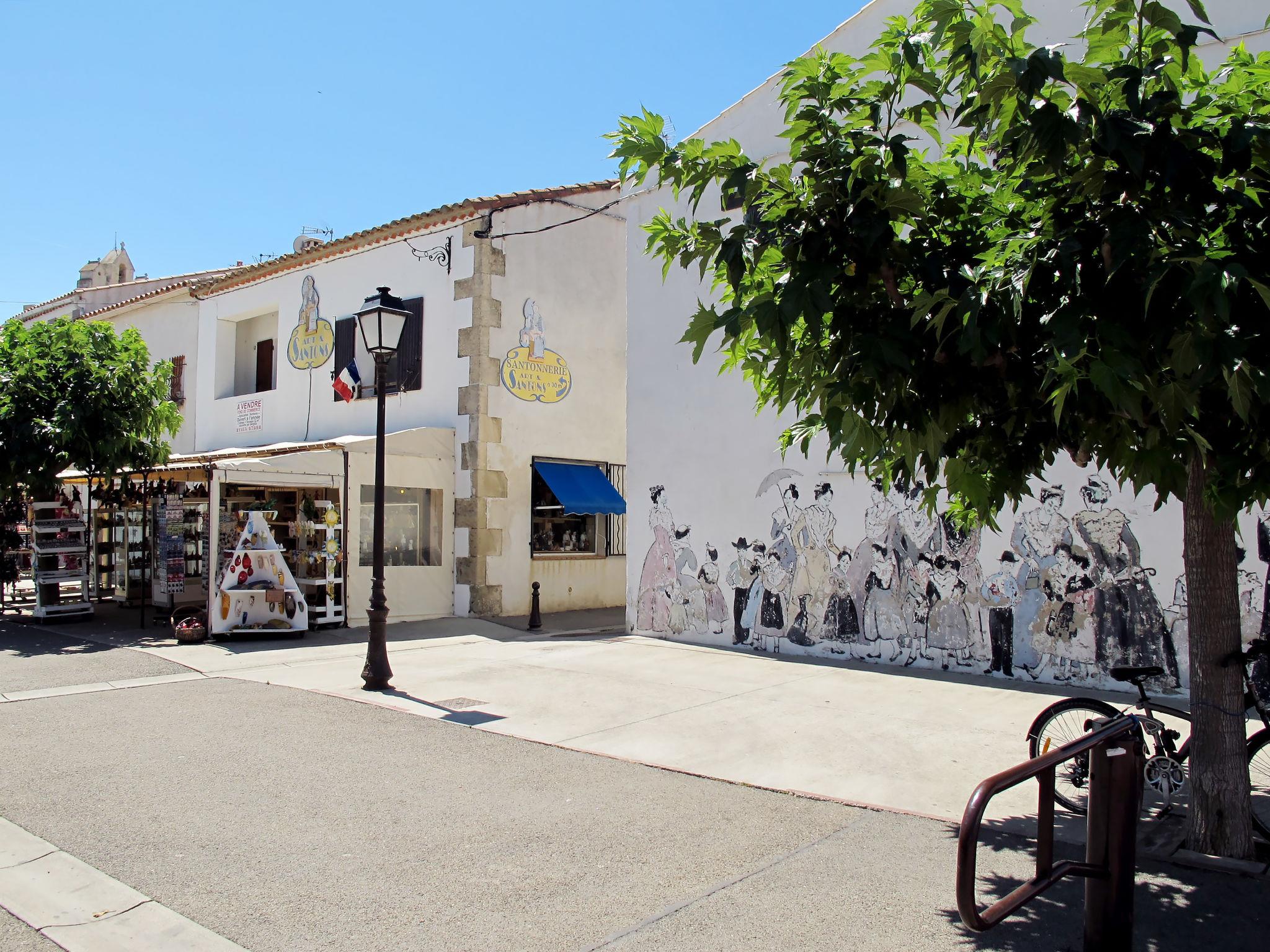 350 m from the centre of Les Stes.-Maries-de-la-Mer, 30 km from the centre of Aigues-Mortes, 40 km from the centre of Arles, traffic calmed area, 600 m from the sea, 600 m from the beach. Public parking. Supermarket 150 m, bus stop "Les Massoucles" 120 m.