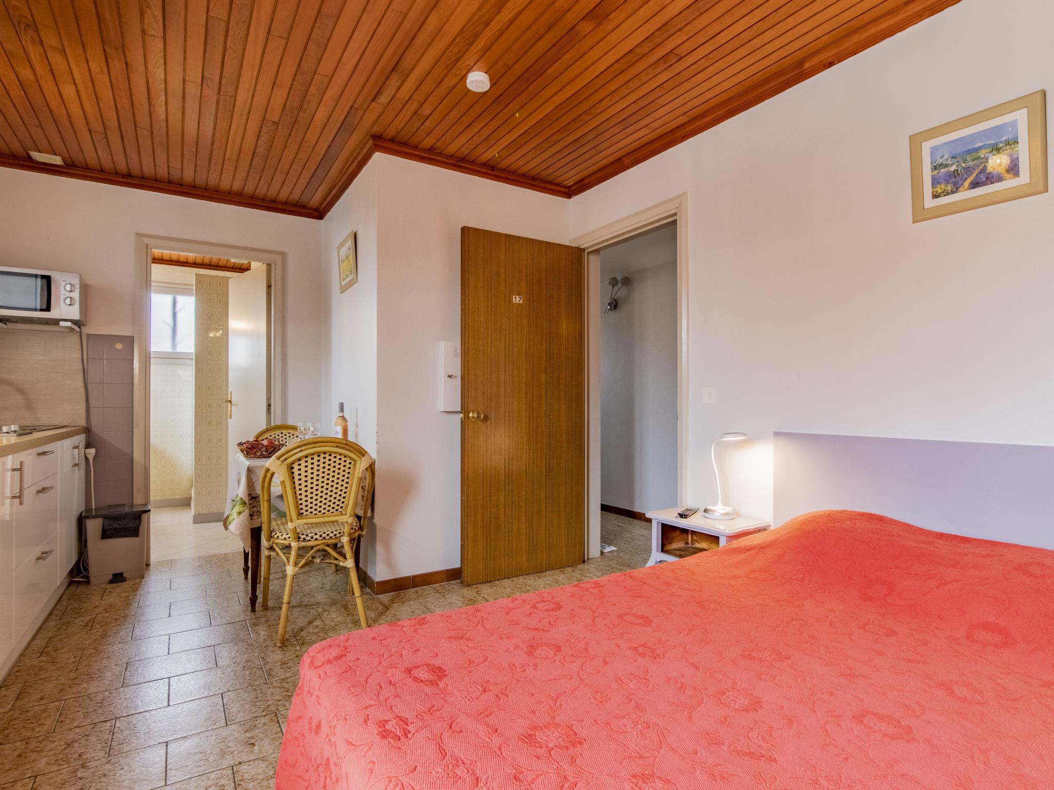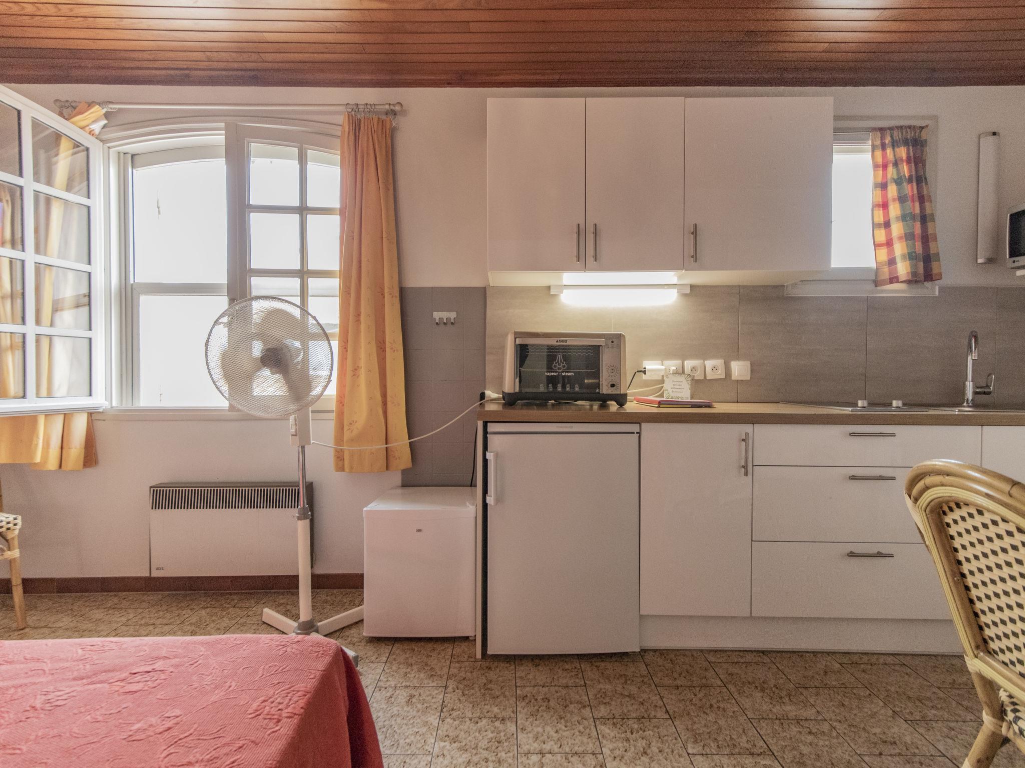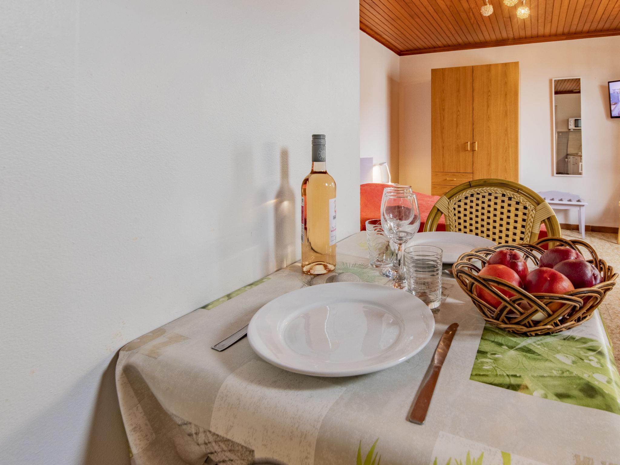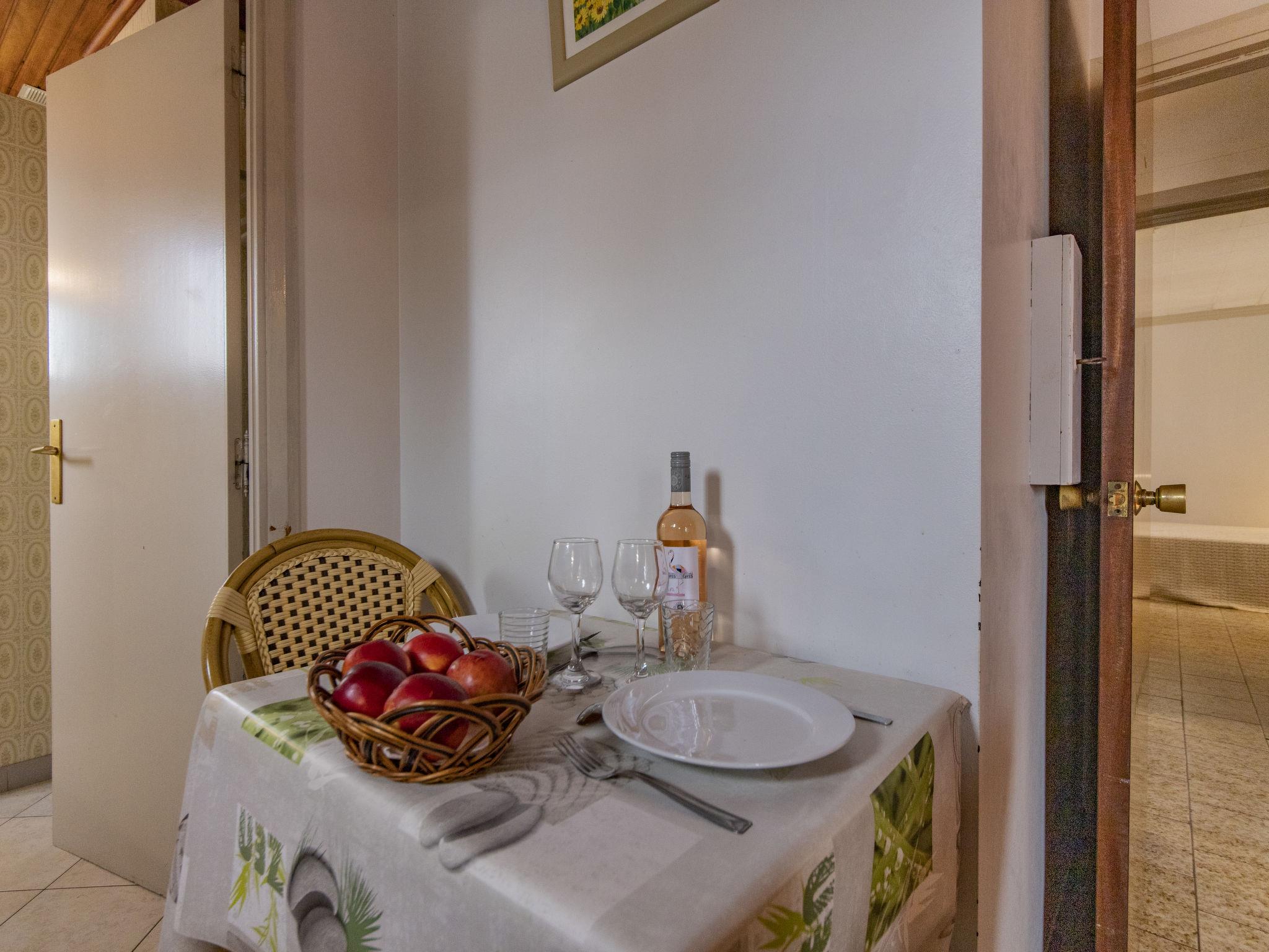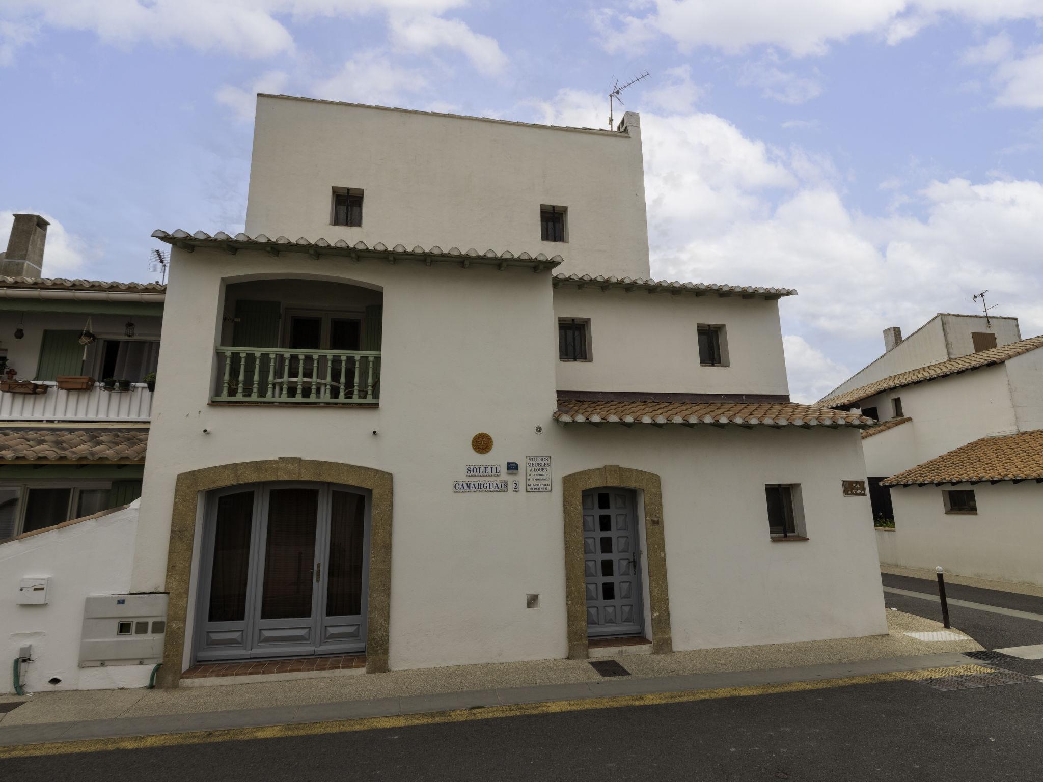 "Le Soleil Camarguais", 1-room apartment 25 m2 on 1st floor. Simple and practical furnishings: living/sleeping room with 1 french bed (140 cm, length 190 cm), dining table and TV (flat screen). Kitchenette (mini-oven, 2 ceramic glass hob hotplates, toaster, kettle, microwave, electric coffee machine). Shower/WC. Electric heating. Facilities: iron. Internet (WiFi, free). 13096000007WF