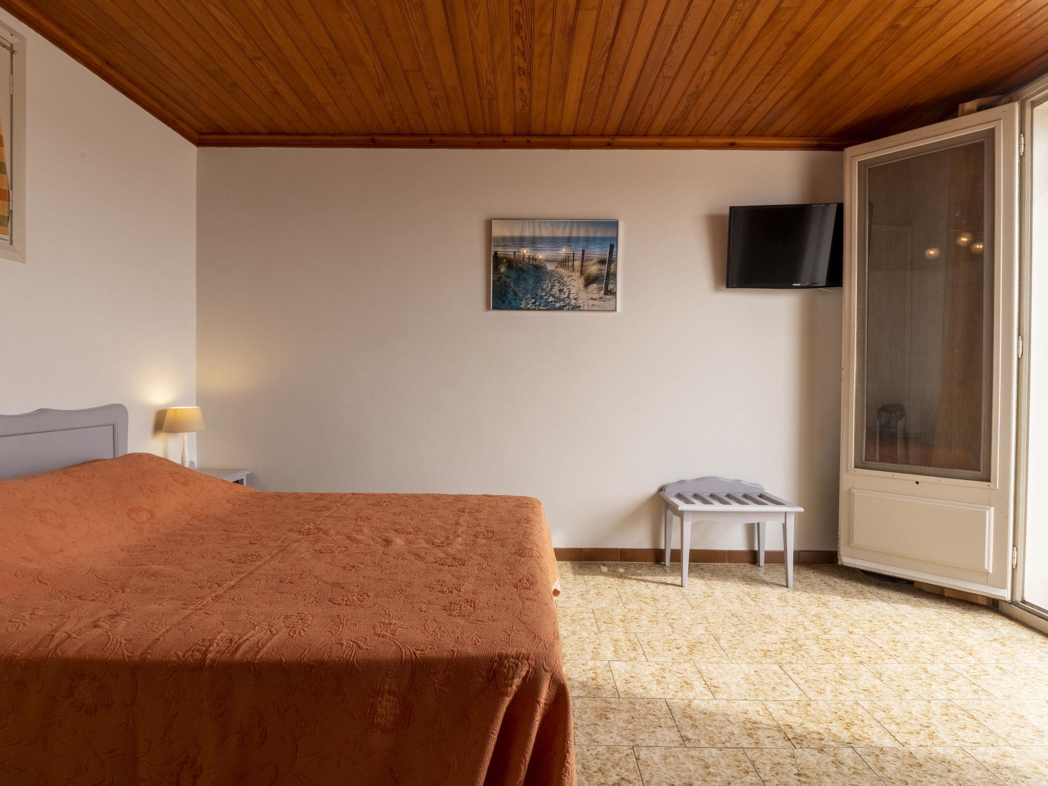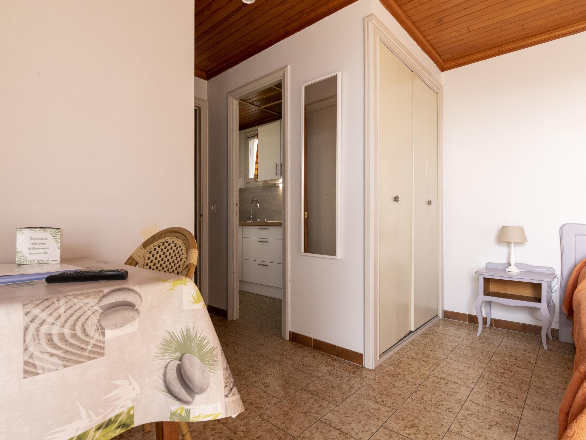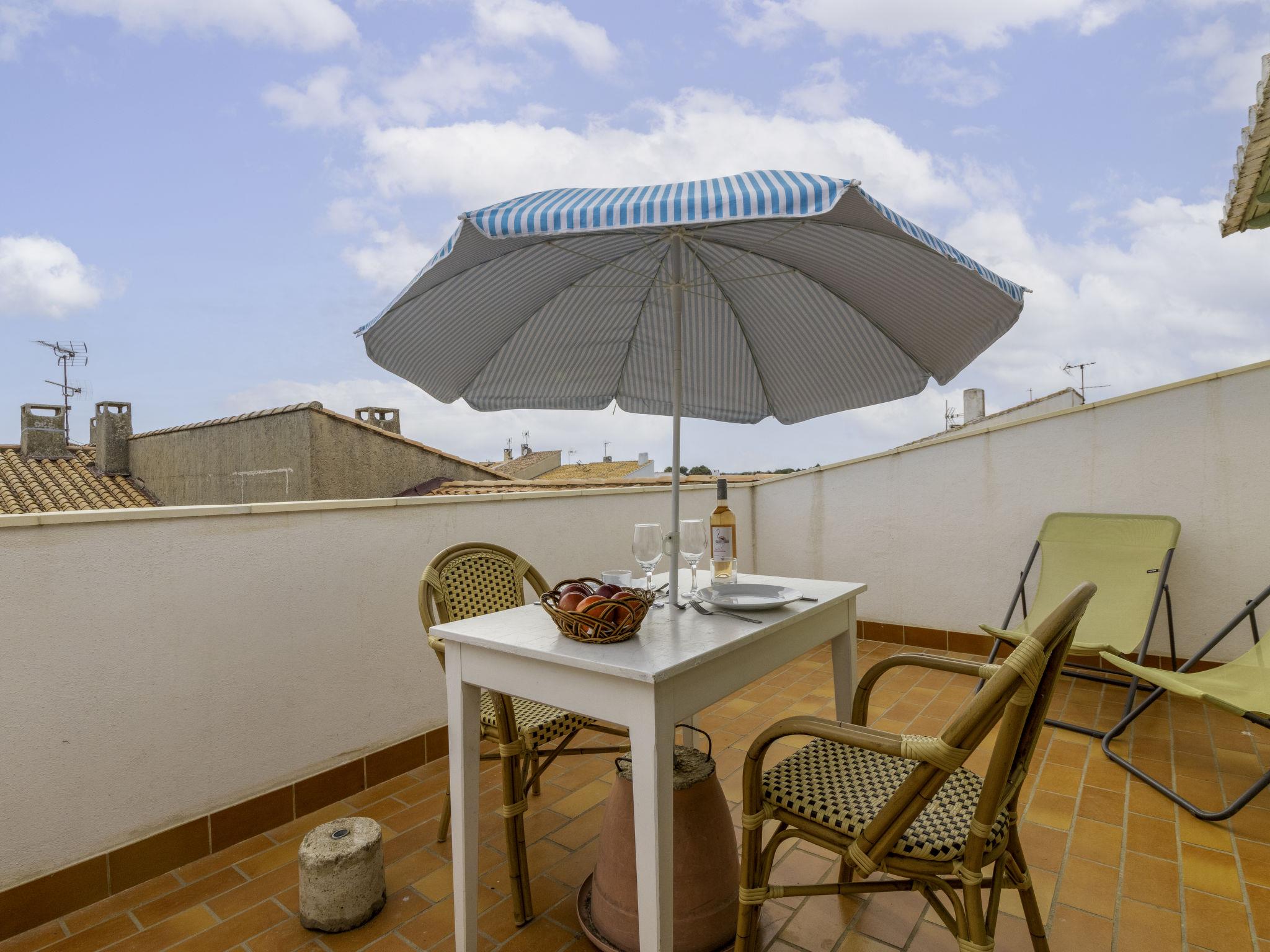 "Le Soleil Camarguais", 1-room apartment 27 m2 on 2nd floor. Simple and practical furnishings: living/sleeping room with 1 french bed (140 cm, length 190 cm), dining table and TV. Exit to the balcony. Small kitchen (mini-oven, 2 ceramic glass hob hotplates, toaster, kettle, microwave, electric coffee machine). Shower/WC. Electric heating. Balcony. Balcony furniture, deck chairs (2). Facilities: iron. Internet (WiFi, free). Garage (extra). 13096000021DP