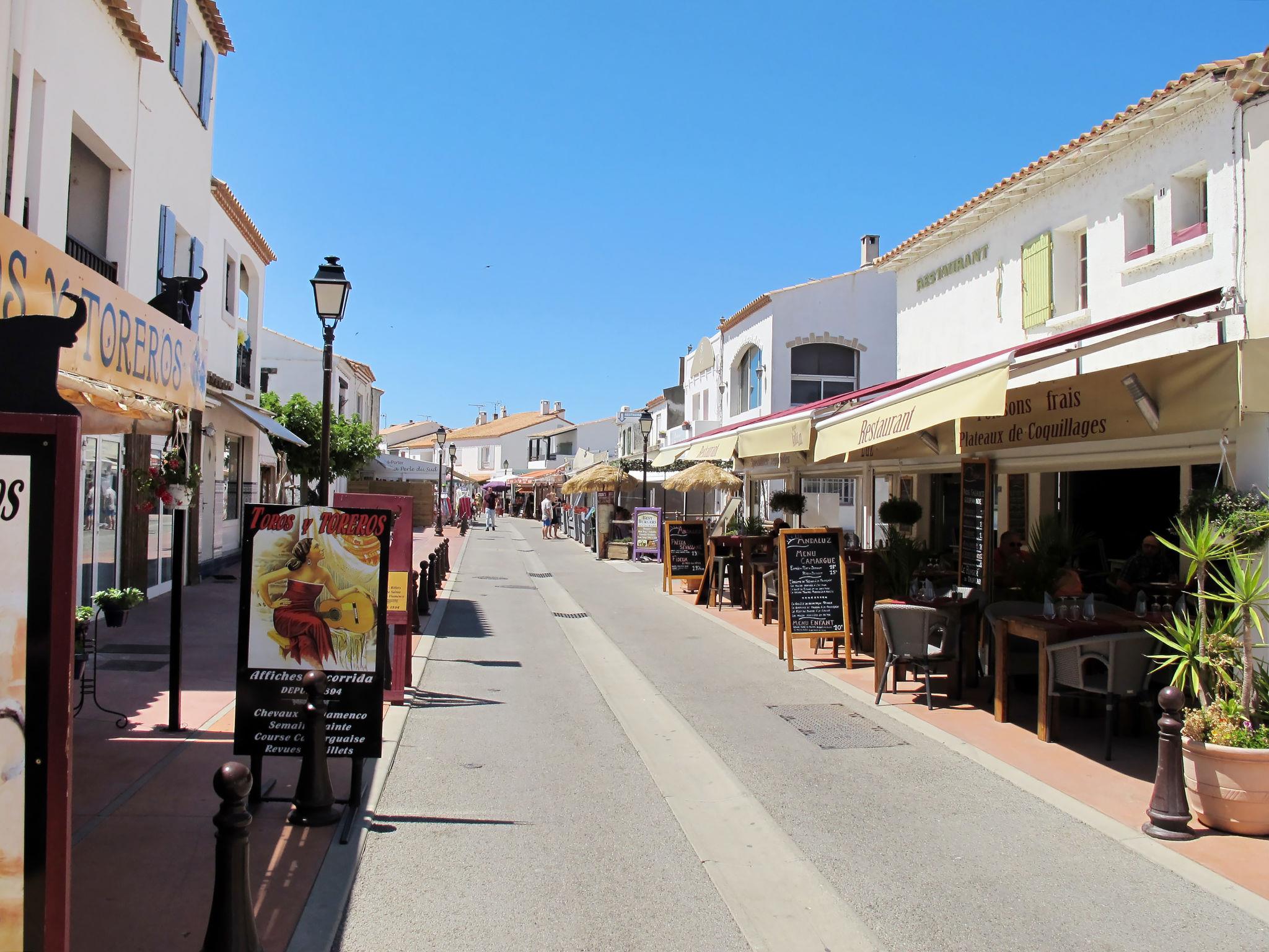 350 m from the centre of Les Stes.-Maries-de-la-Mer, 30 km from the centre of Aigues-Mortes, 40 km from the centre of Arles, traffic calmed area, 600 m from the sea, 600 m from the beach. Public parking. Supermarket 150 m, bus stop "Les Massoucles" 120 m.
