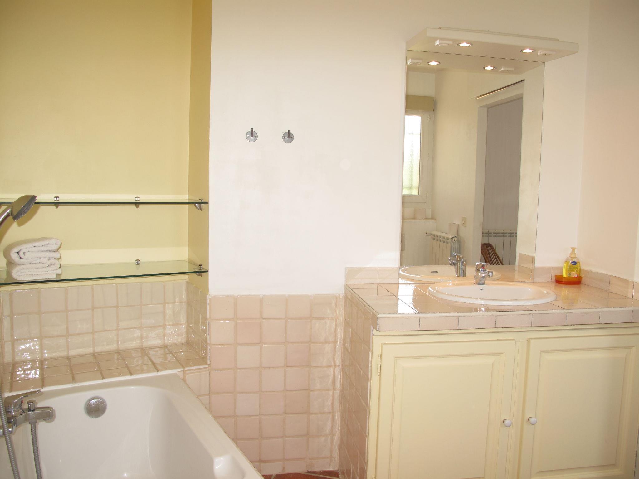 "Les Oliviers", 4-room house 130 m2. Practical and cosy furnishings: living/dining room with open-hearth fireplace, dining table, TV, hi-fi system, DVD and fan. Exit to the terrace. 1 room with 1 french bed (160 cm, length 190 cm), bath/WC and fan. Exit to the terrace. 1 room with 1 french bed (160 cm, length 190 cm), fan. 1 room with 1 x 2 bunk beds (90 cm, length 190 cm). Open kitchen (oven, dishwasher, 4 ceramic glass hob hotplates, toaster, kettle, microwave, freezer, electric coffee machine). Exit to the terrace. Shower/WC, sep. WC. Oil heating. Terrace. Terrace furniture, barbecue, deck chairs (6). Beautiful view of the garden and the countryside. Facilities: washing machine, iron, children's high chair, baby cot. Internet (WiFi, free). Please note: non-smoking house. Maximum 2 pets/ dogs allowed. Smoke alarm. 14004*01