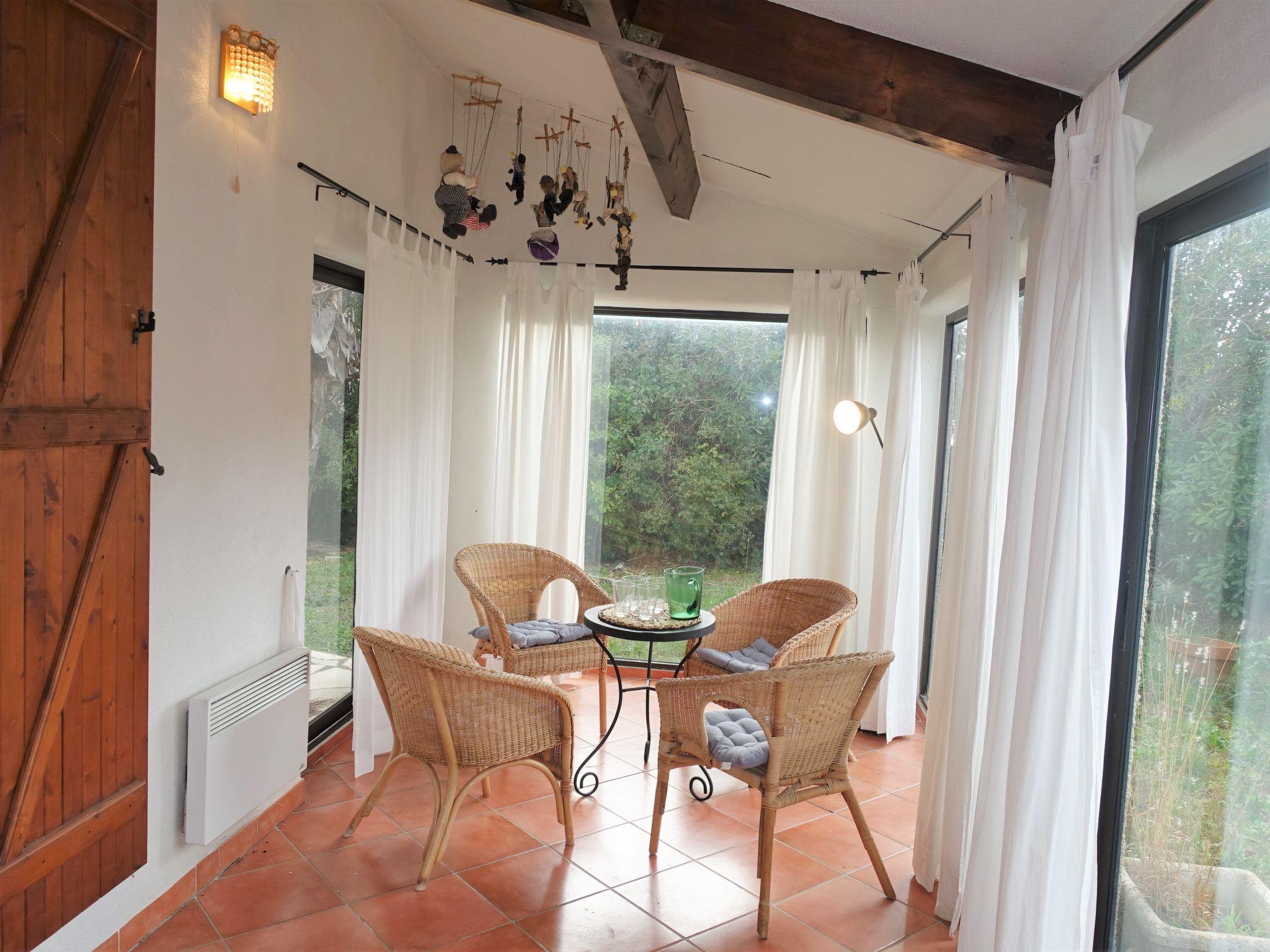 4-room house 90 m2. Lounge 25 m2. Living/dining room 30 m2 with satellite TV. 1 room with 1 french bed (140 cm). 1 room with 2 beds (100 cm). Open kitchen (4 hot plates, oven, dishwasher, microwave, freezer, electric coffee machine). Bath/WC. No heating option. Terrace 10 m2. Terrace furniture, barbecue. Facilities: washing machine. Please note: 1 small pet/ dog allowed. Smoke alarm.