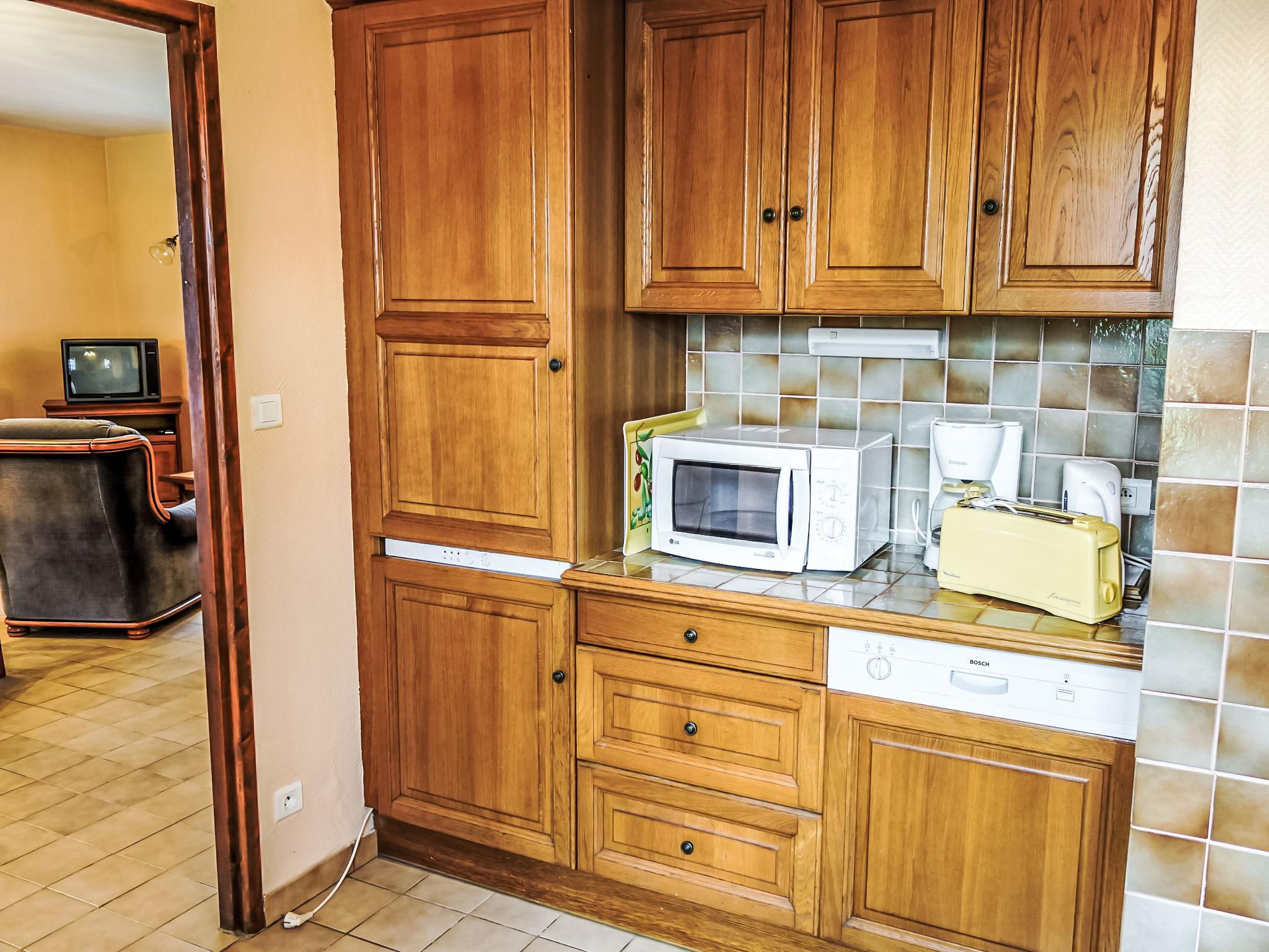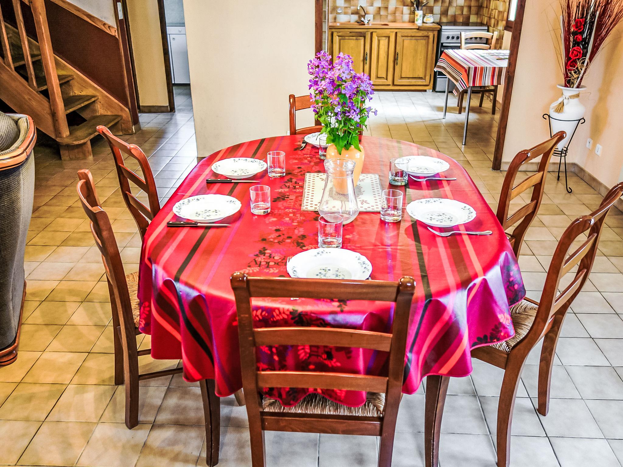 4-room house 94 m2. Beautiful and rustic furnishings: living/dining room with open-hearth fireplace, dining table and TV (flat screen). Exit to the terrace. Open kitchen (oven, dishwasher, 1 ceramic glass hob hotplate, 3 gas rings, toaster, kettle, microwave, freezer, electric coffee machine) with small dining table. Bathroom, sep. WC. Boiler (200 litres). Upper floor: 1 room with sloping ceilings with 2 beds (90 cm, length 190 cm). 2 rooms with sloping ceilings, each room with 1 french bed (140 cm, length 190 cm). Sep. WC. Terrace 15 m2, roofed. Terrace furniture, barbecue (portable), deck chairs (6). Facilities: washing machine, iron, baby cot for up to 2 year olds, logs (extra). Parking (2 cars). Please note: suitable for families. Non-smoking house. Maximum 1 pet/ dog allowed. Smoke alarm.