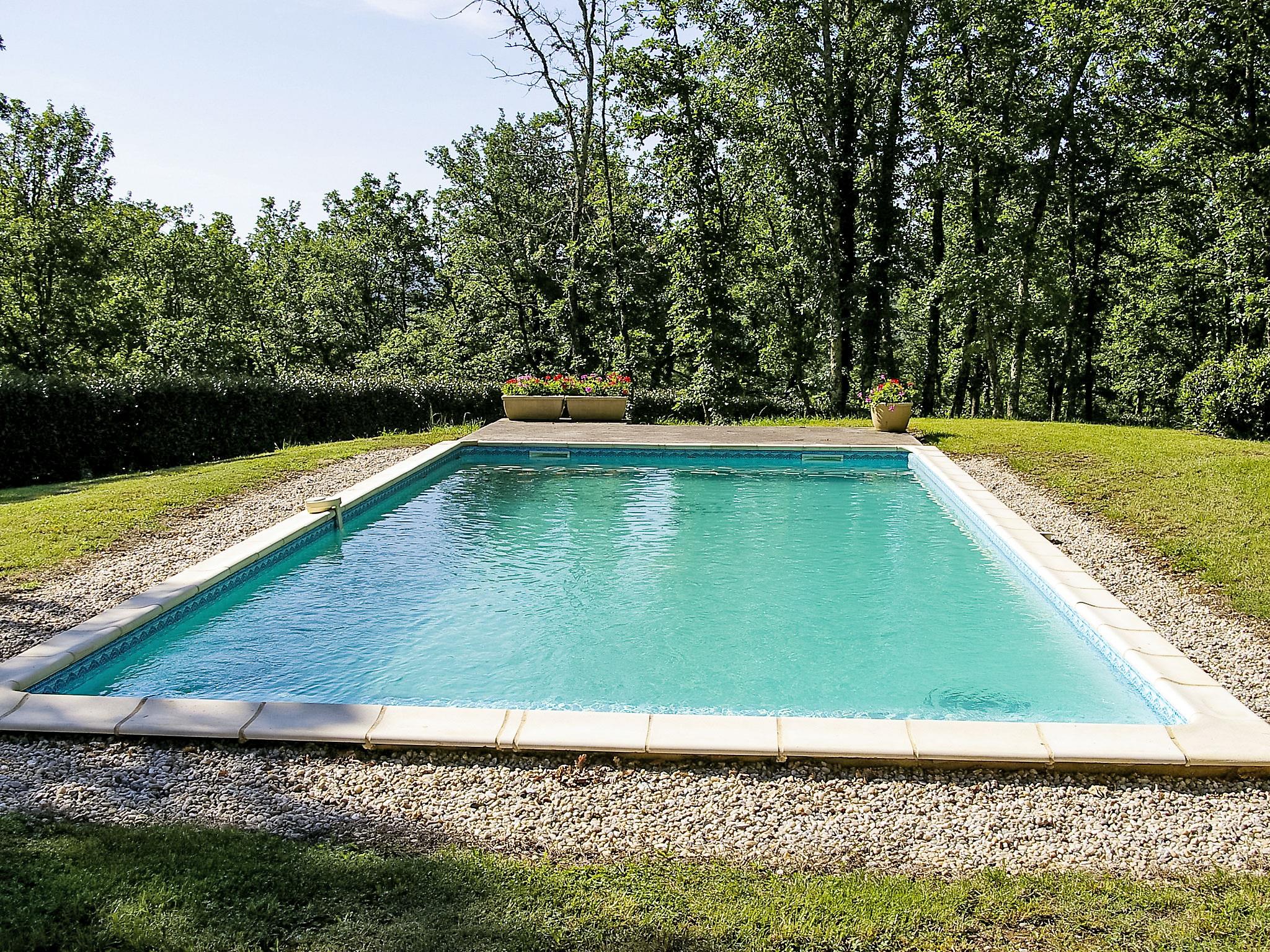 4 km from Salviac: Comfortable single-family house "Les Chenes", surrounded by trees. In the hamlet Le Champ du Lac with 8 houses 4 km from the centre of Salviac, 17 km from the centre of Gourdon, 34 km from the centre of Cahors, in a quiet position, in the countryside. Private: large, well-kept garden 2'000 m2 (not fenced) with lawn and trees, swimming pool (10 x 5 m, depth 140 cm, seasonal availability: 15.May. - 31.Oct.) with shutter cover. Parking at the house on the premises. Shop 4 km, supermarket 4 km, bus stop "Dégagnac" 9 km. Tennis 4 km. Please note: car recommended.