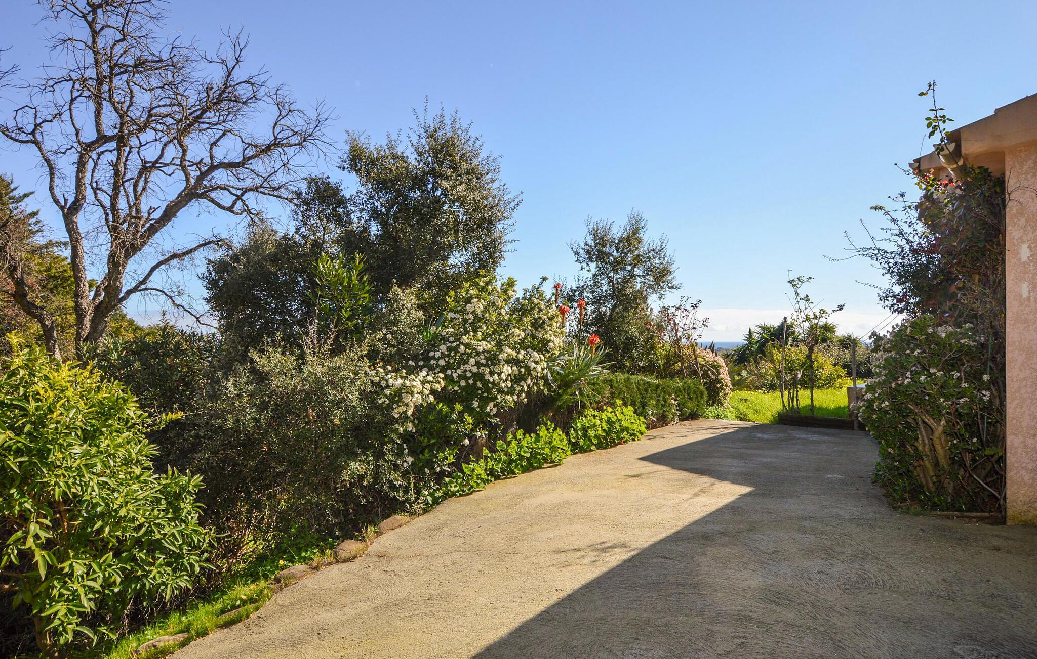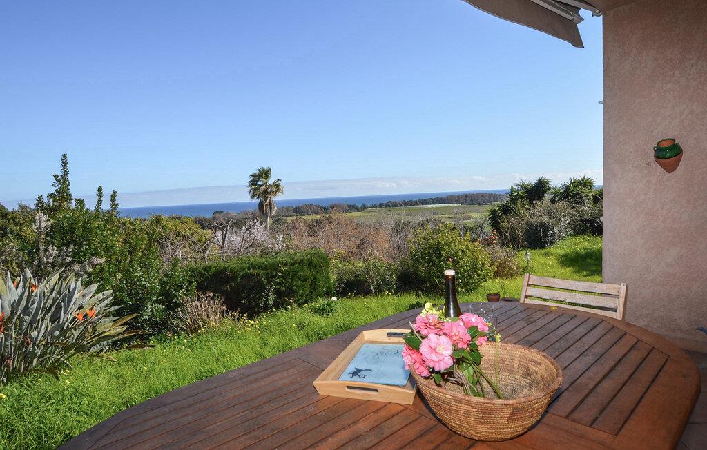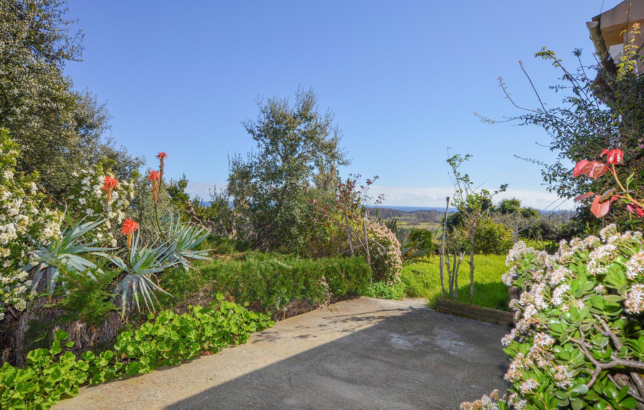 Treten Sie hinaus auf die überdachte Terrasse und beginnen Sie den Tag mit einem Frühstück im Freien. Von hier aus eröffnet sich ein weiter Blick über die Landschaft bis hin zum Mittelmeer. Der Garten bietet Platz zum Entspannen und lädt dazu ein, die Sonne Korsikas in aller Ruhe zu genießen.