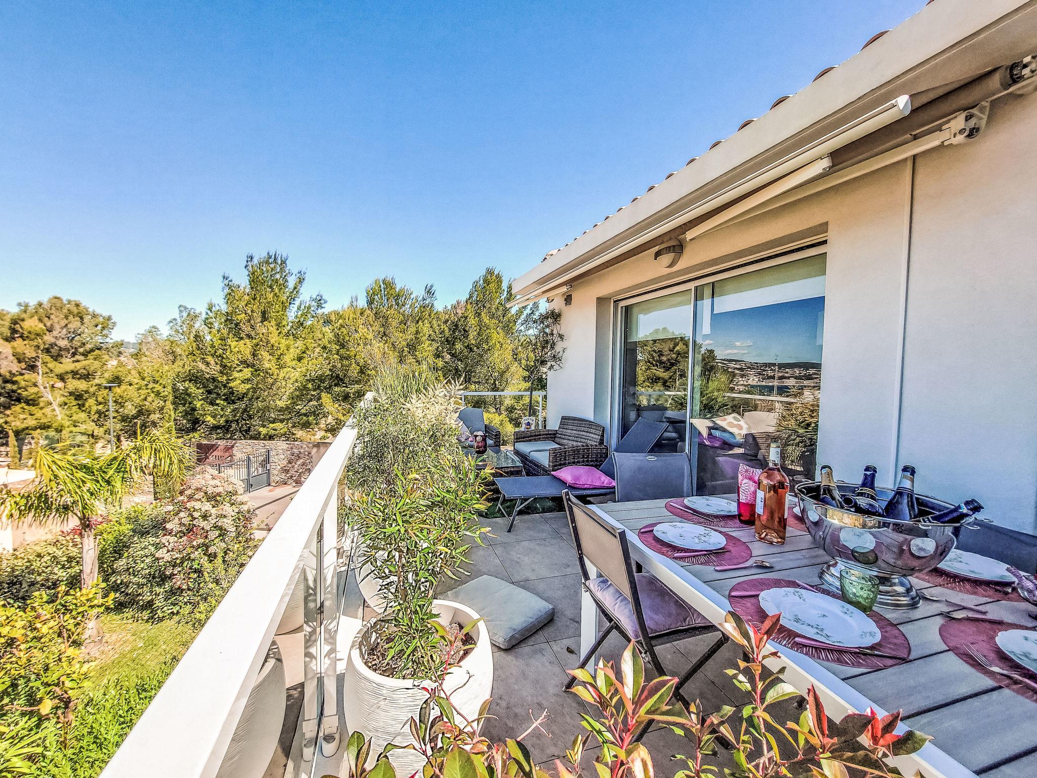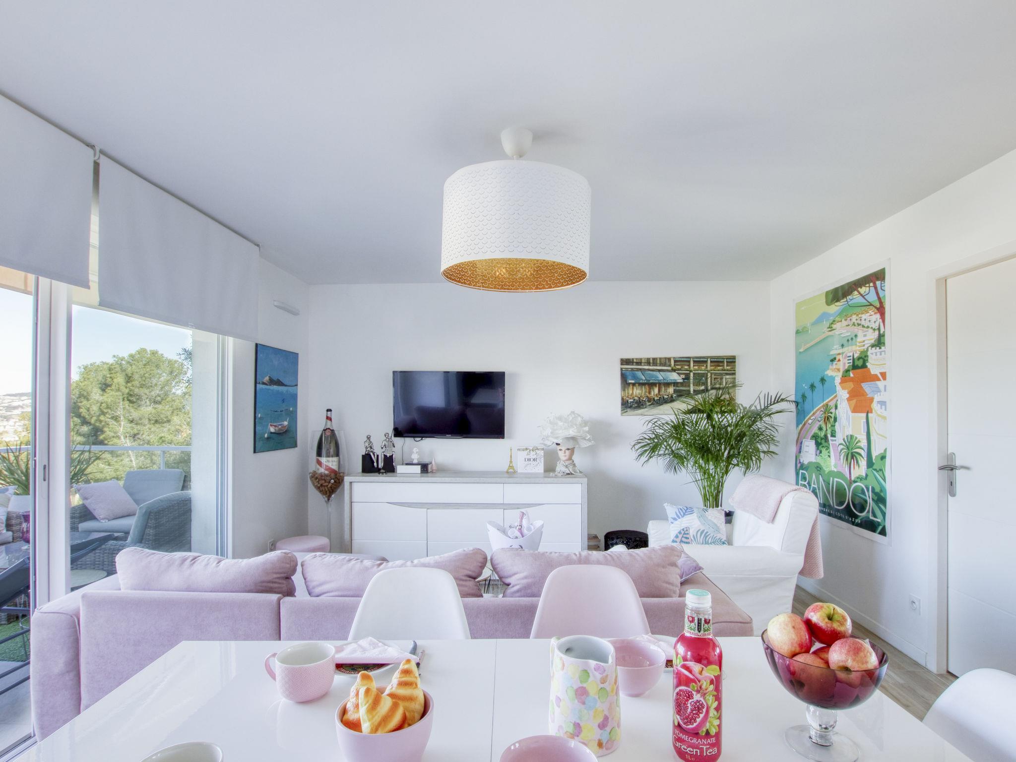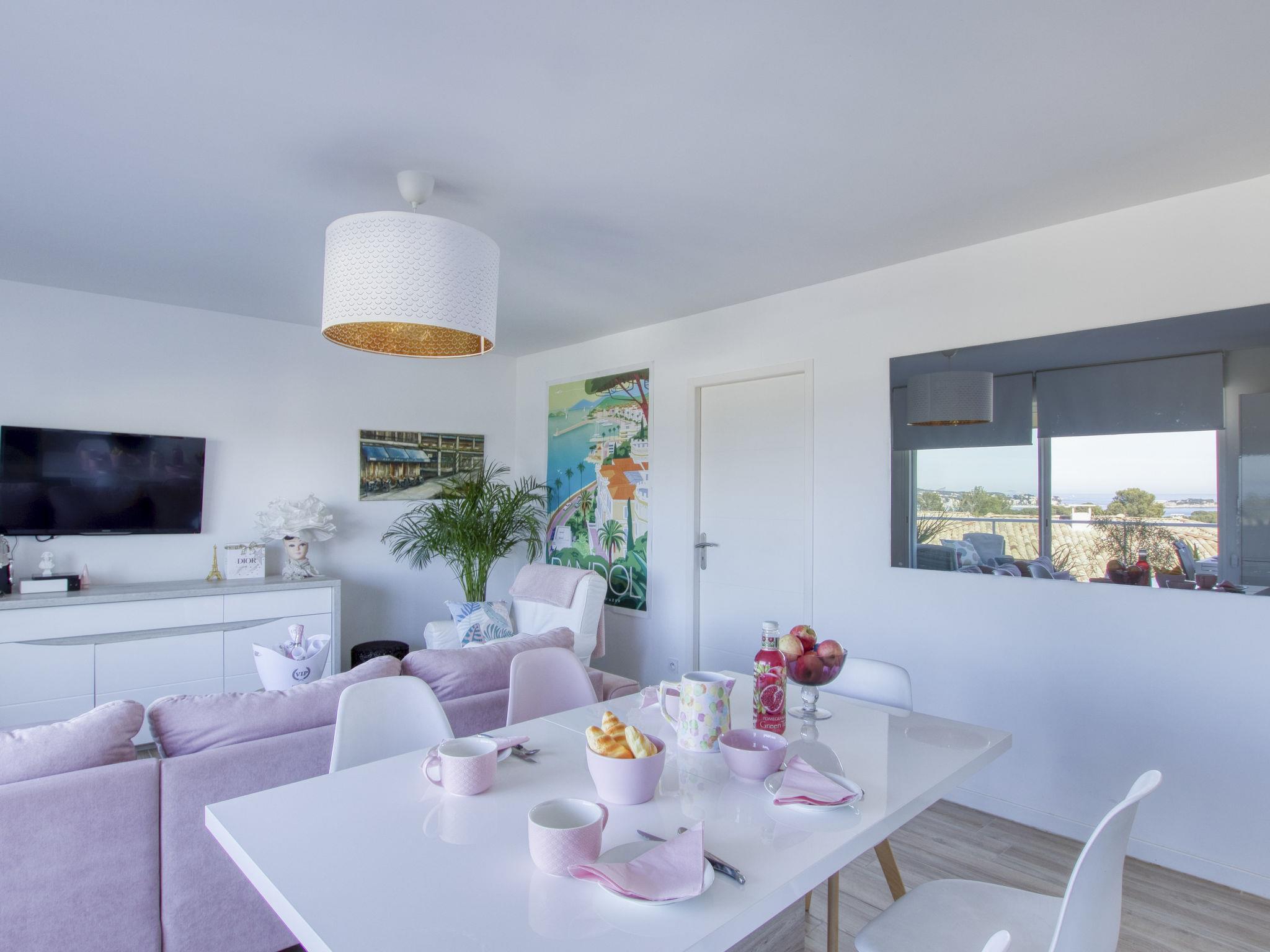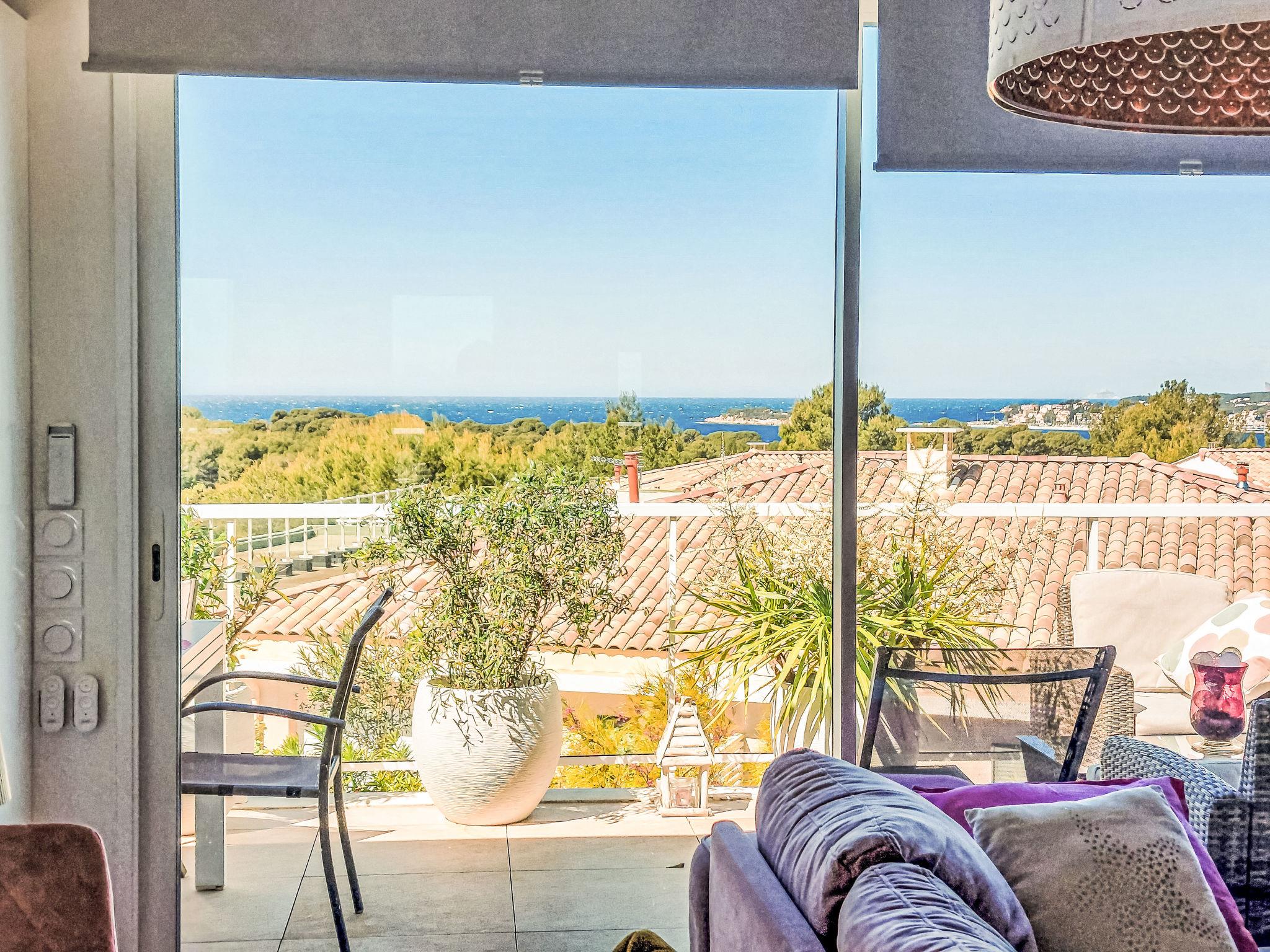 3-room apartment 63 m2 on 1st floor. Object suitable for 2 adults + 2 children. Comfortable and beautiful furnishings: living/dining room with TV (flat screen), air conditioning. Exit to the terrace. 1 room with 1 french bed (160 cm, length 200 cm), air conditioning. 1 room with 1 pull-out bed (2 x 80 cm, length 200 cm), air conditioning. Open kitchen (oven, dishwasher, 4 induction hot plates, toaster, kettle, microwave, freezer, electric coffee machine). Exit to the terrace. Shower, sep. WC. Forced-air heating. Terrace 20 m2, south-west facing position. Terrace furniture. Very beautiful panoramic view of the sea. Facilities: washing machine. Internet (WiFi, free). Parking space n 13 (1 car). Please note: non-smokers only. TV only FR. Smoke alarm. Offer by a private individual according to Art. 155, IV of CGI. 83123000920IW