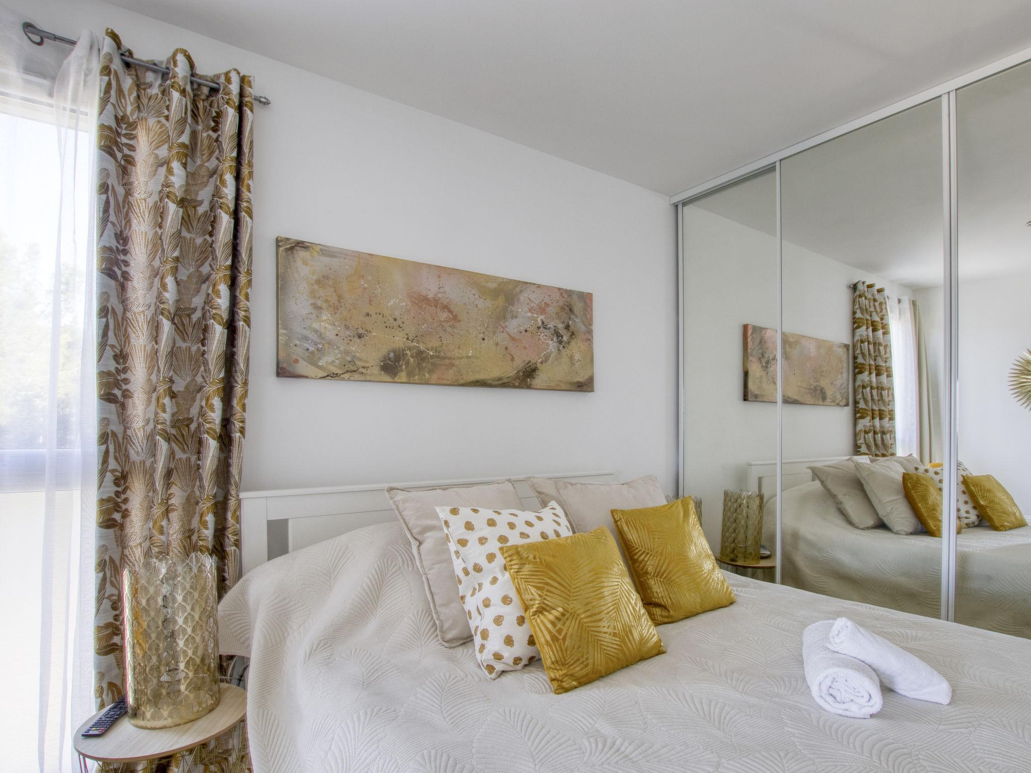 Residence "Les Terrasses d'Azur", built in 2020. In a quiet, elevated position residential area (villas), 700 m from the sea, 700 m from the beach, in a cul-de-sac. For shared use: well-kept garden (fenced), swimming pool (14 x 5 m, seasonal availability: 01.Jul. - 30.Sep. pool opening hours: 09:00-20:00) with alarm system. Grocery 1 km, bus stop 700 m, sandy beach "de la gorguette" 700 m. Golf course (27 hole) 6 km. Nearby attractions: Aqualand 10 km. Hiking paths: Sainte Baume,Sainte Victoire,Calanque, Cassis,Porquerolles,Ile verte,Embiez. Residence with electric gates. The keys‘ handover takes place by the agency Interhome in SIX FOURS LES PLAGES, 5 km. The residence has a bowling alley and animals are not accepted.